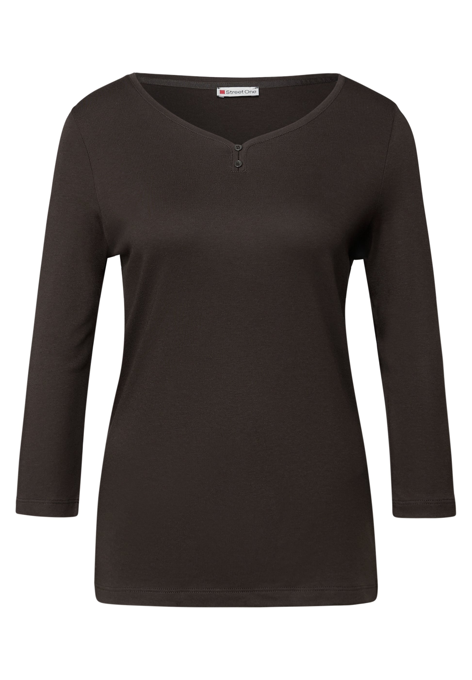 Das unifarbene Basic Shirt von Street One für Damen überzeugt durch seinen gerundeten V-Ausschnitt mit dekorativem Knopfdetail. Der softe Baumwoll-Modalmix liegt angenehm auf der Haut und macht das Shirt zum idealen Begleiter für Alltag und Büro. Die 3/4-Ärmel ergänzen den femininen Look perfekt. Damenshirt Gerundeter V-Ausschnitt mit Knopfdetail 3/4-Arm Unifarbe Softer Baumwoll-Modalmix Material: 50% Baumwolle, 50% Modal