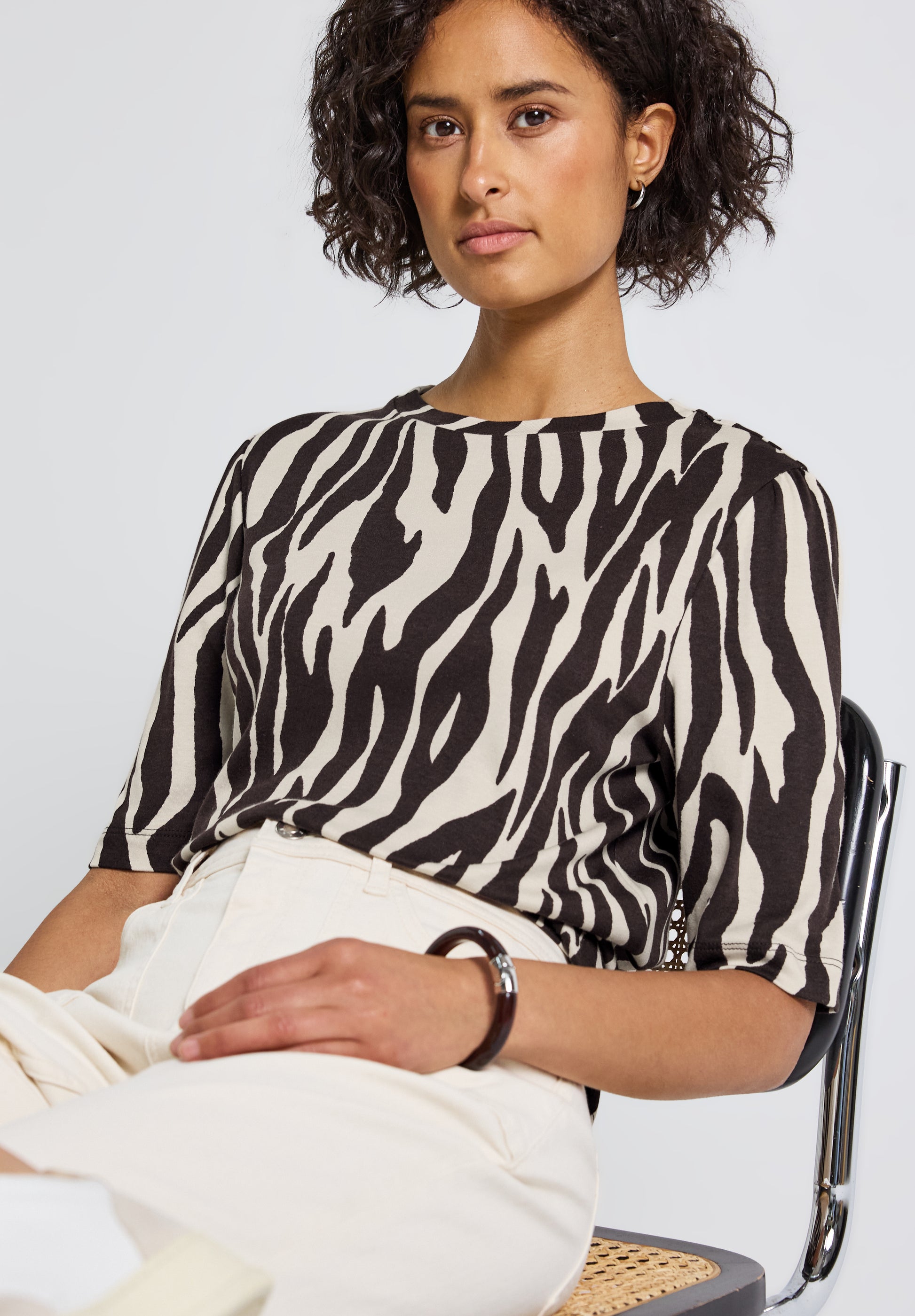 Dieses Basic T-Shirt von Street One für Damen bringt mit der feinen Schulterraffung eine feminine Note in dein Outfit. Der Rundhalsausschnitt und der weiche Baumwoll-Modalmix bieten dir dabei optimalen Tragekomfort. Ein vielseitiger Allrounder für jeden Tag. Damenshirt Rundhalsausschnitt Kurzarm Raffung an der Schulter Softer Baumwoll-Modalmix Material: 50% Baumwolle, 50% Modal