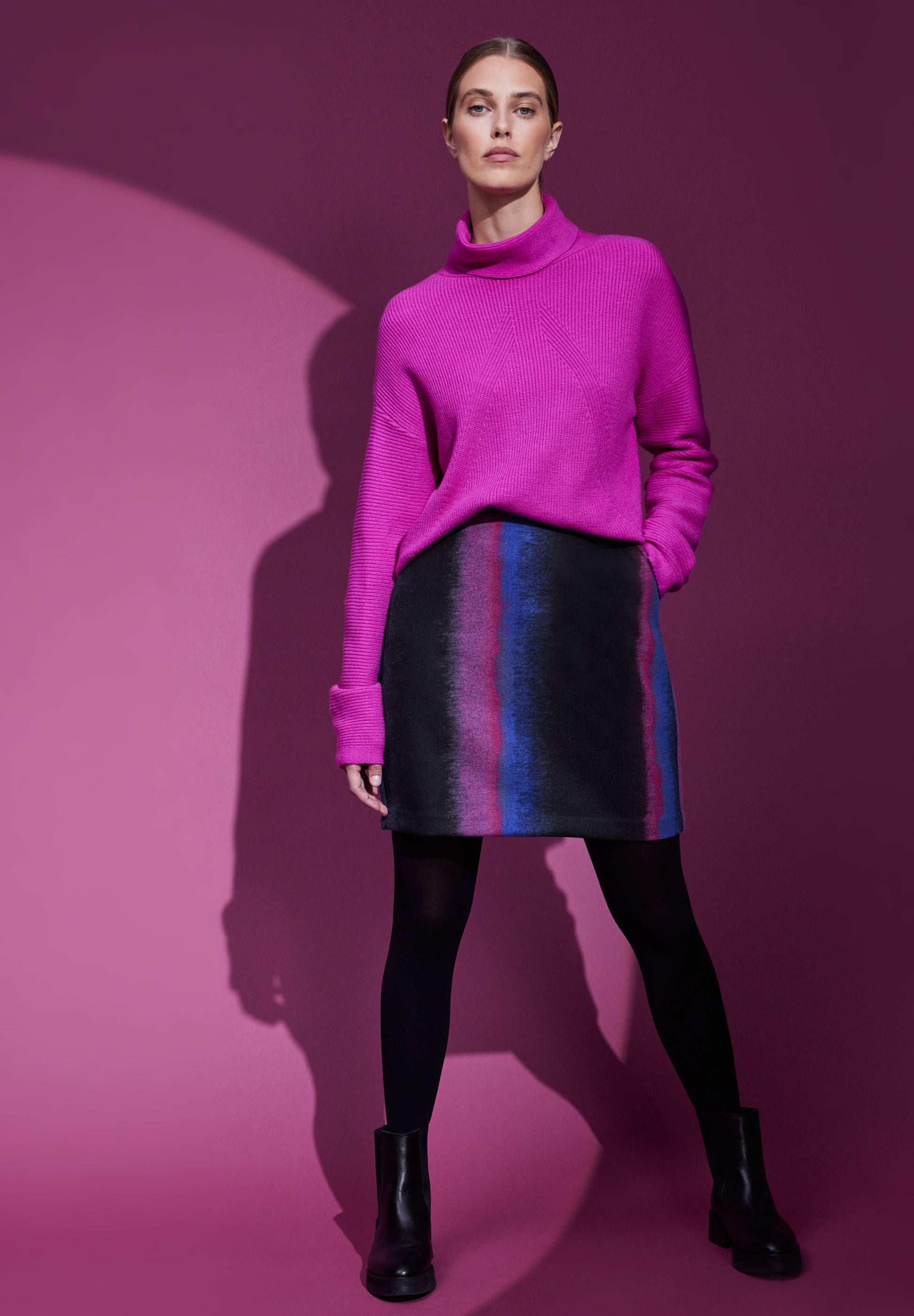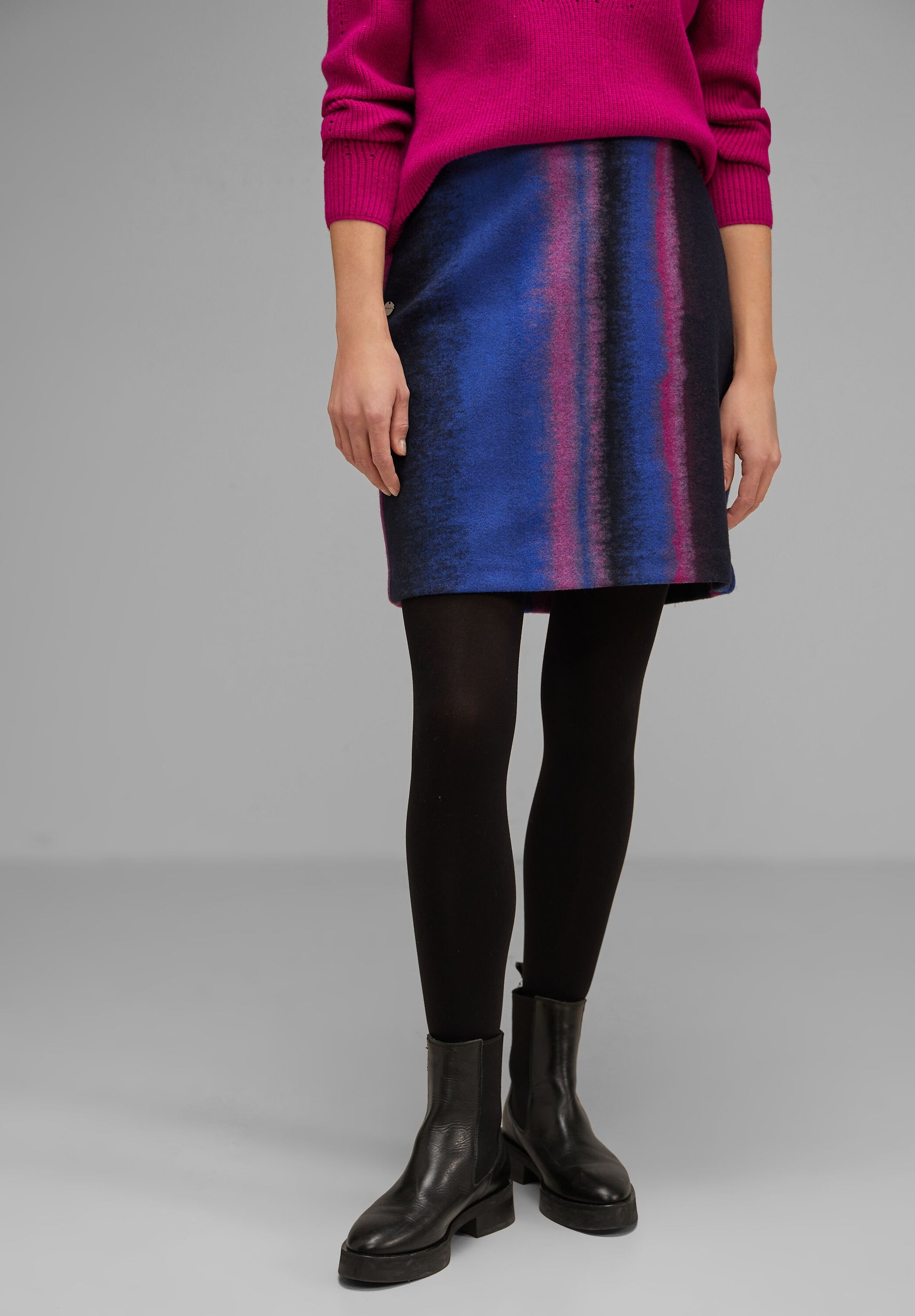 Ein Hauch von Boho-Chic! Der Street One Rock im Style Maja im Batik-Look ist der perfekte Begleiter für lässige und trendige Outfits. Mit seitlichen Taschen und einem mehrfarbigen Streifen-Muster ist dieser Damenrock ein echter Blickfang. Die Wolloptik und der hintere Reißverschluss verleihen ihm das gewisse Extra. Dieser Rock sorgt für einen relaxten und dennoch stylischen Look, egal ob im Alltag oder bei besonderen Anlässen. Rock Batik Look Mini Streifendessin Woll-Optik Material: 100% Polyester