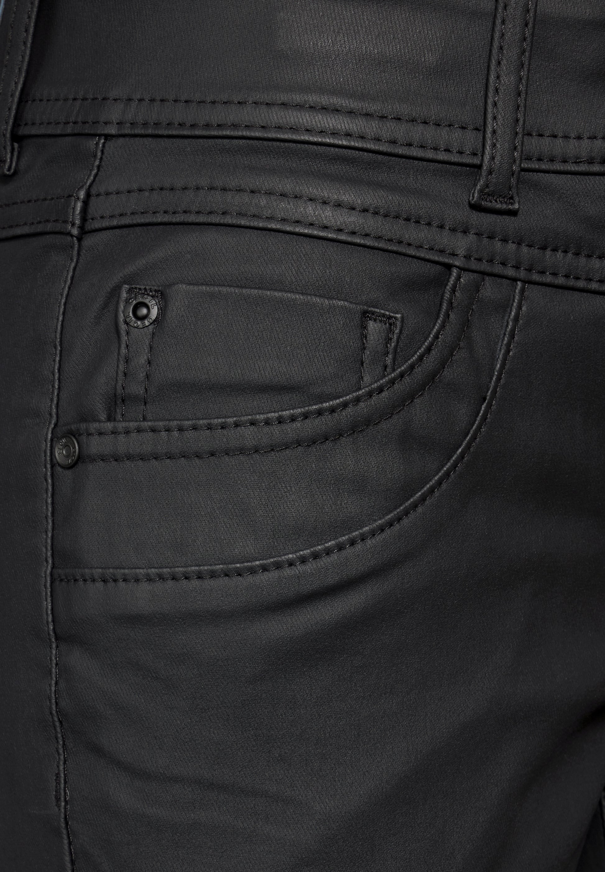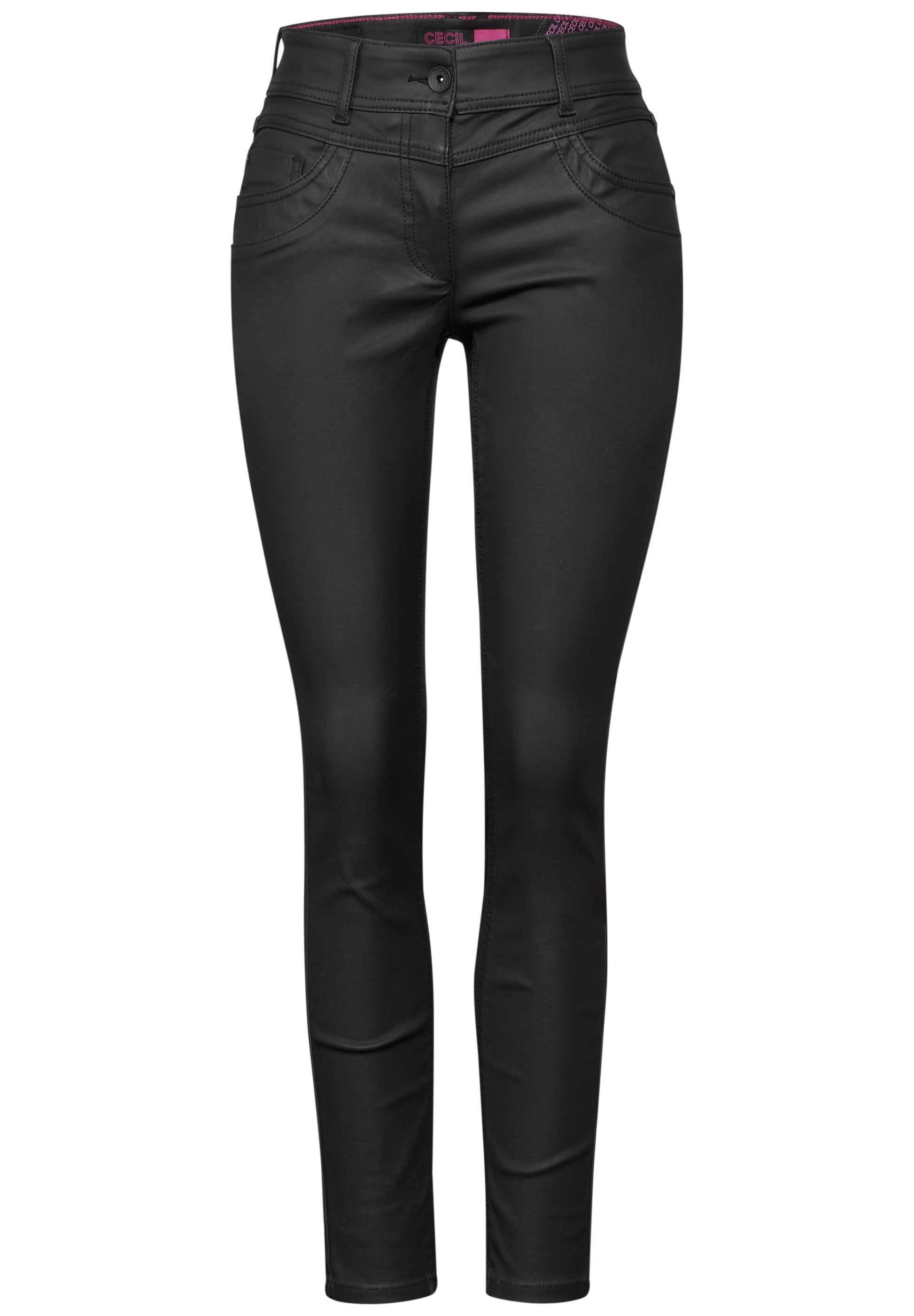 Die beschichtete Hose von CECIL für Damen ist ein modischer Hingucker. Die Damenhose im Casual Fit und 5-Pocket-Form wird durch den modischen Leder-Look zur perfekten Wahl. Damenhose im Casual Fit Mid Waist und Slim Legs Knopf und Reißverschluss 5-Pocket Modischer Leder-Look Material: 76% Viskose, 21% Nylon, 3% Elasthan