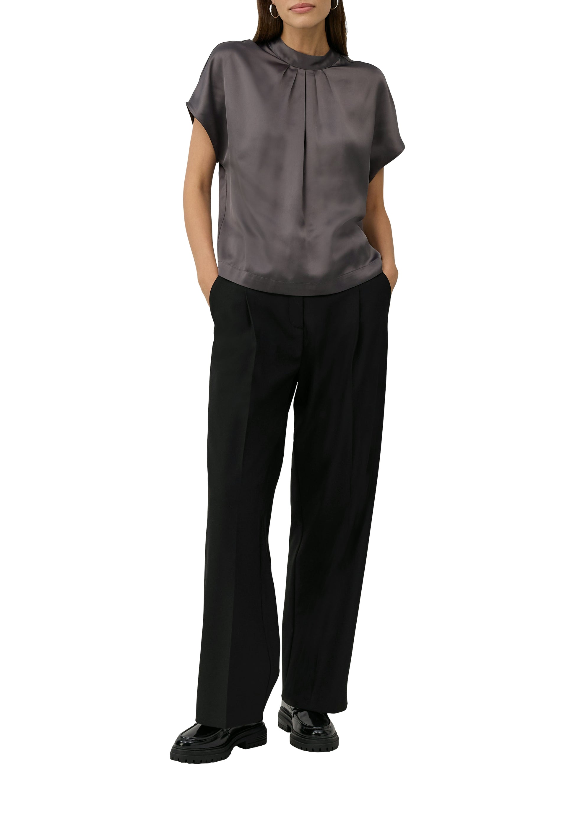 Elevate your style with this flowing satin blouse. Its relaxed fit and high neckline with pleated details exude sophistication. Perfect for the office or evening soirées, this versatile piece seamlessly transitions from day to night. Showcase your confidence with its modern cut and luxurious feel.