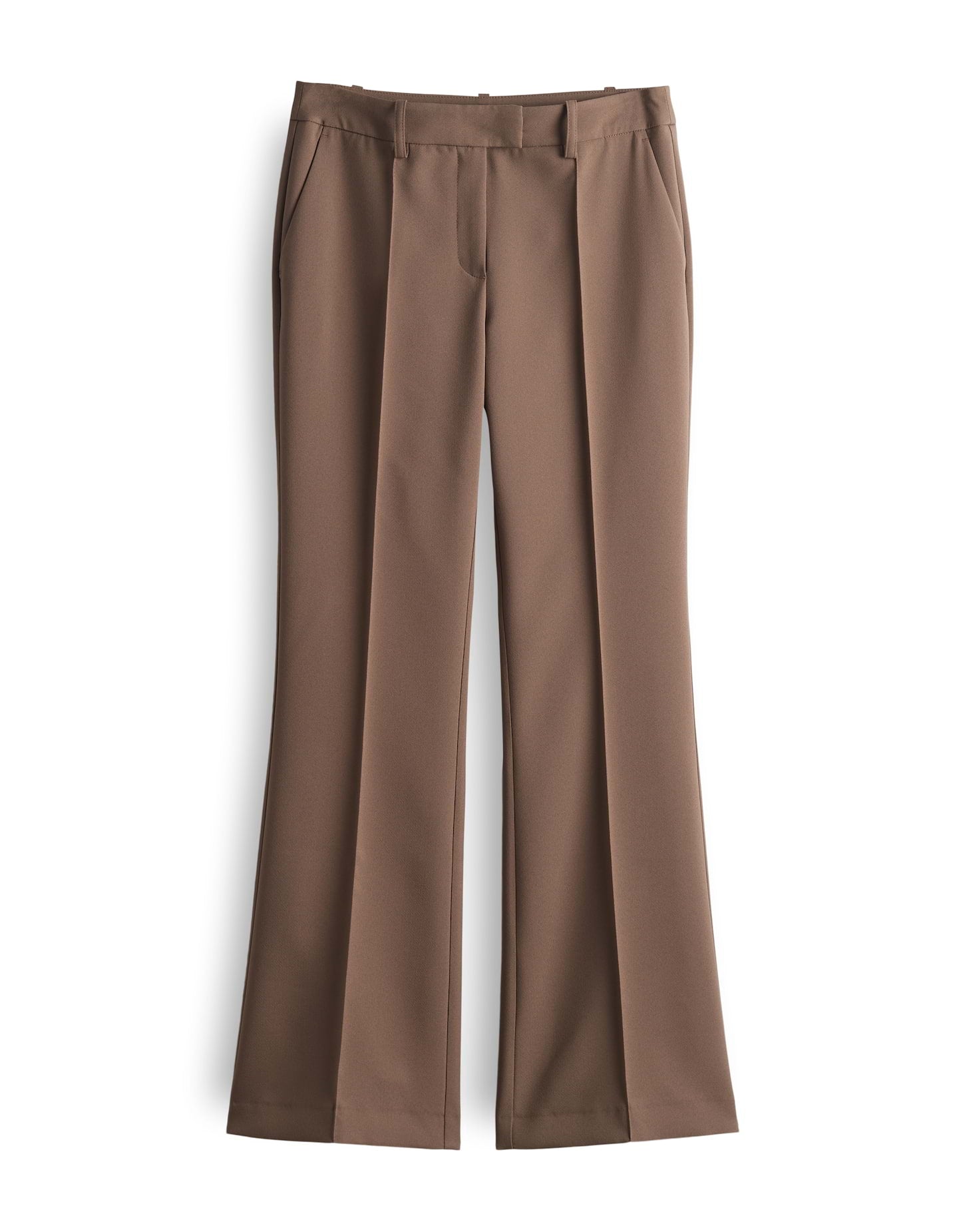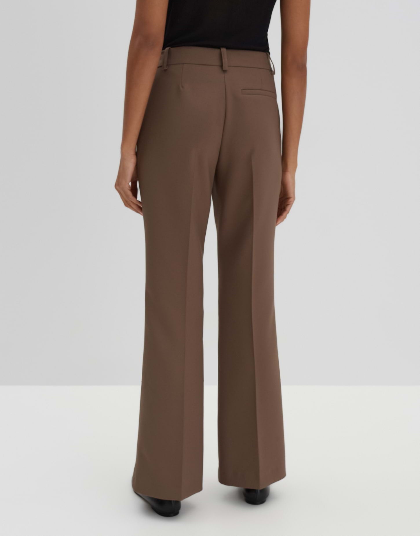 schmal am Oberschenkel, ausgestelltes Bein, Hosenbein Innenlänge in jeder Größe: 80 cm, Model Größe 176 cm – trägt Größe 36, elastischer Stoff, formstabil, dezente Struktur, französische Taschen, Zier-Paspeltasche hinten, Biese vorne, verdeckter Zip-Fly, Gürtelschlaufen
