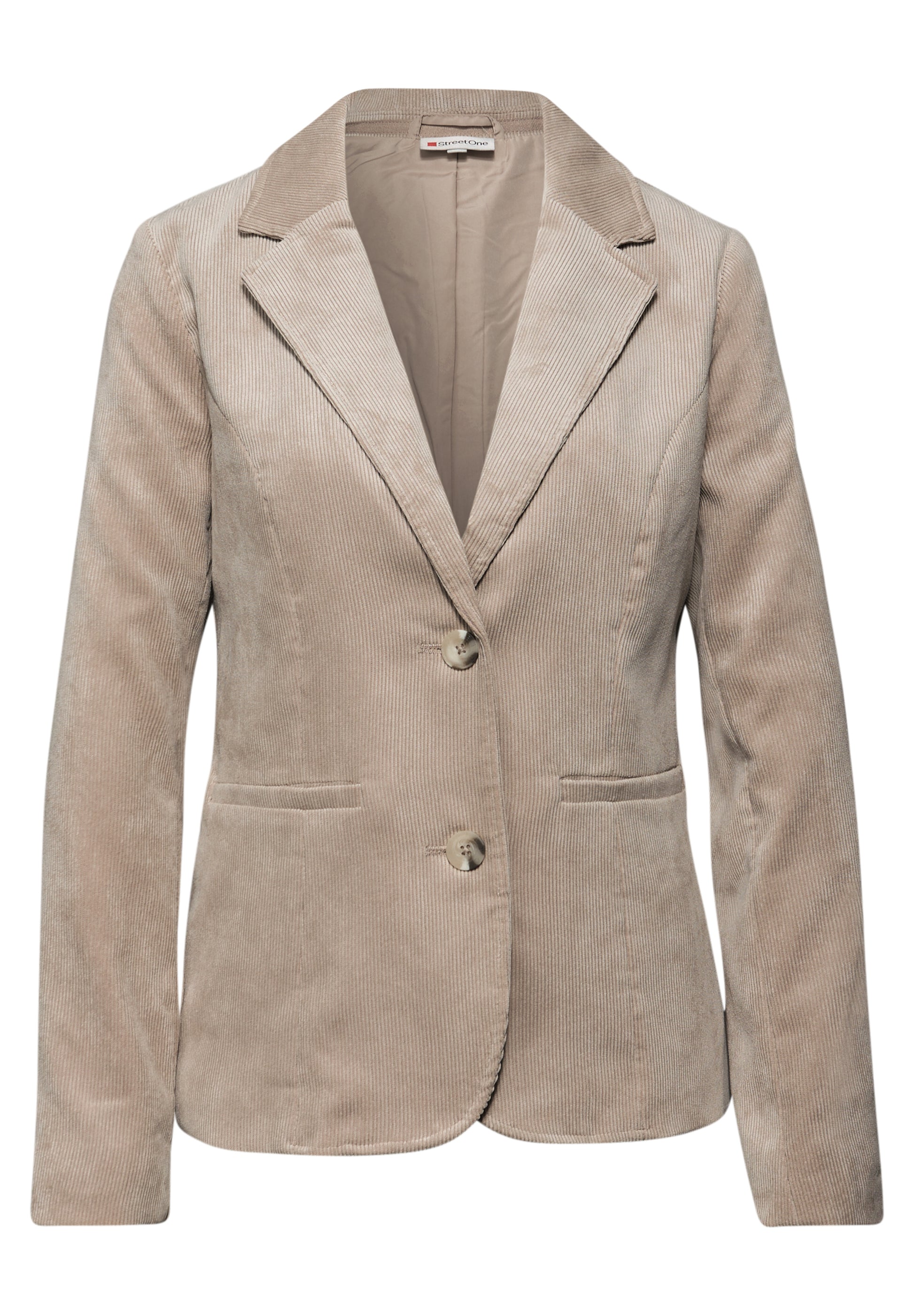 Der Cordblazer von Street One für Damen verleiht deinem Outfit eine modische Note. Mit klassischem Reverskragen und weicher Cordqualität überzeugt er durch Stil und Komfort gleichermaßen. Ideal kombinierbar – ob lässig zur Jeans oder elegant zur Stoffhose. Damenblazer Reverskragen Langarm Weiche Cordqualität Material: Obermaterial: 90% Polyester, 8% Polyamid, 2% Elasthan; Futter: 100% Polyester
