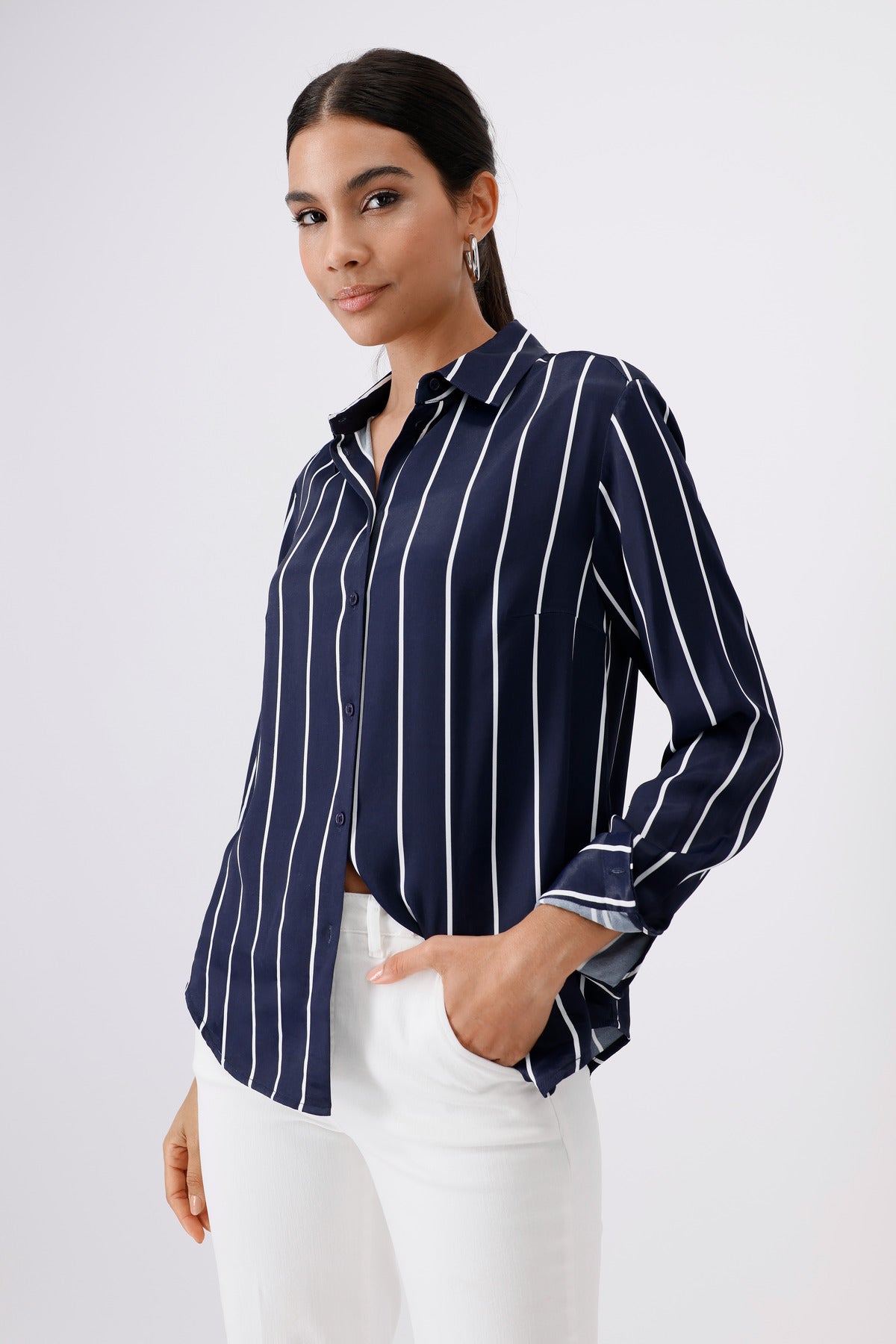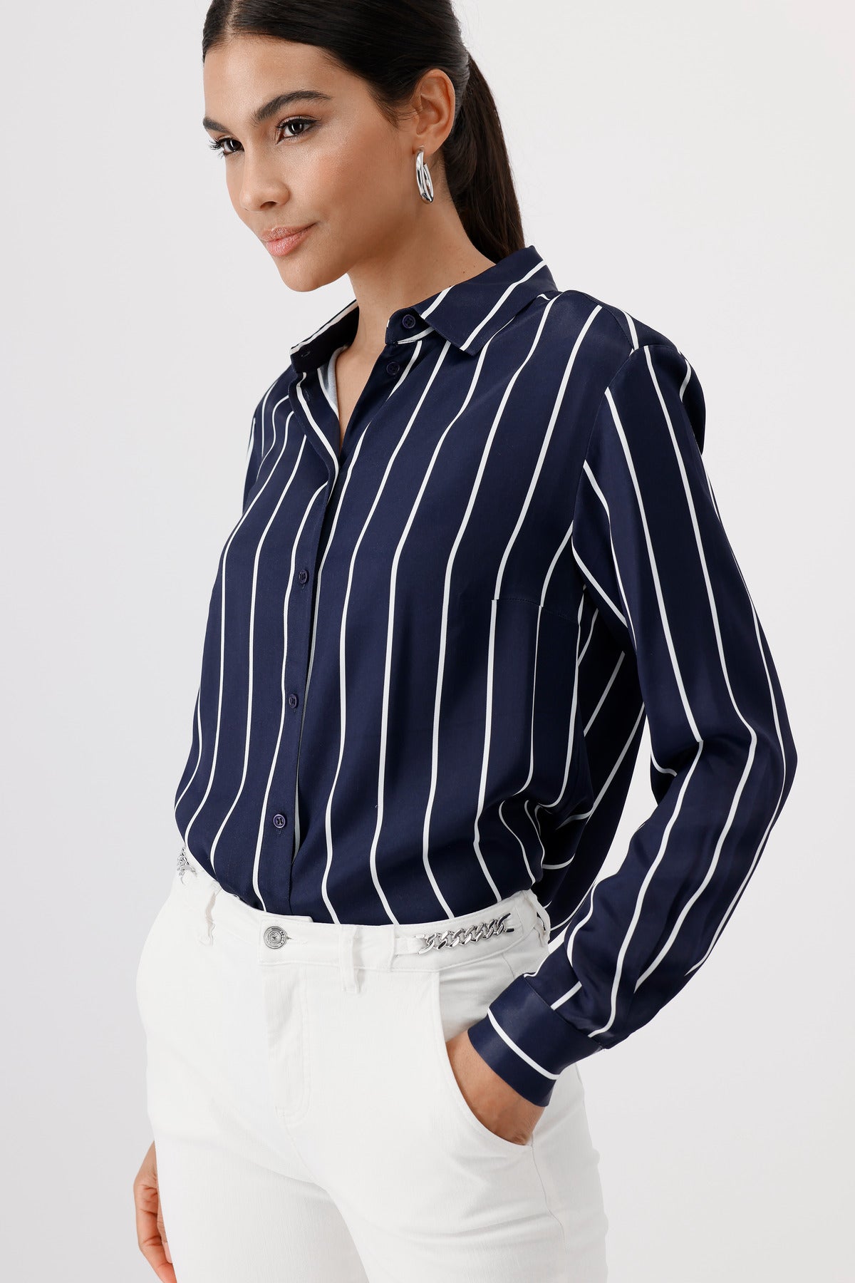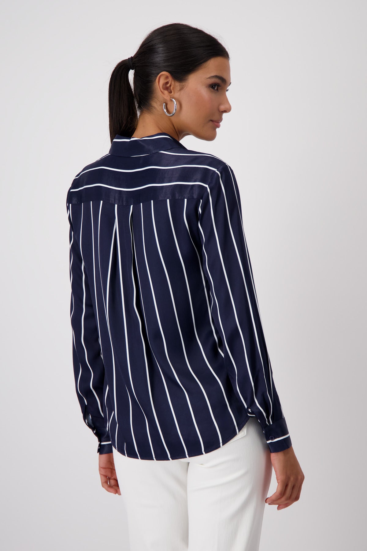 Die leichten, fließenden 100% Viskose dieser Hemdkragen-Bluse werden Sie bequem durch den Tag bringen. Die schimmernde Satinoptik wertet die Bluse edel auf.