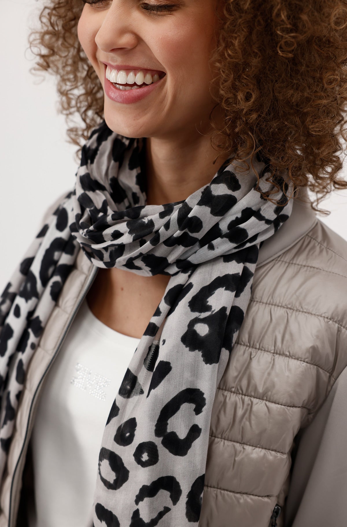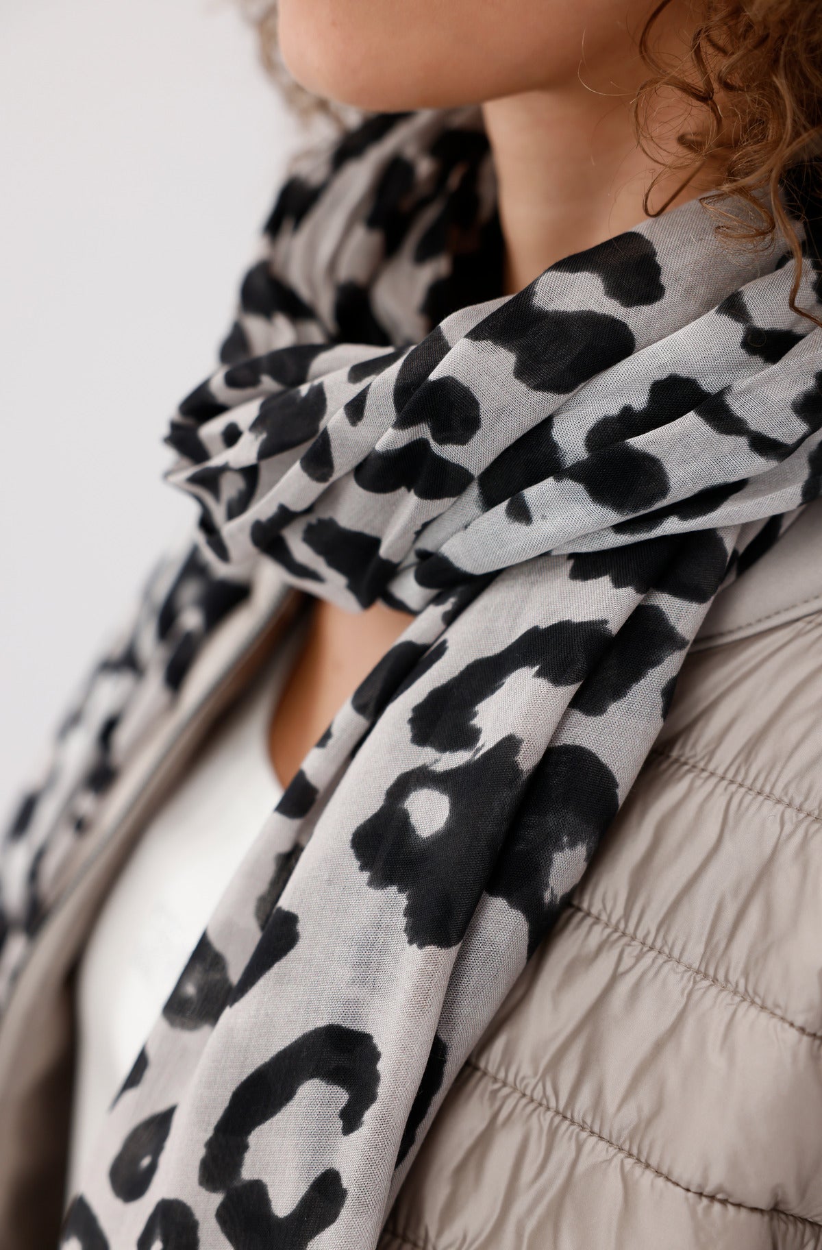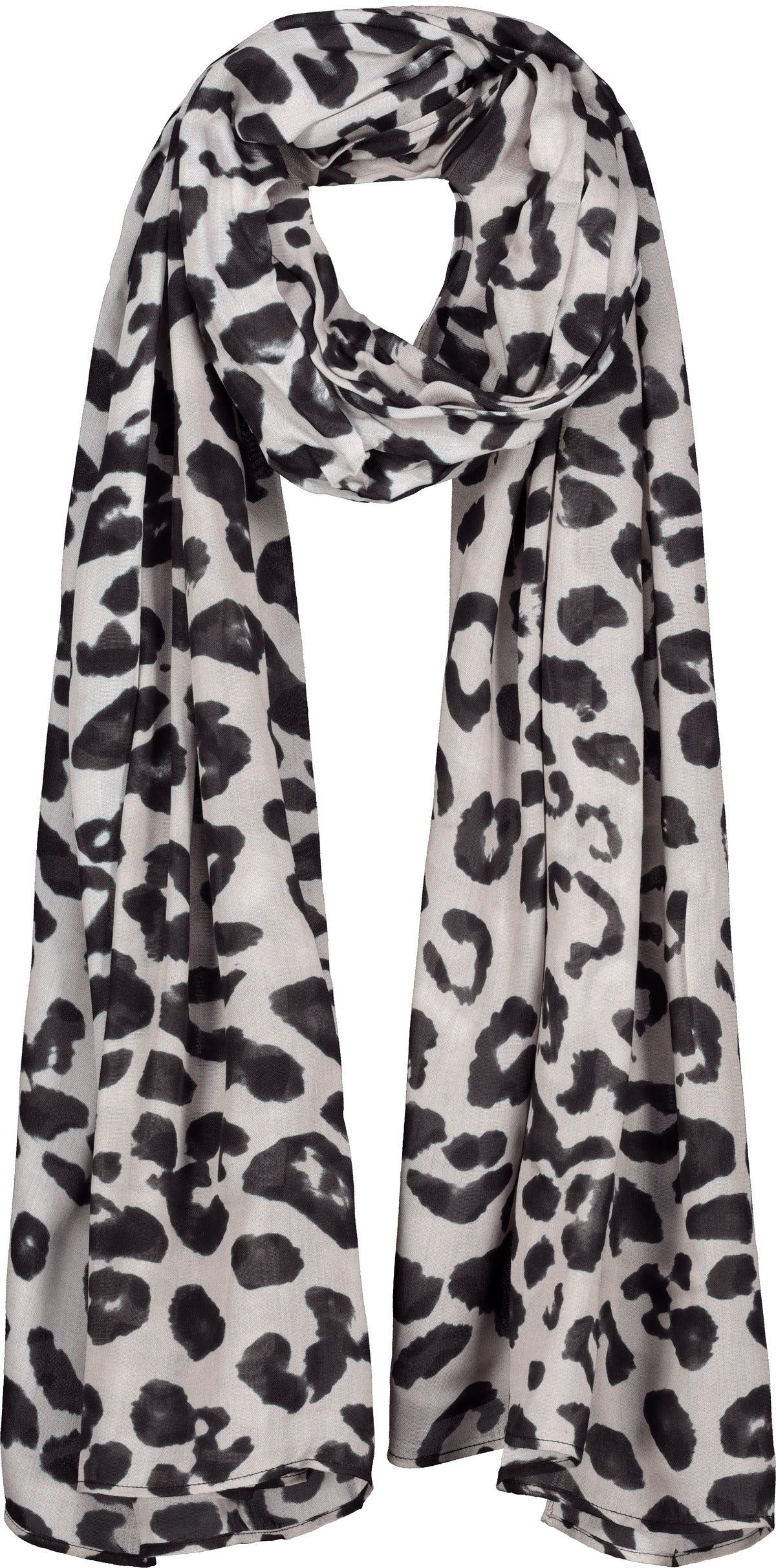 Dieses modische Tuch aus fließender Viskose überzeugt mit einem ausdrucksstarken Allover-Leopardenmuster. Die rechteckige Form ermöglicht vielseitige Styling-Varianten – ob lässig um den Hals, als Haarband oder dekoratives Accessoire. Der weiche Stoff trägt sich angenehm leicht und verleiht jedem Outfit das gewisse Etwas.