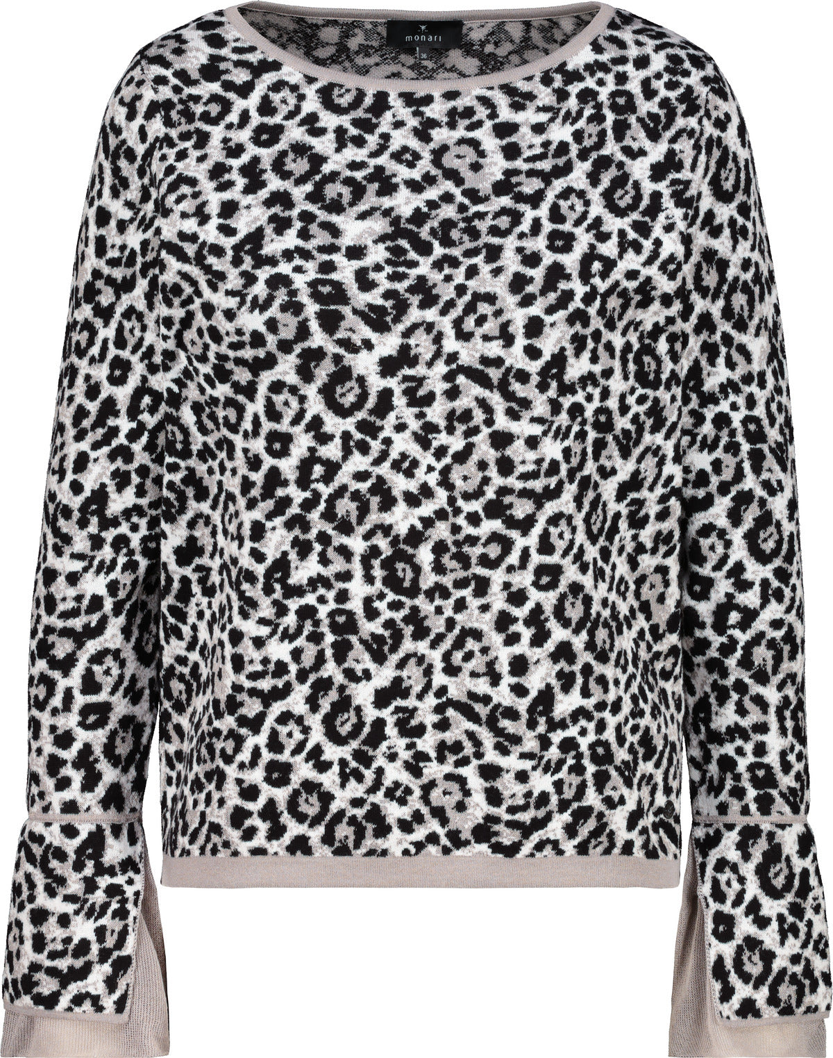 Trendiger Pullover aus hochwertiger Baumwollmischung mit fließender Viskose. Allover-Leopardenprint und raffinierte Ärmelsäume mit Schlitz und Stoffeinsatz machen ihn zum Hingucker.