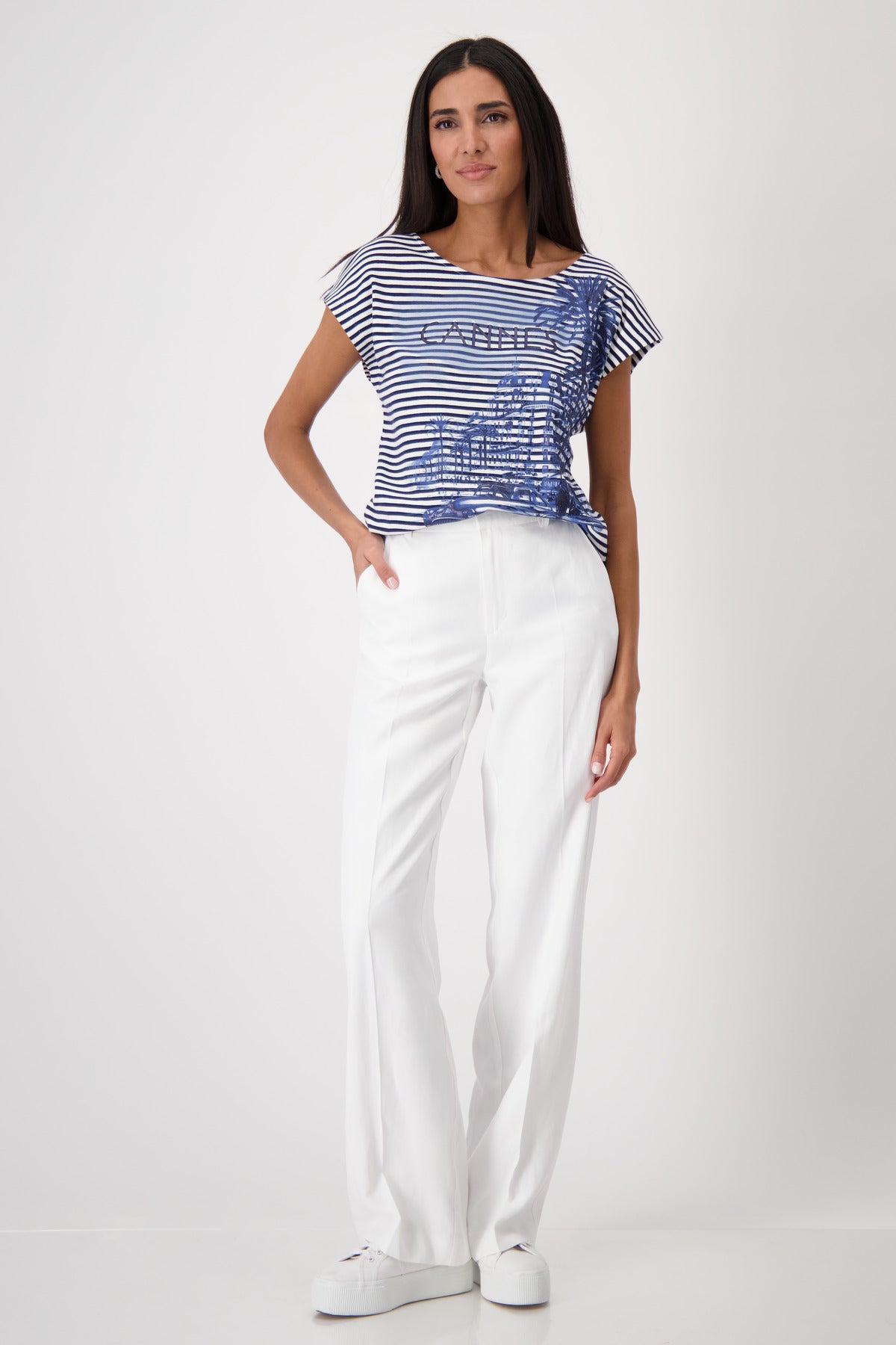 Dieses gestreifte T-Shirt mit Print besteht aus einer angenehmen Mischung aus Baumwolle und Modal. Dank der leicht überschnittenen Schulter bietet es einen bequemen und lässigen Tragekomfort.