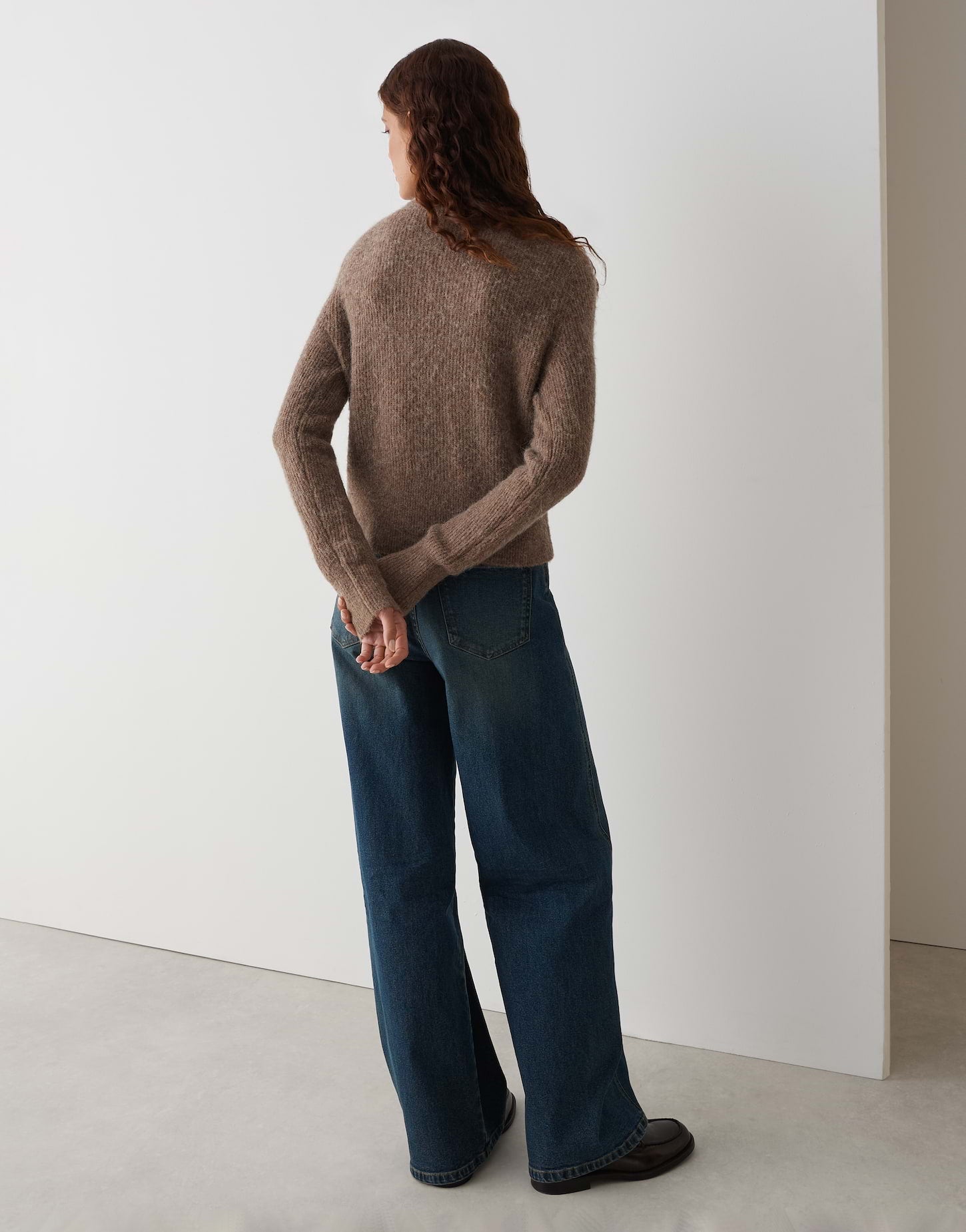 schmale Passform, figurbetont geschnitten, Langarm, Rundhalsausschnitt, Rückenlänge ca. 52 cm bei Größe 36, Model Größe 177 cm – trägt Größe 36, Strick, weicher Griff, wärmend, Strickbündchen, Knopfleiste