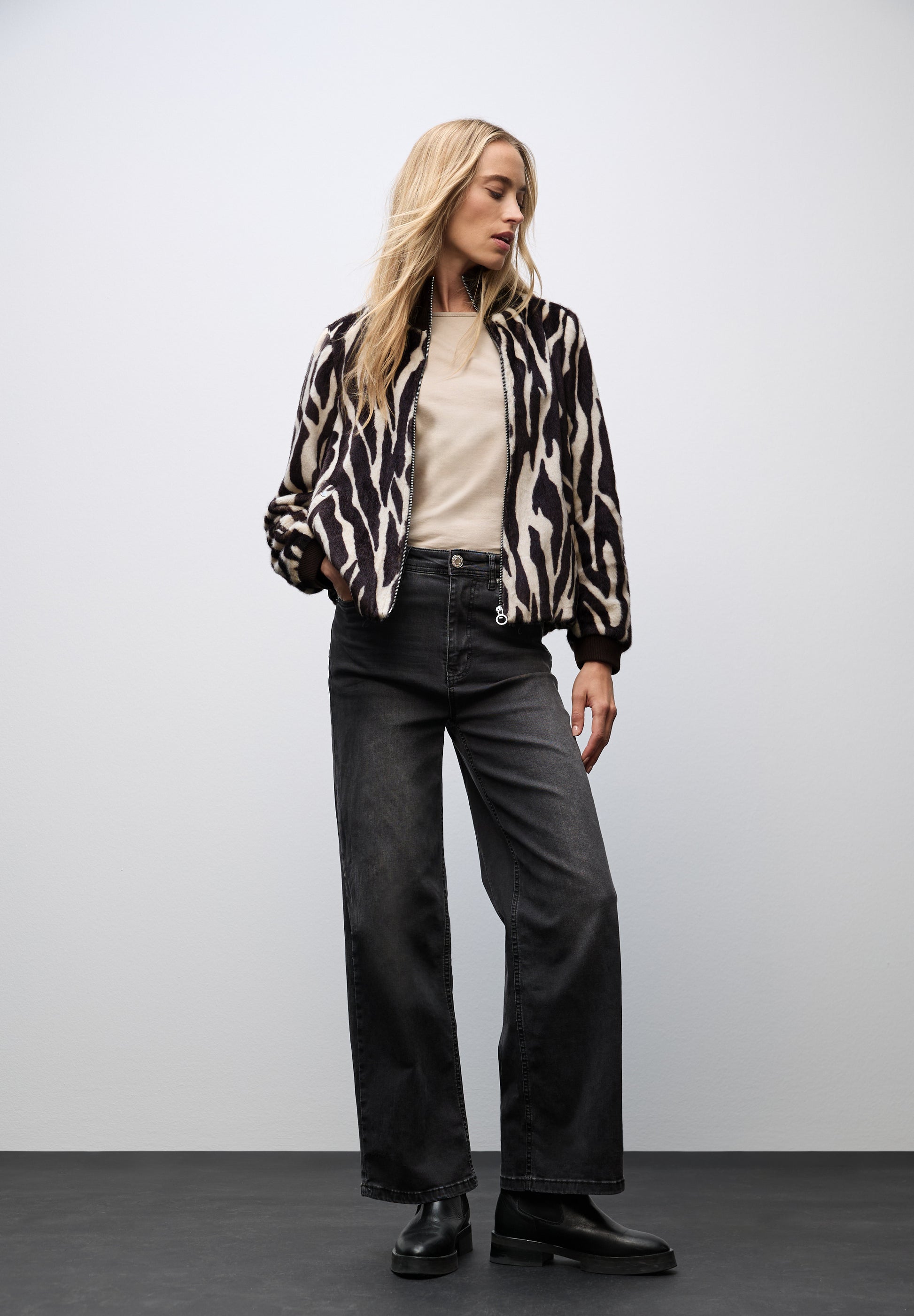 Mit dem Fake Fur Blouson von Street One für Damen setzt du ein echtes Statement. Die weiche Kunstfellqualität im angesagten Zebra-Print sorgt für einen auffälligen Look, während Stehkragen, Tunnelzug und seitliche Taschen das Design funktional abrunden. Perfekt für trendstarke Outfits mit Wohlfühlfaktor. Damenjacke Stehkragen Seitliche Taschen Tunnelzug am Saum Weiche Fake Fur Qualität mit Animal Print Material: Obermaterial: 100% Polyester; Futter: 100% Polyester