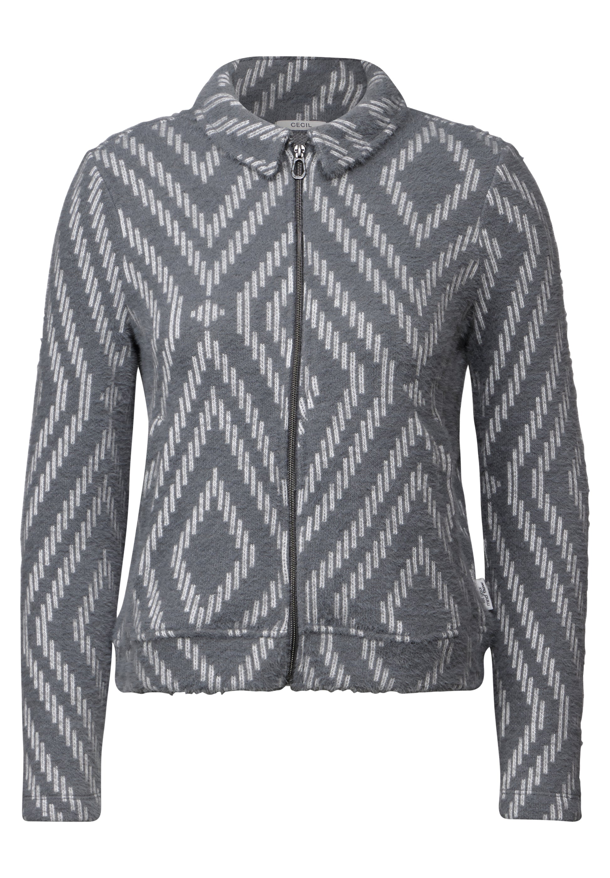 Der Federgarn-Cardigan mit Print von CECIL für Damen ist besonders flauschig und gemütlich. Der Hemdkragen und die Knopfleiste verleihen der Jacke eine klassische Note. Der angenehme Materialmix und das grafische Muster machen sie ideal für kühle Tage. Flauschige Jacke mit Knopfleiste Hemdkragen Langarm Angenehmer Materialmix Grafisches Muster Material: 65% Polyamid, 23% Polyester, 12% Viskose