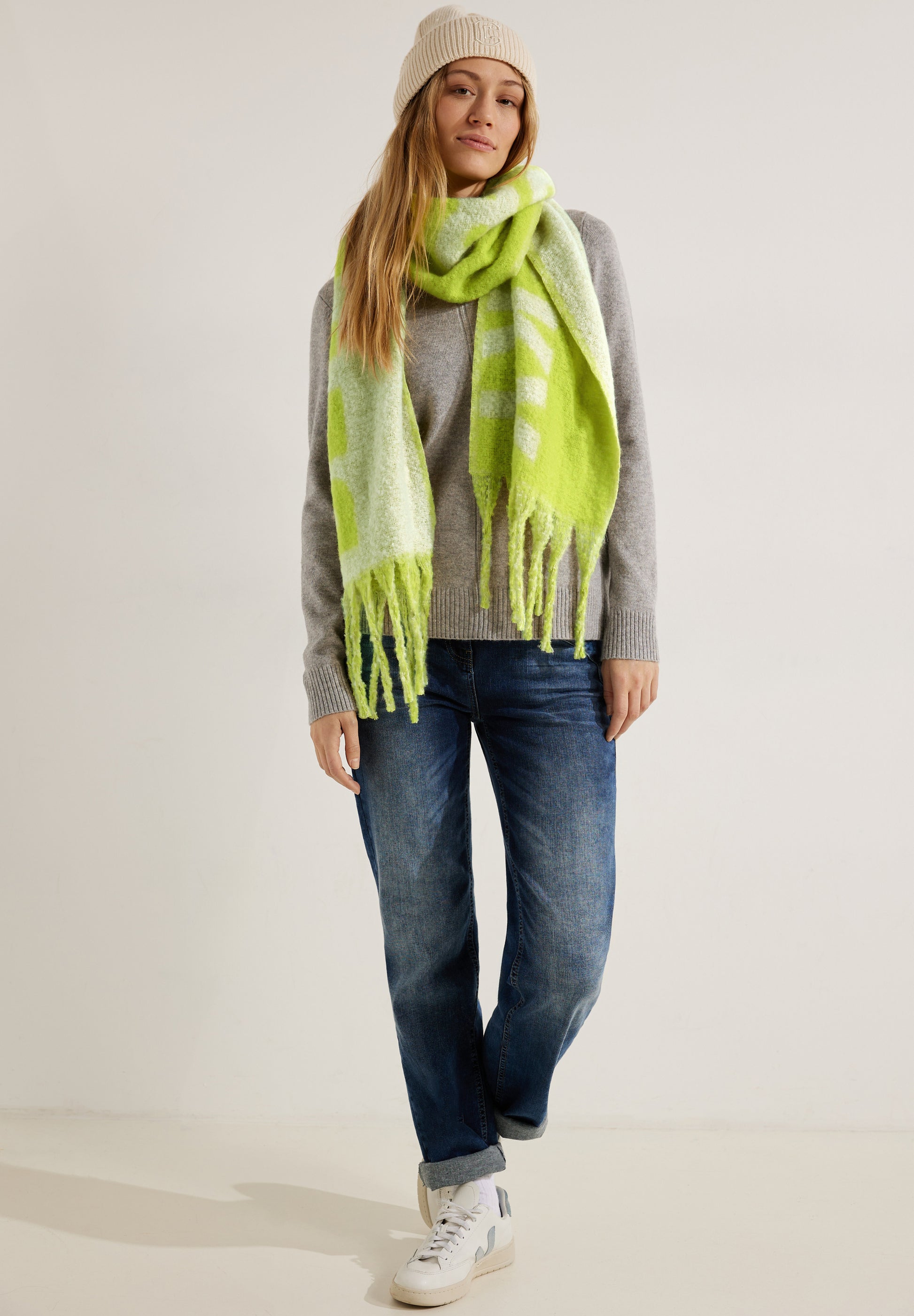 Ein gemütliches Accessoire mit einer persönlichen Botschaft! Der CECIL Jacquard Damenschal mit seinen Fransen und dem dezenten Wording ist mehr als nur ein Schal, es ist ein Ausdruck deines individuellen Stils. Hergestellt aus flauschigem Material, hält er dich nicht nur warm, sondern verleiht deinem Outfit auch eine charmante Note. Schal Fransen Wording Jacquard Flauschig Material: 100% Polyester