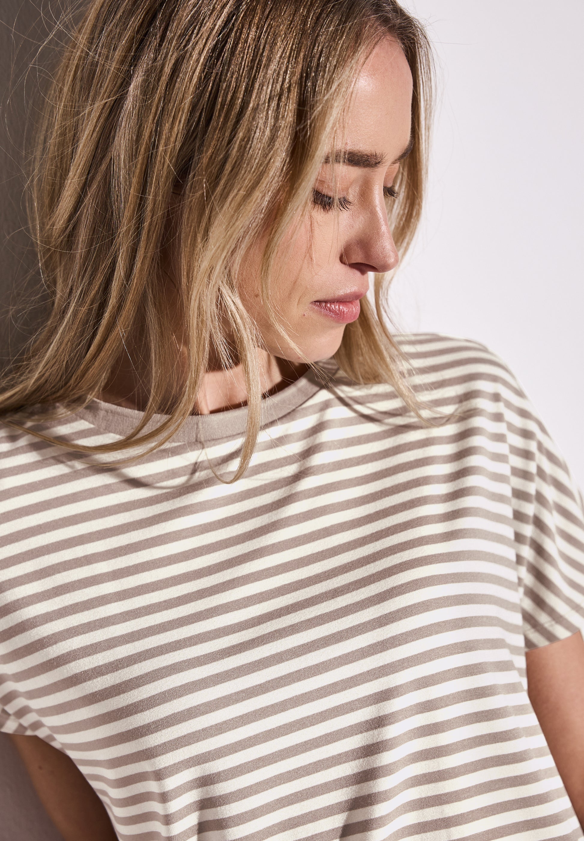 Mit seinem modischen Streifenmuster setzt dieses Shirt im Style Crista von Street One für Damen stylische Akzente. Rundhalsausschnitt und dropped shoulders runden den Look ab, während der Viskosemix mit Stretchanteil für hohen Tragekomfort sorgt. Damenshirt Rundhalsausschnitt Dropped Shoulder Streifenmuster Viskosemix mit Stretchanteil Material: 95% Viskose, 5% Elasthan