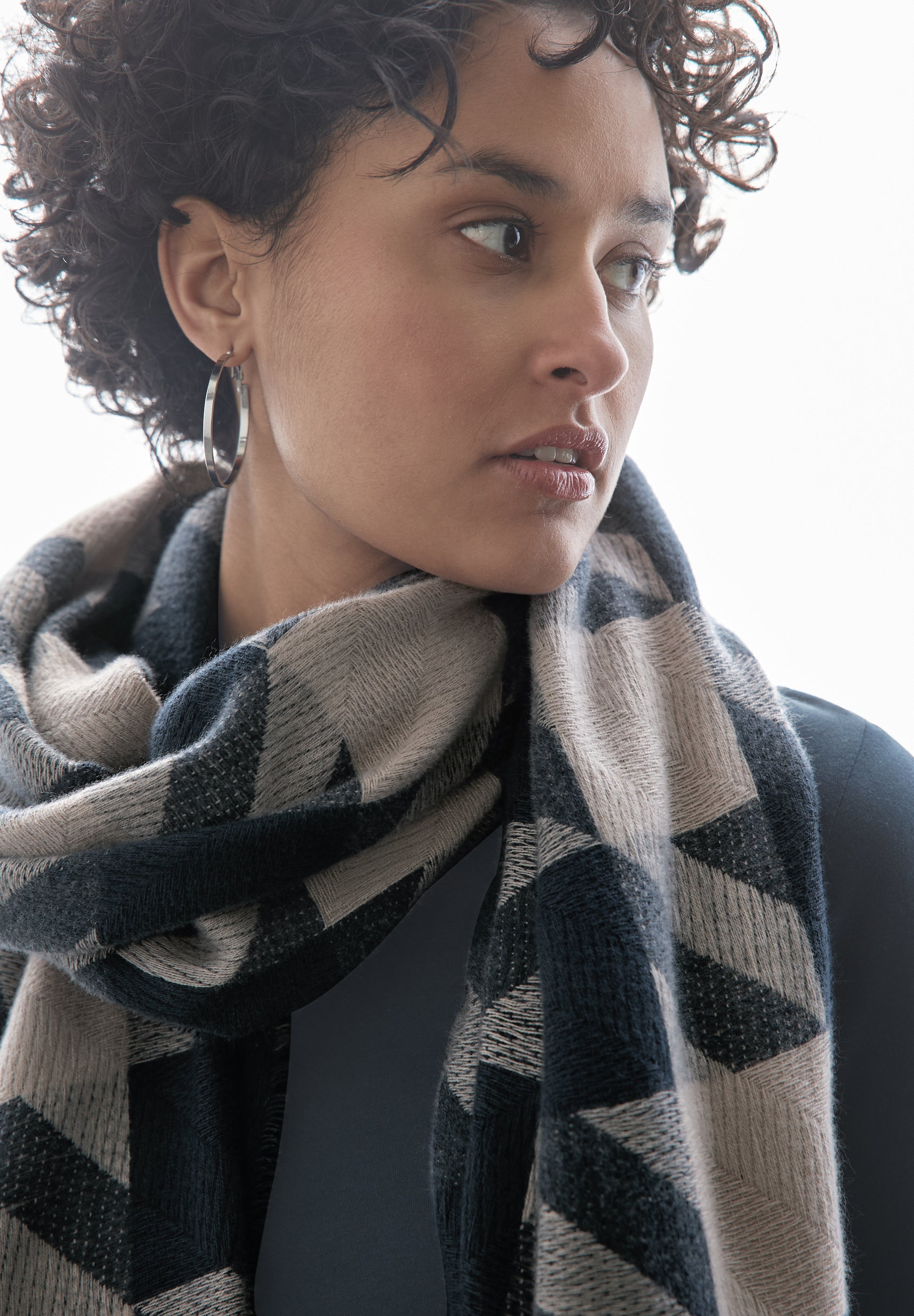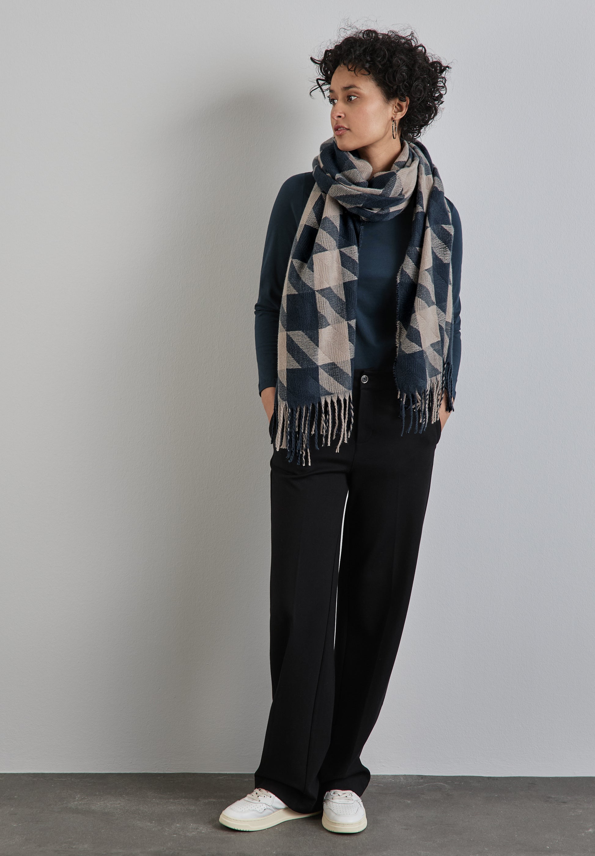 Dieser lange Schal von Street One für Damen im Hahnentritt-Muster sorgt mit seinen modischen Fransen für einen klassischen Look. Langer Schal Modische Fransen Hahnentritt Muster Material: 100% Polyester