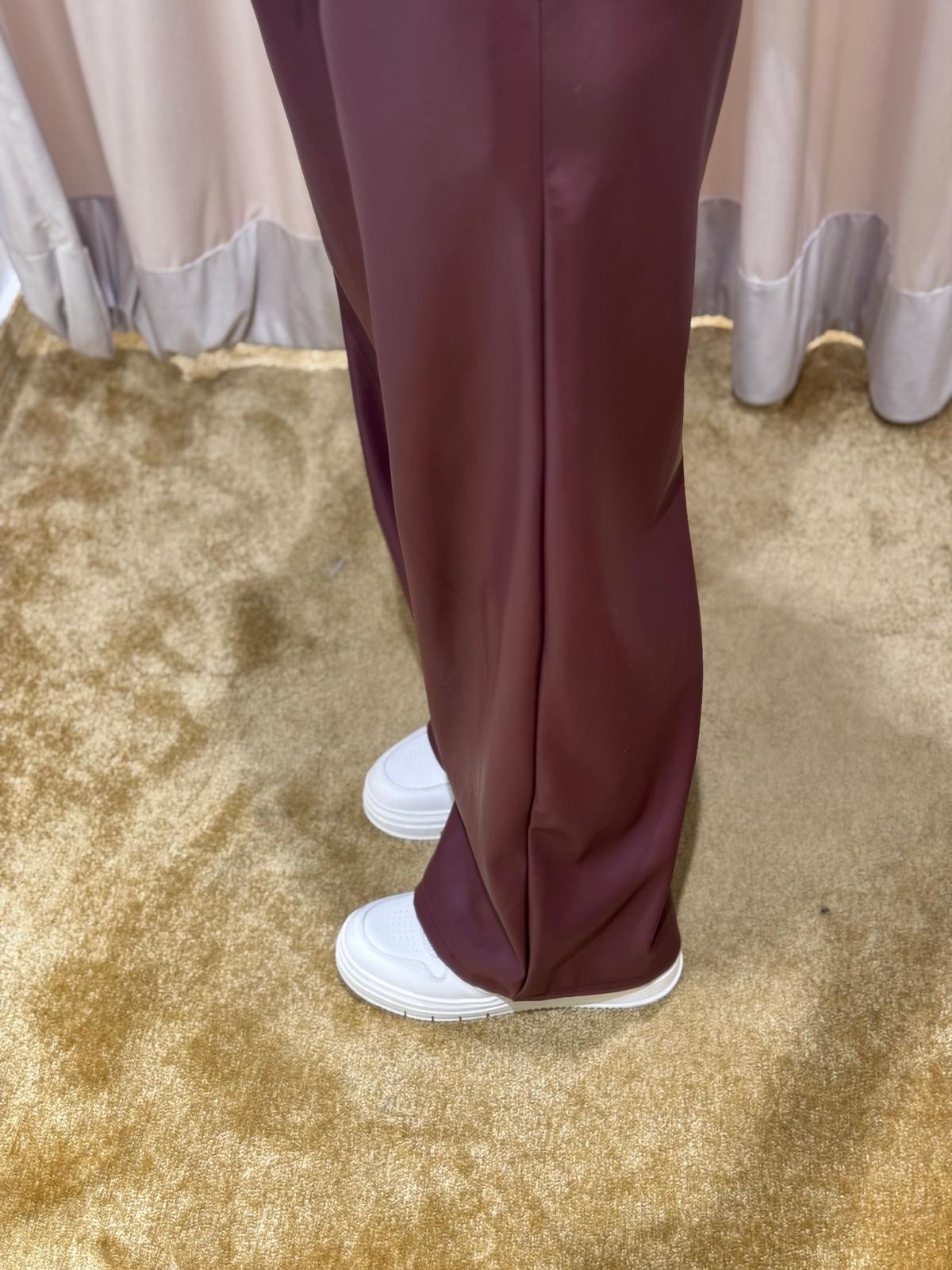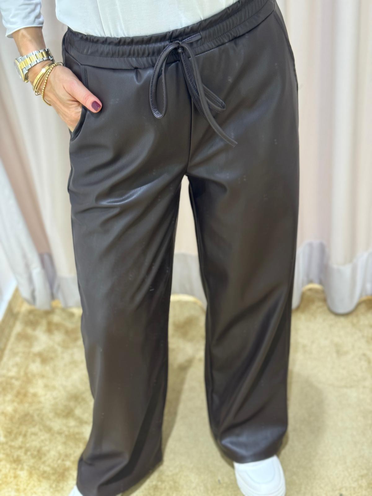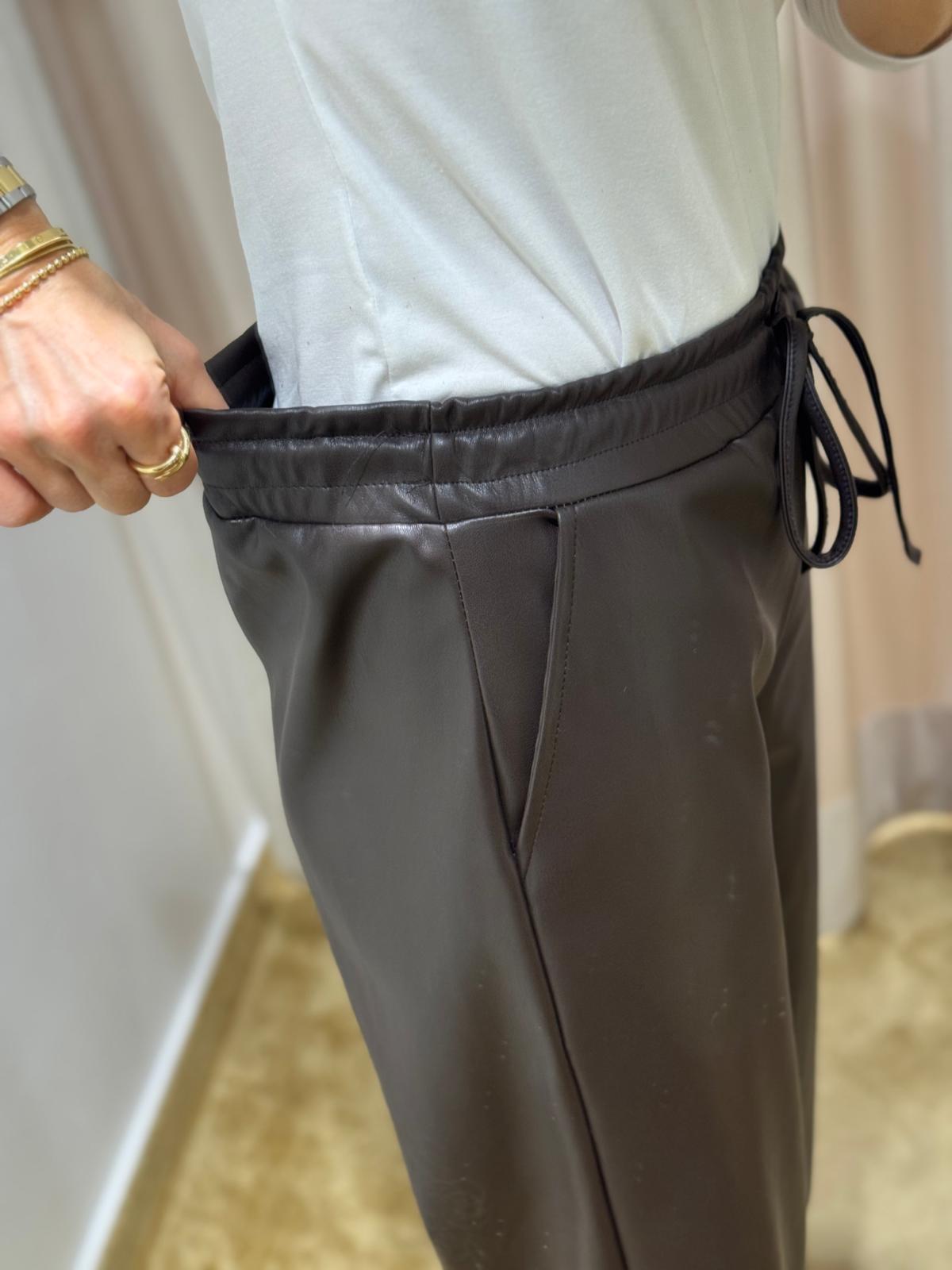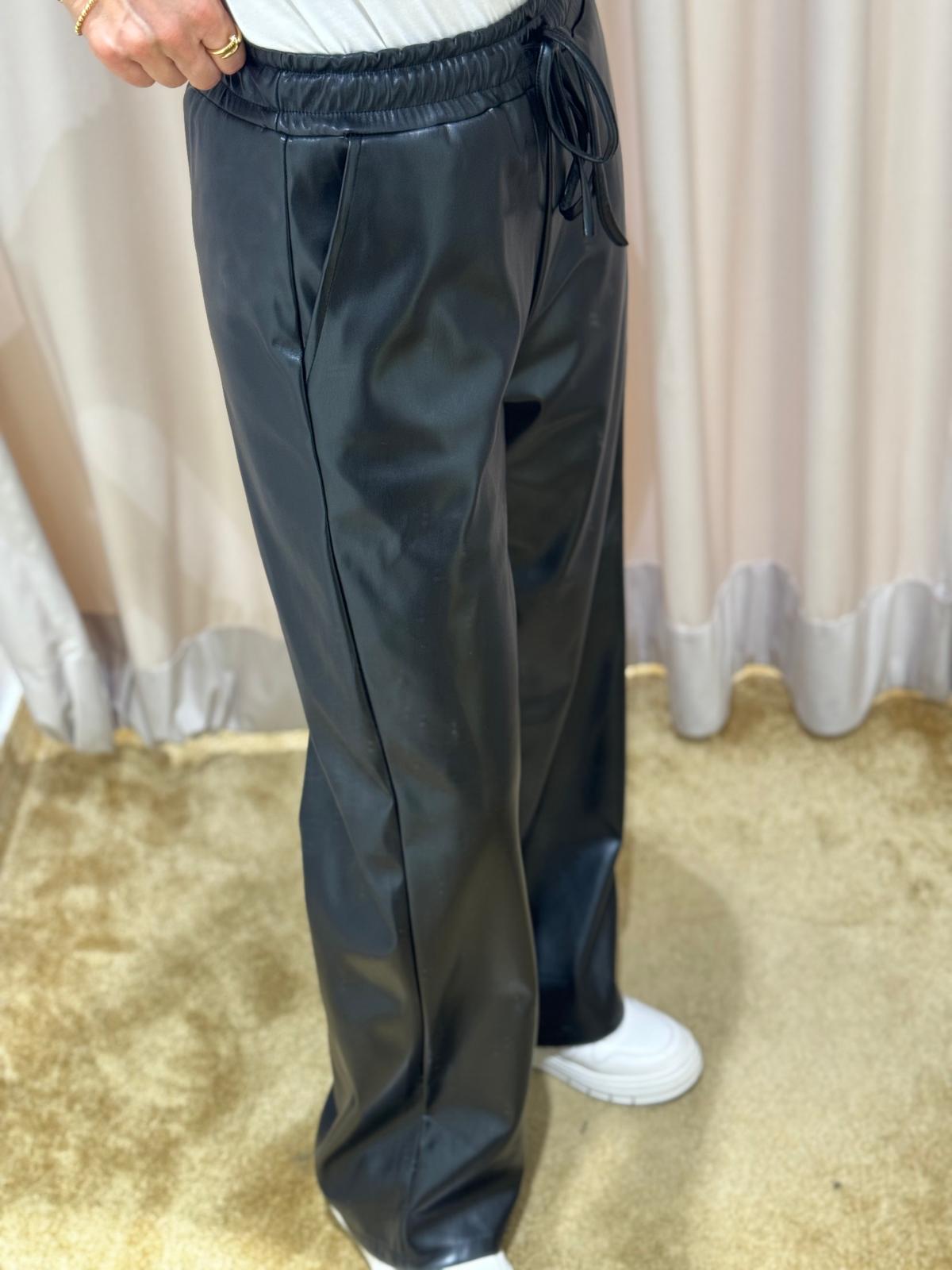 Das weiche, vegane Leder fühlt sich angenehm soft an, der elastische Bund mit Bindeband sorgt für den perfekten Sitz.