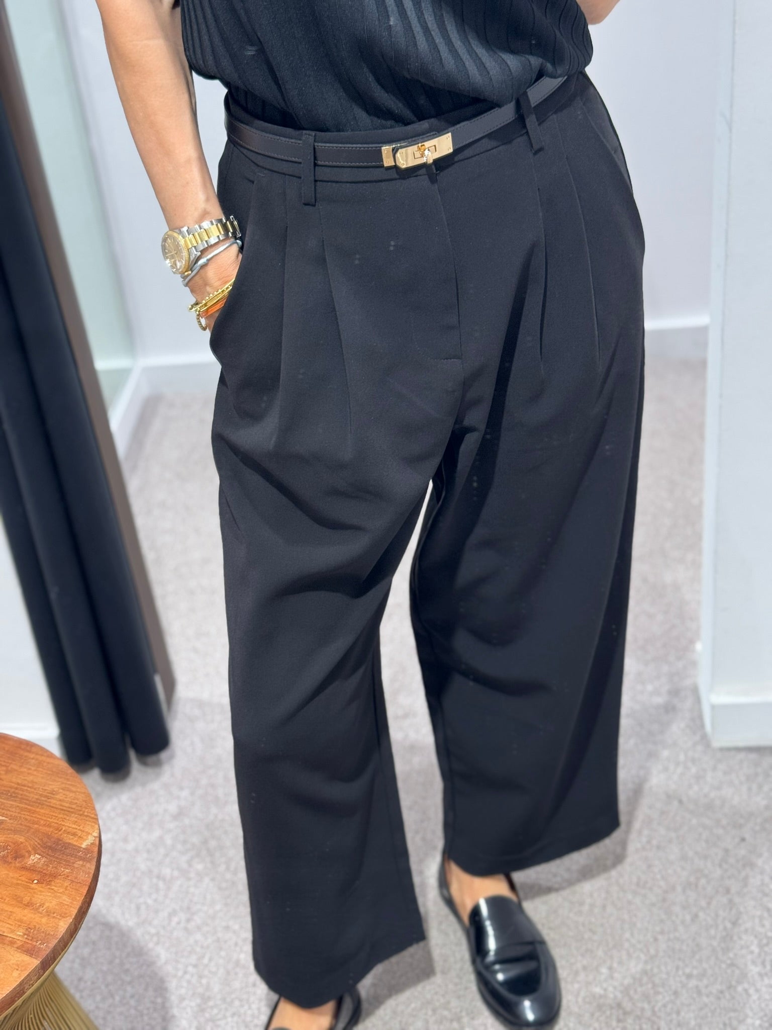 Lässig trifft Eleganz: Diese Hose sitzt locker im Schritt, endet bei 1,70 m knöchellang und bringt durch die markanten Bundfalten und die hohe Leibhöhe modernen Komfort in klassische Form. Der Passform-Bund sorgt für Struktur, ohne einzuengen – perfekt für entspannte City-Days oder stilvolle Urlaubslooks. – dein neuer Allrounder mit Stil.
