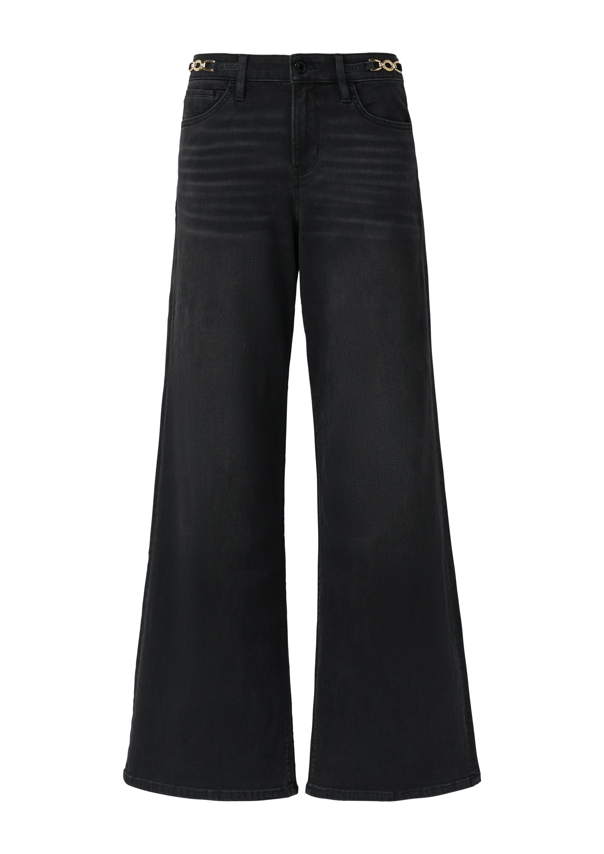 Die lässige Wide Leg Jeans Suri mit mittlerer Bundhöhe überzeugt durch elegante Metall-Details und angenehm weichen Baumwollmix. Dank Regular Fit und klassischer 5-Pocket-Form wird sie zu deinem vielseitigen Alltagsbegleiter - von casual bis festlich.