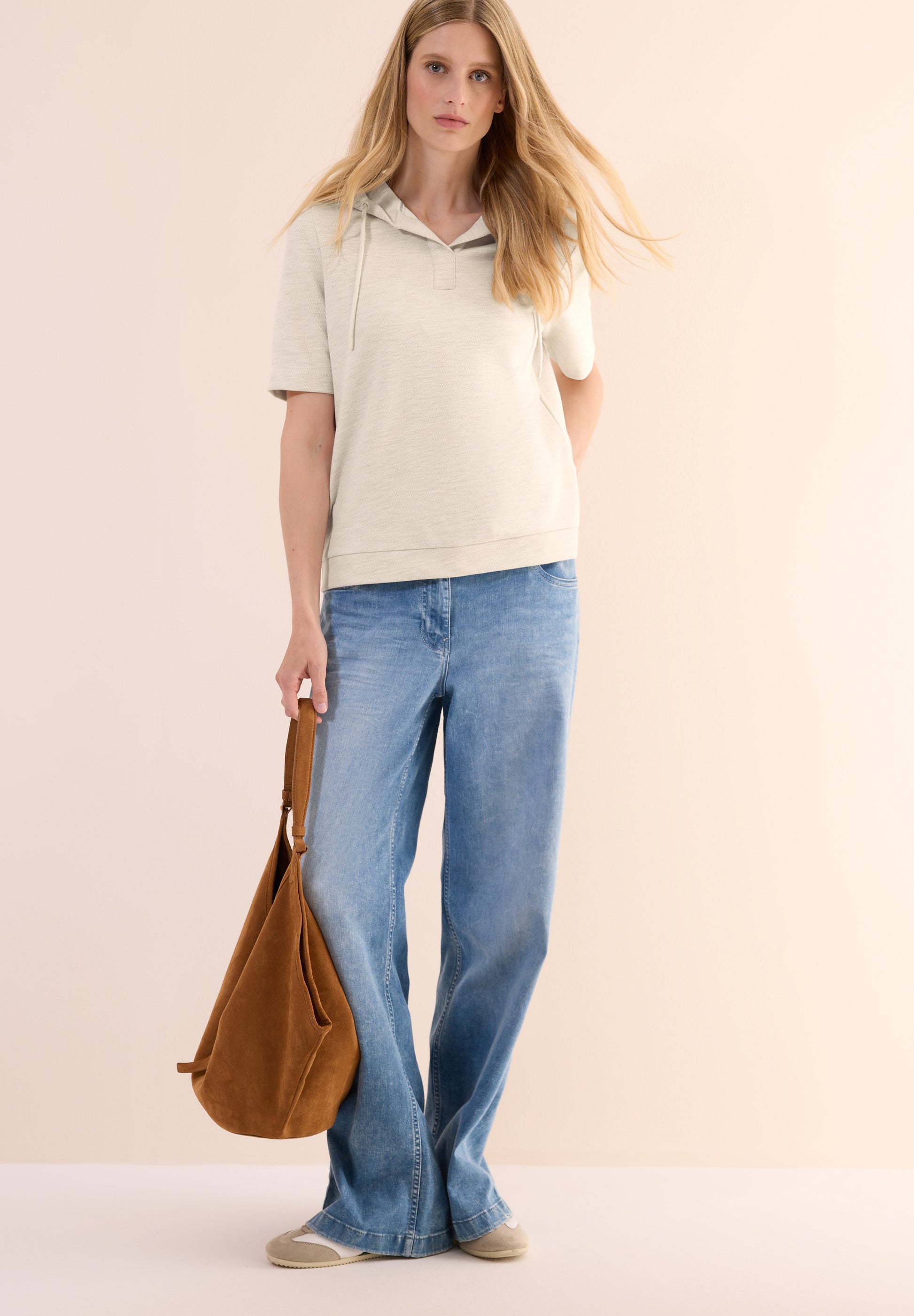 Der Kurzarm-Hoodie von CECIL für Damen ist die perfekte Mischung aus sportlich und bequem. Die Kapuze mit Tunnelzug und die seitlichen Schlitze verleihen ihm eine moderne Note. Der weiche Baumwollmix mit Stretchanteil sorgt für hohen Tragekomfort. Sweatshirt Kapuze mit Tunnelzug Kurzarm Seitliche Schlitze Baumwollmix mit Stretchanteil Material: 76% Baumwolle, 20% Polyester, 4% Elasthan