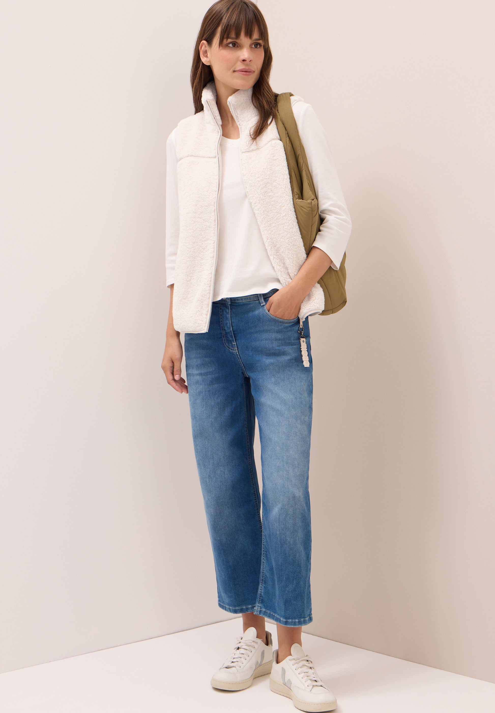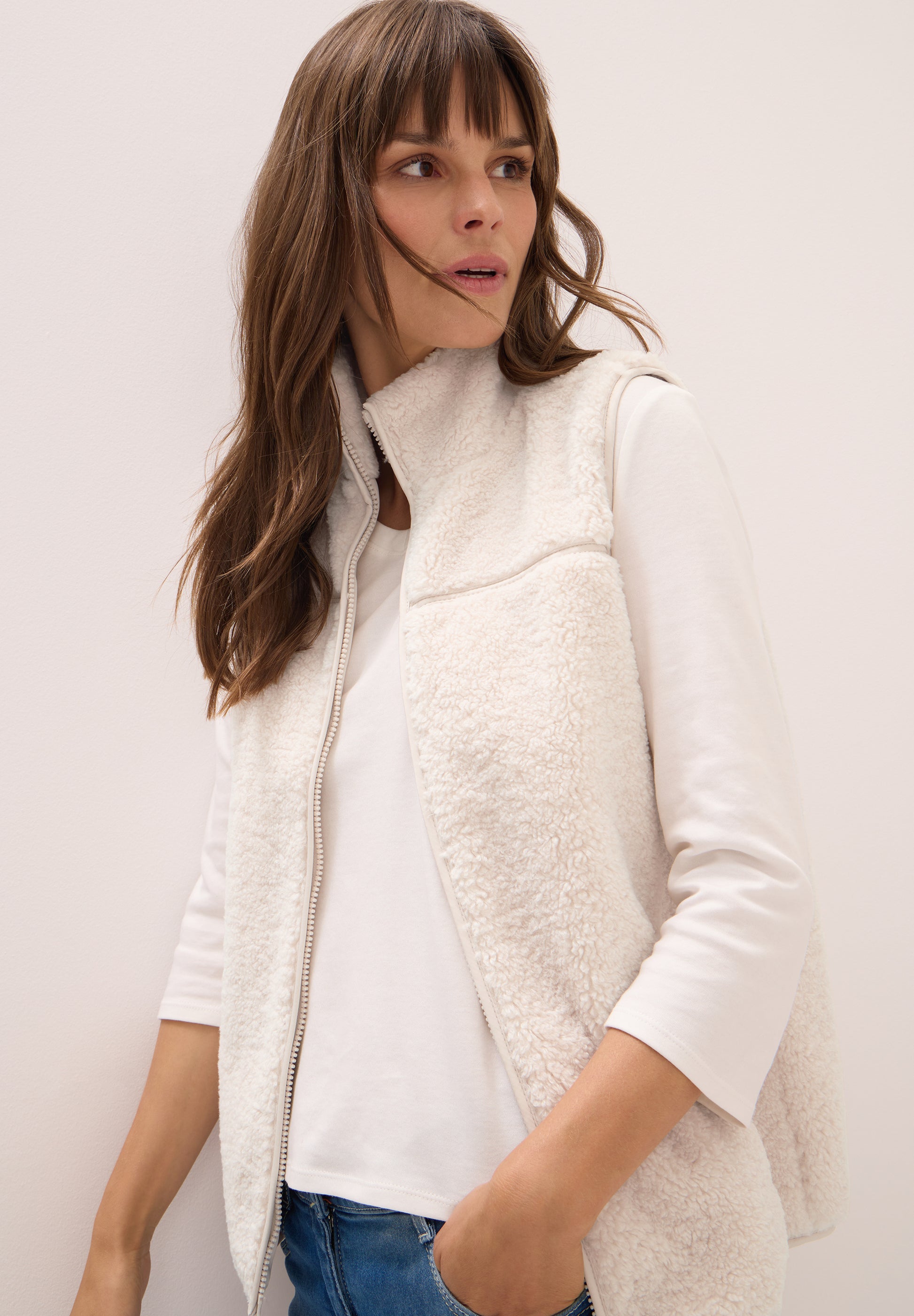 Die kurze Teddy-Weste von CECIL für Damen begeistert mit ihrer kuschelig weichen Qualität und einem sportiven Look. Ein Stehkragen, tonaler Zipper und seitliche Taschen runden das Design funktional ab. Sportive Paspeln setzen modische Akzente – perfekt für gemütliche Outfits mit Trendfaktor. Weste mit Stehkragen Seitliche Taschen Sportive Paspeln Tonaler Zipper Kuschelig weich Material: Obermaterial: 100% Polyester; Futter: 100% Polyester