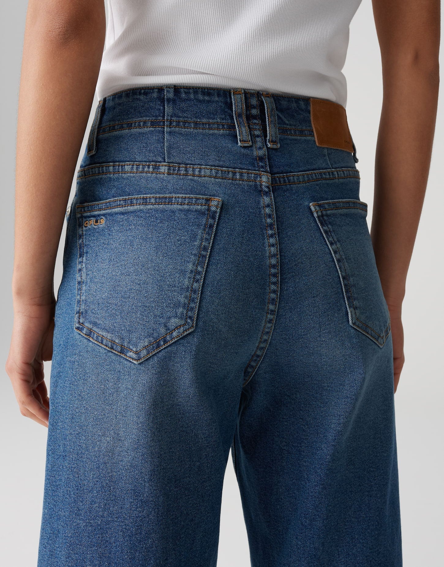 weiter, gerader Beinverlauf, Hosenbein Innenlänge in jeder Größe: L26 ca. 68 cm, Model Größe 177 cm – trägt Größe 36, Denim, enthält nichttextile Teile tierischen Ursprungs, natürlicher Griff, authentische Waschung, 5-Pocket-Design, aufgesetzte Taschen hinten, verdeckter Zip-Fly, Leder Patch, leichte Used-Effekte, Logo-Stickerei