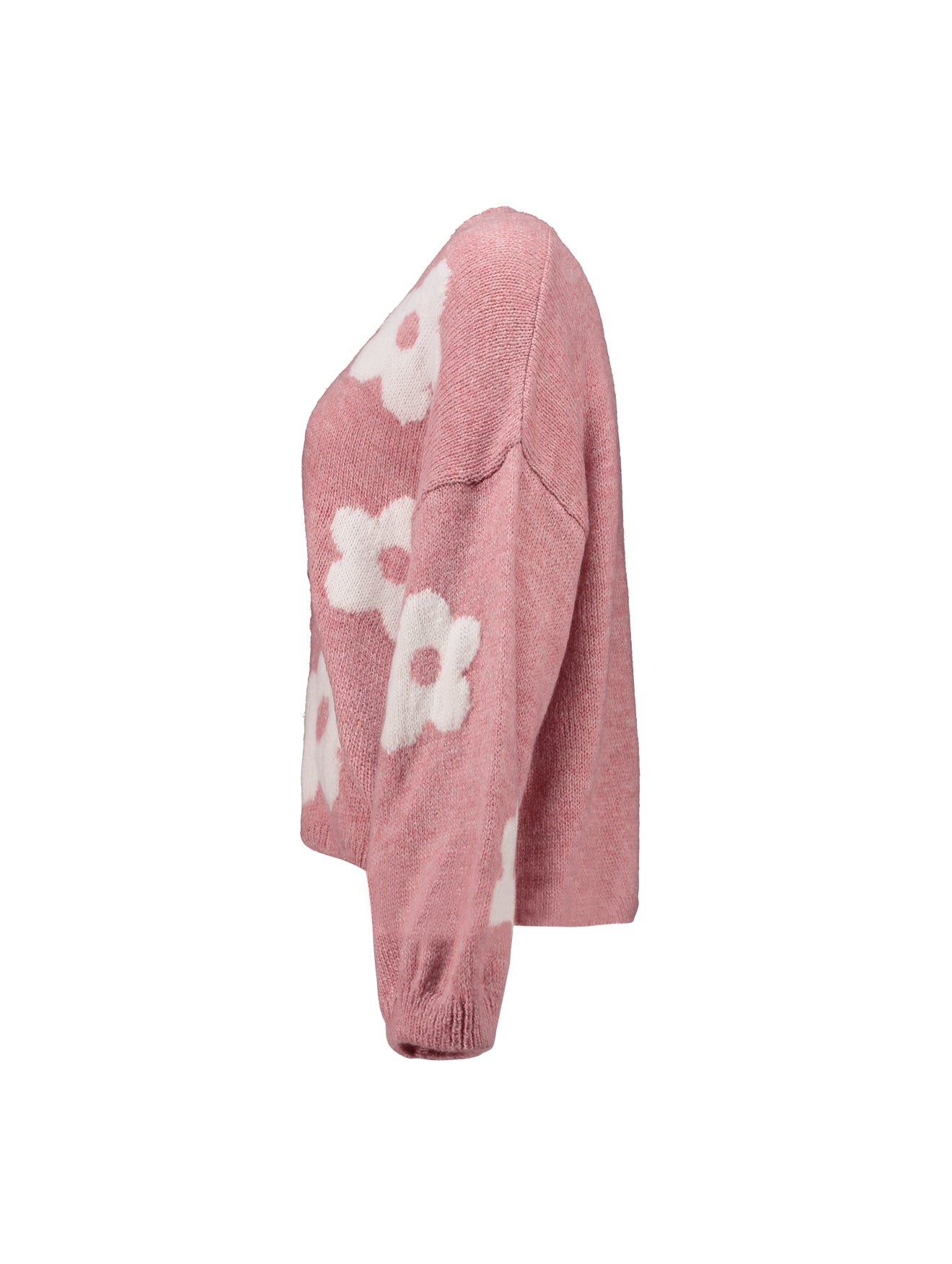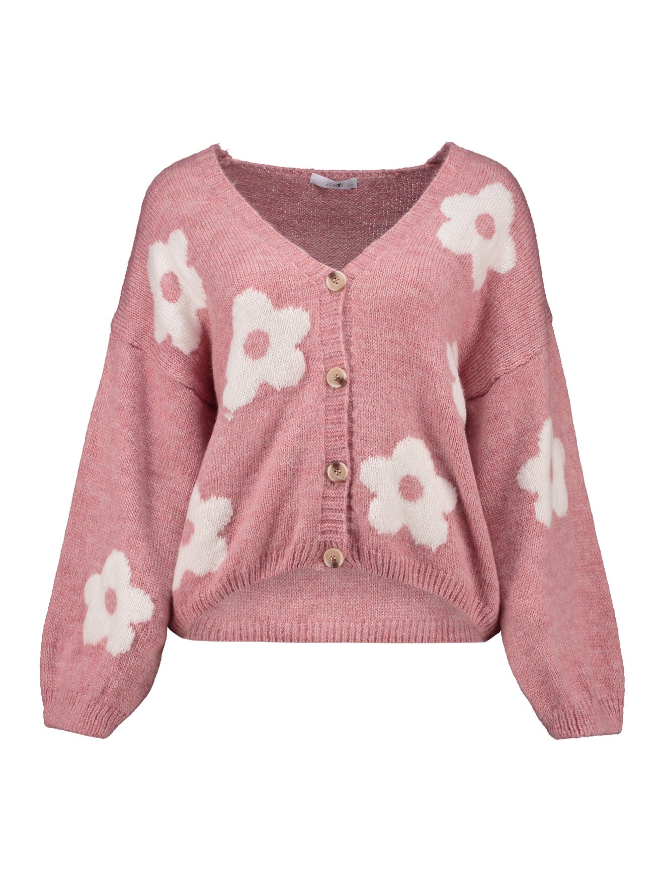 Langärmiger Kardigan im Oversize Look mit Flower Muster und V Ausschnitt.