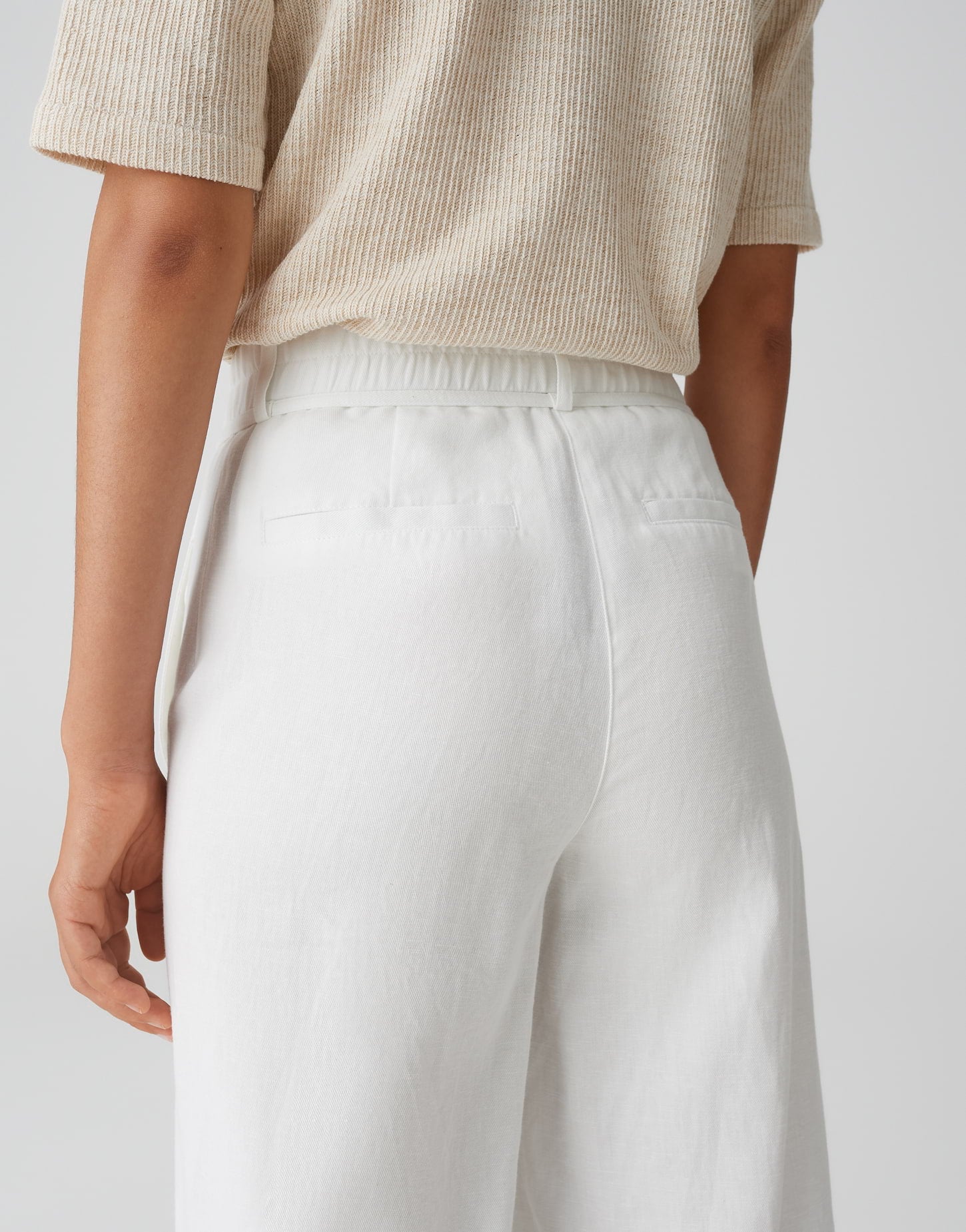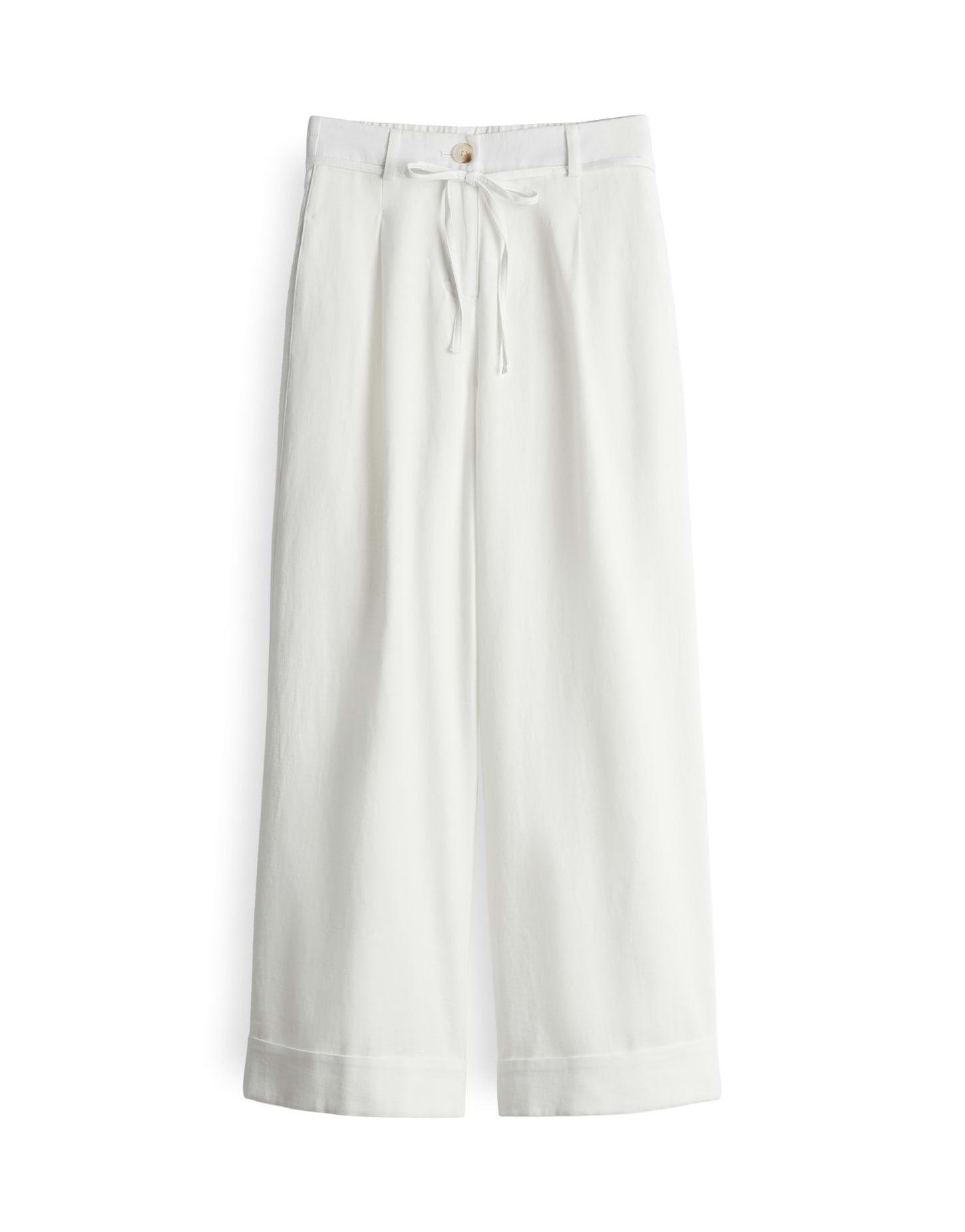 weit am Oberschenkel, weiter Beinverlauf, Hosenbein Innenlänge ca. 67 cm in jeder Größe, Model Größe 178 cm – trägt Größe 36, Webware, dezente Twillstruktur, natürlicher Griff, fließender Fall, französische Taschen, Zier-Paspeltaschen hinten, Kordel zum Binden, verdeckter Zip-Fly, Gürtelschlaufen, Aufschlag am Saum