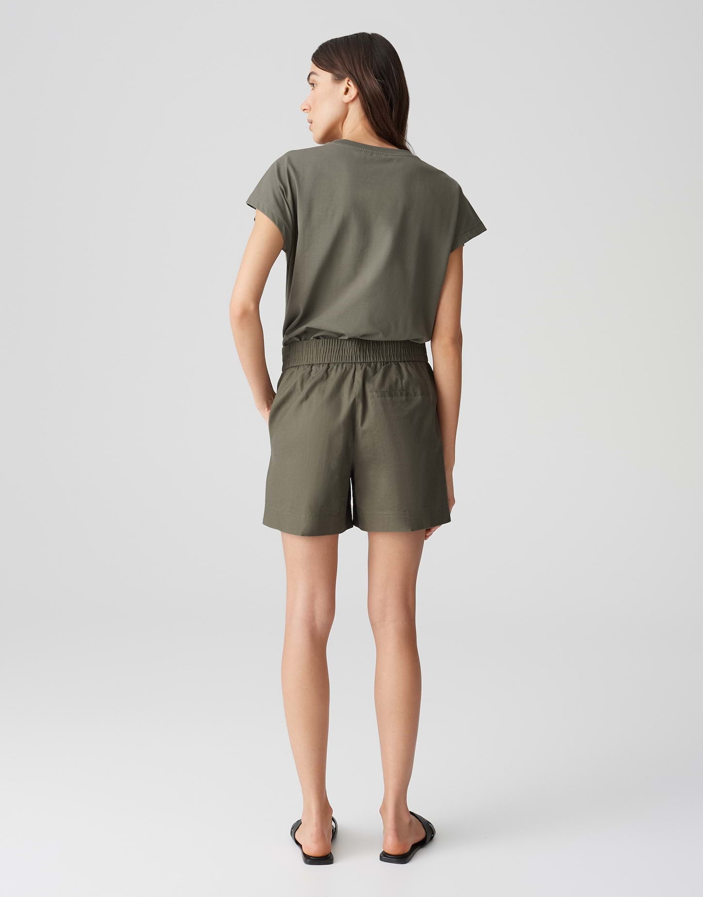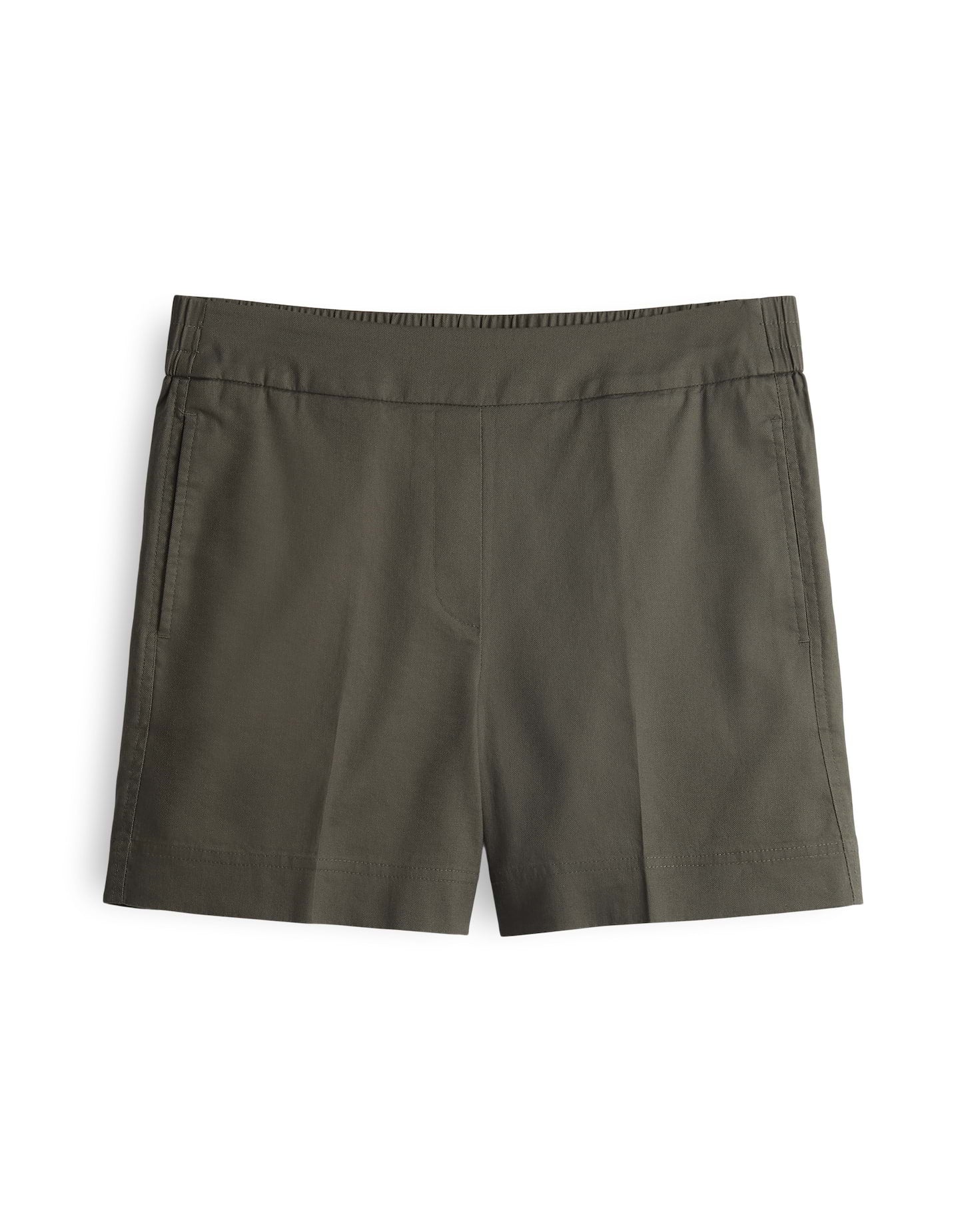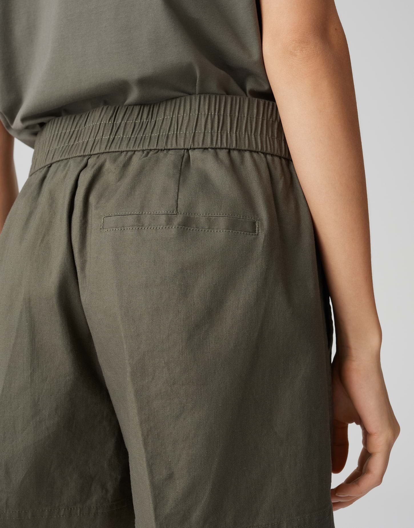 normale Passform, Mid Rise, locker am Oberschenkel, Hosenbein Innenlänge ca. 13 cm in jeder Größe, Model Größe 175 cm – trägt Größe 36, dezente Twillstruktur, natürlicher Griff, leicht elastischer Stoff, französische Taschen, Zier-Paspeltasche hinten, Bügelfalten, elastischer Gummibund