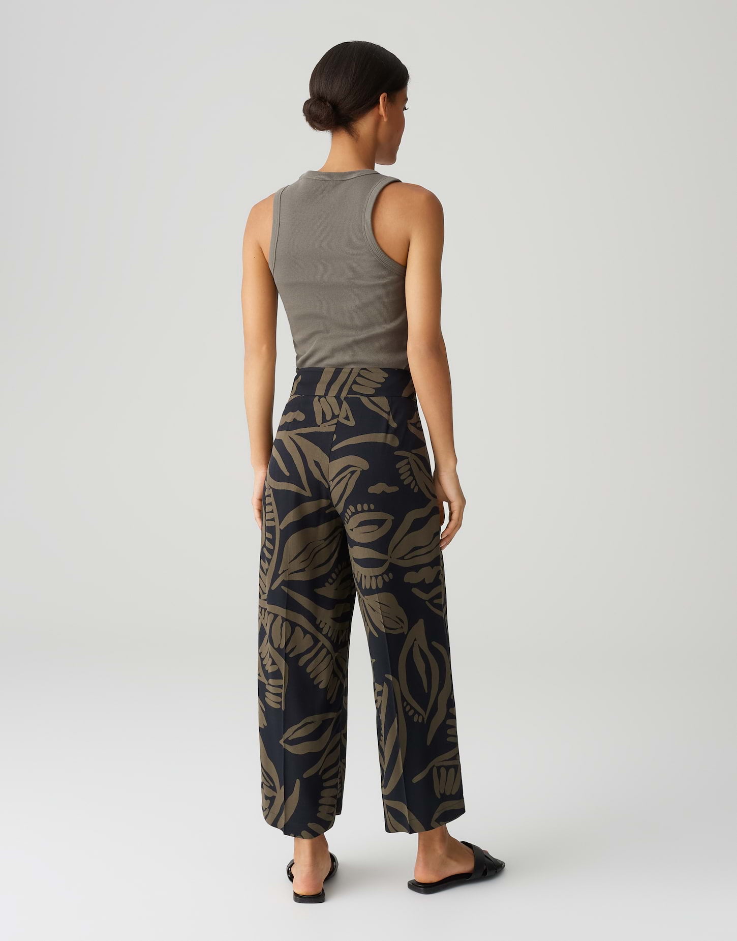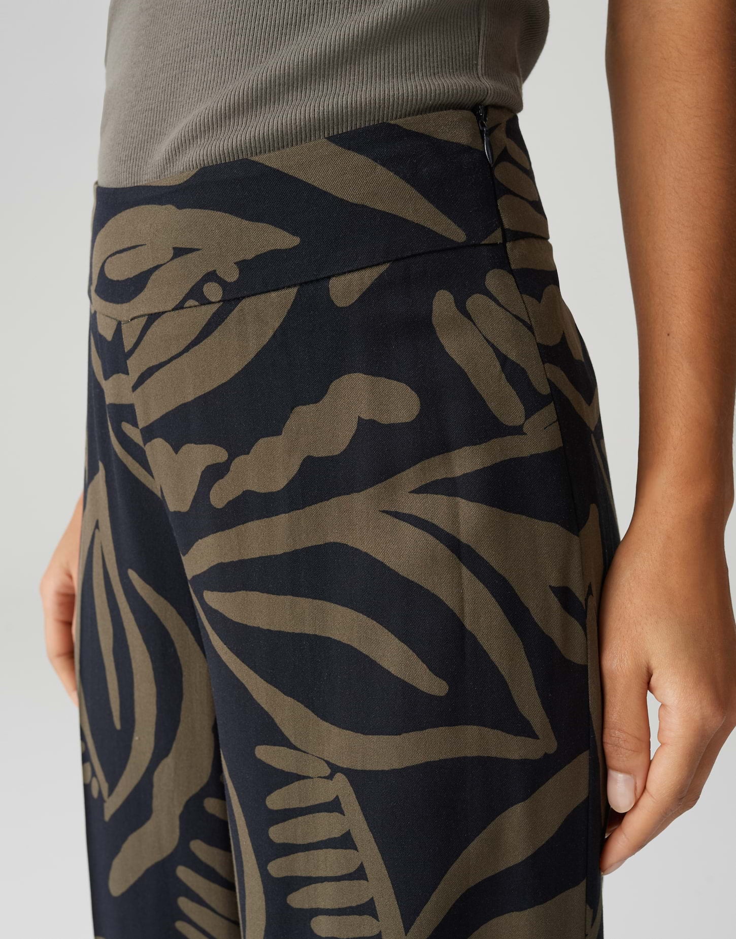 weit am Oberschenkel, weiter, gerader Beinverlauf, Hosenbein Innenlänge ca. 63 cm in jeder Größe, Model Größe 175 cm – trägt Größe 36, Webware, glatter Griff, weich fließender Fall, atmungsaktiv, floraler Print, Reißverschluss in der Seite