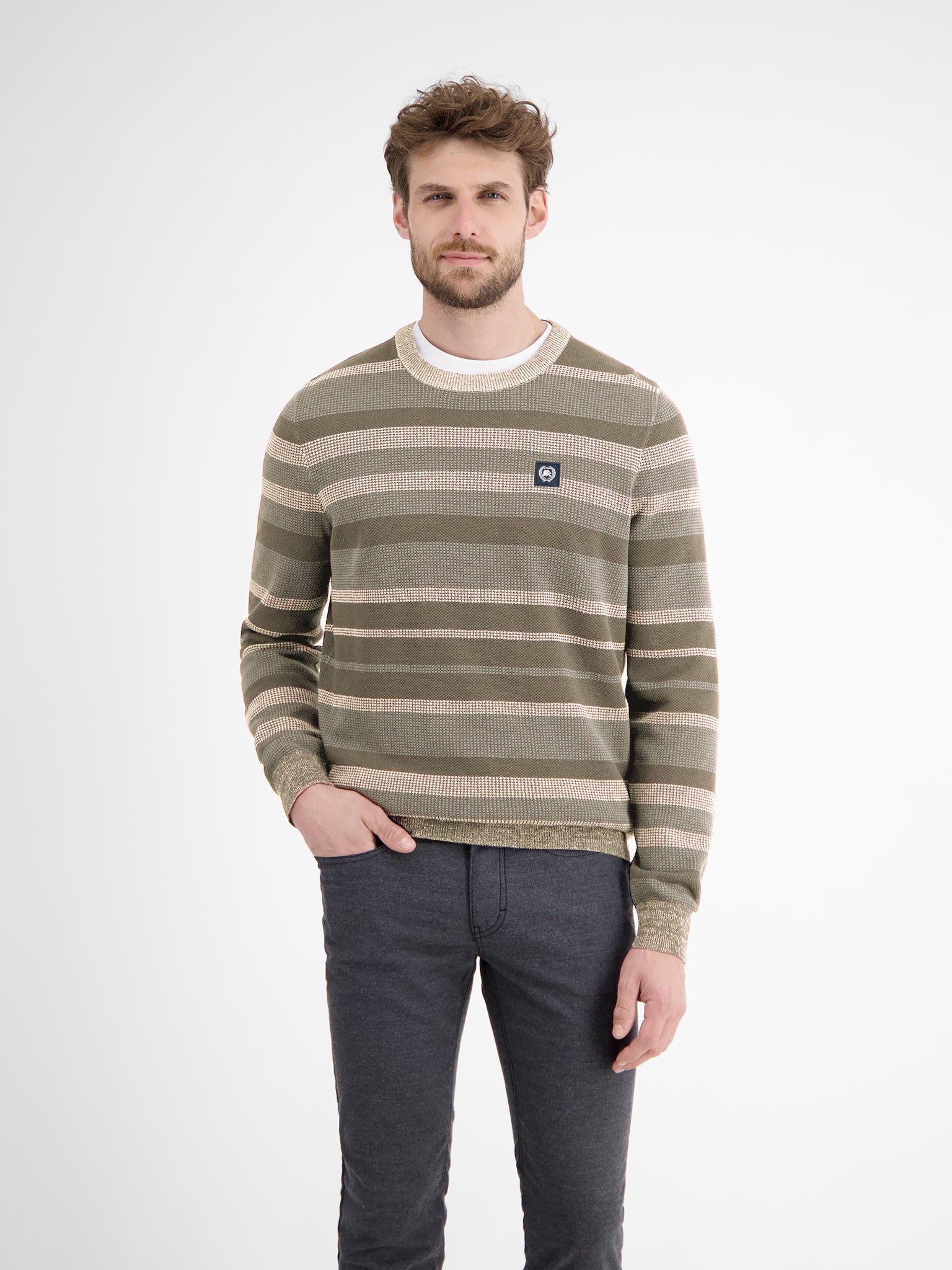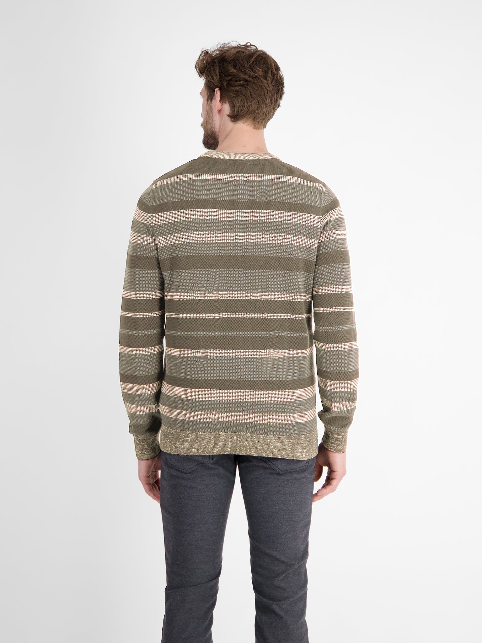 LERROS Herren Strickpullover mit Streifen, der sich durch seinen hochwertigen Strukturstrick und klassischen Rundhalsausschnitt auszeichnet. Dieser Pullover ist nicht nur ein modisches Highlight, sondern bietet auch höchsten Tragekomfort. Zudem lässt er sich durch sein schlichtes, zeitloses Design in jedes Outfit integrieren.