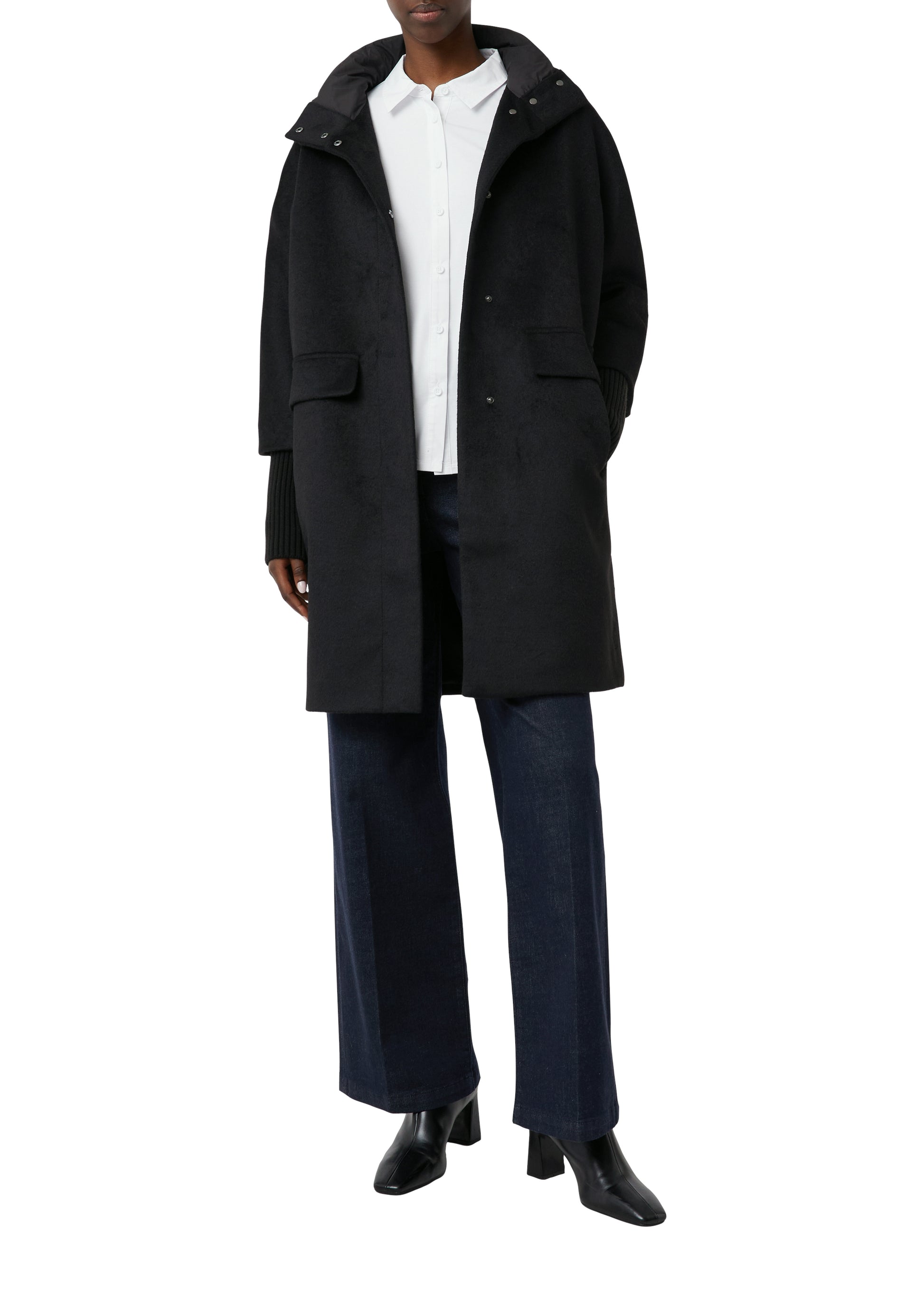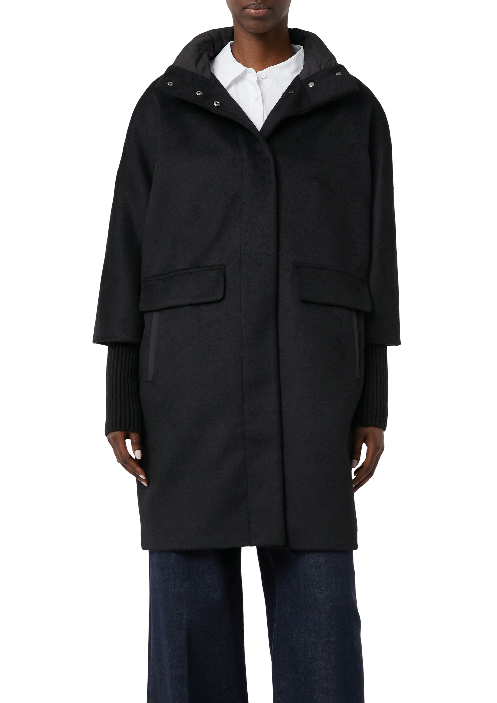 Vielseitiges Essential für Ihre Herbst- und Wintergarderobe: unser Mantel aus Wollmix. Sein kuscheliges Twillfutter und der schützende Stehkragen bieten leichte Wärme für Outdoor-Aktivitäten. Die Loose-Fit-Passform ermöglicht bequemes Layering, während Pattentaschen und Leistentaschen praktischen Stauraum bieten. Die verdeckte Knopfleiste und der gerade Saum verleihen dem Mantel eine elegante Note.