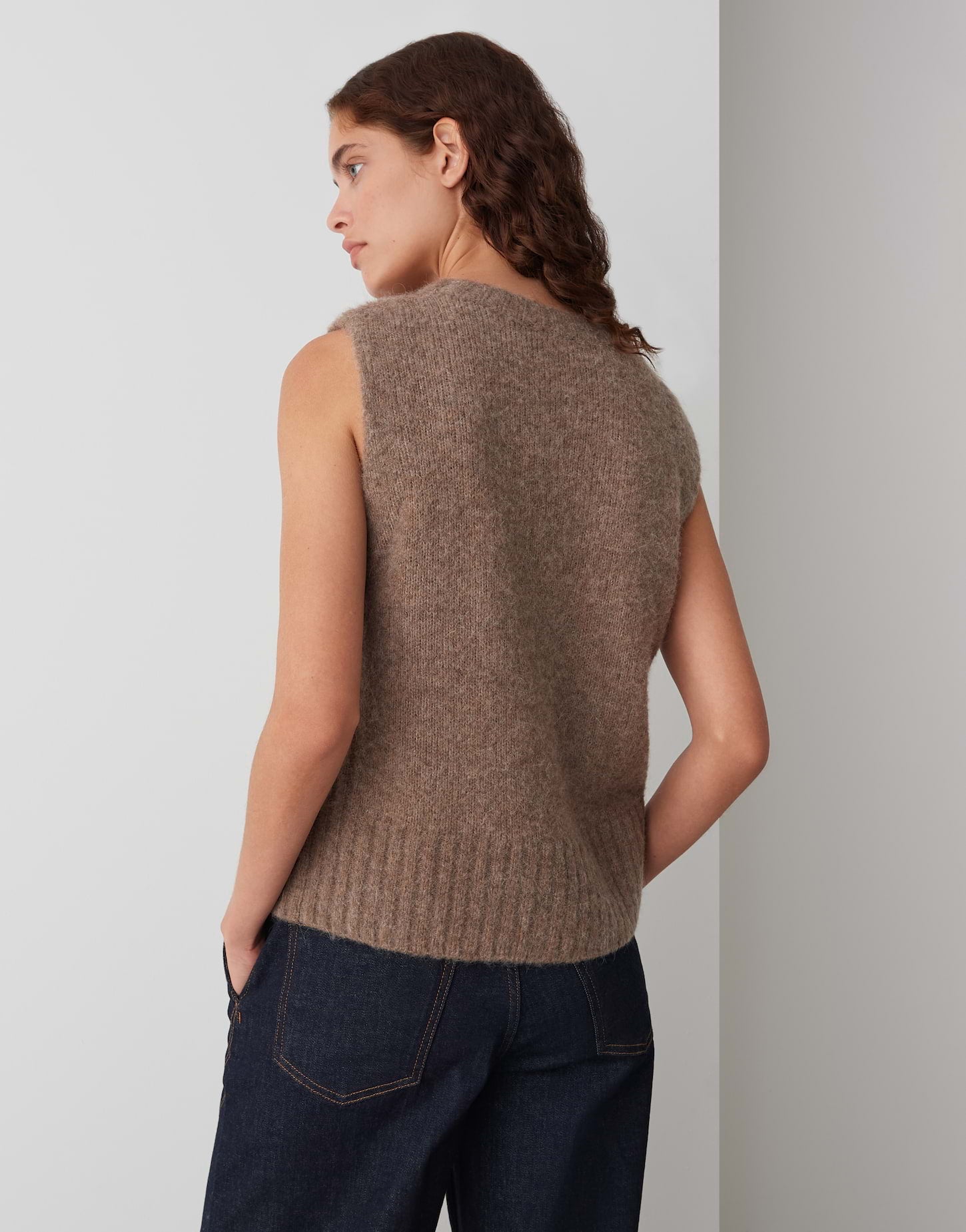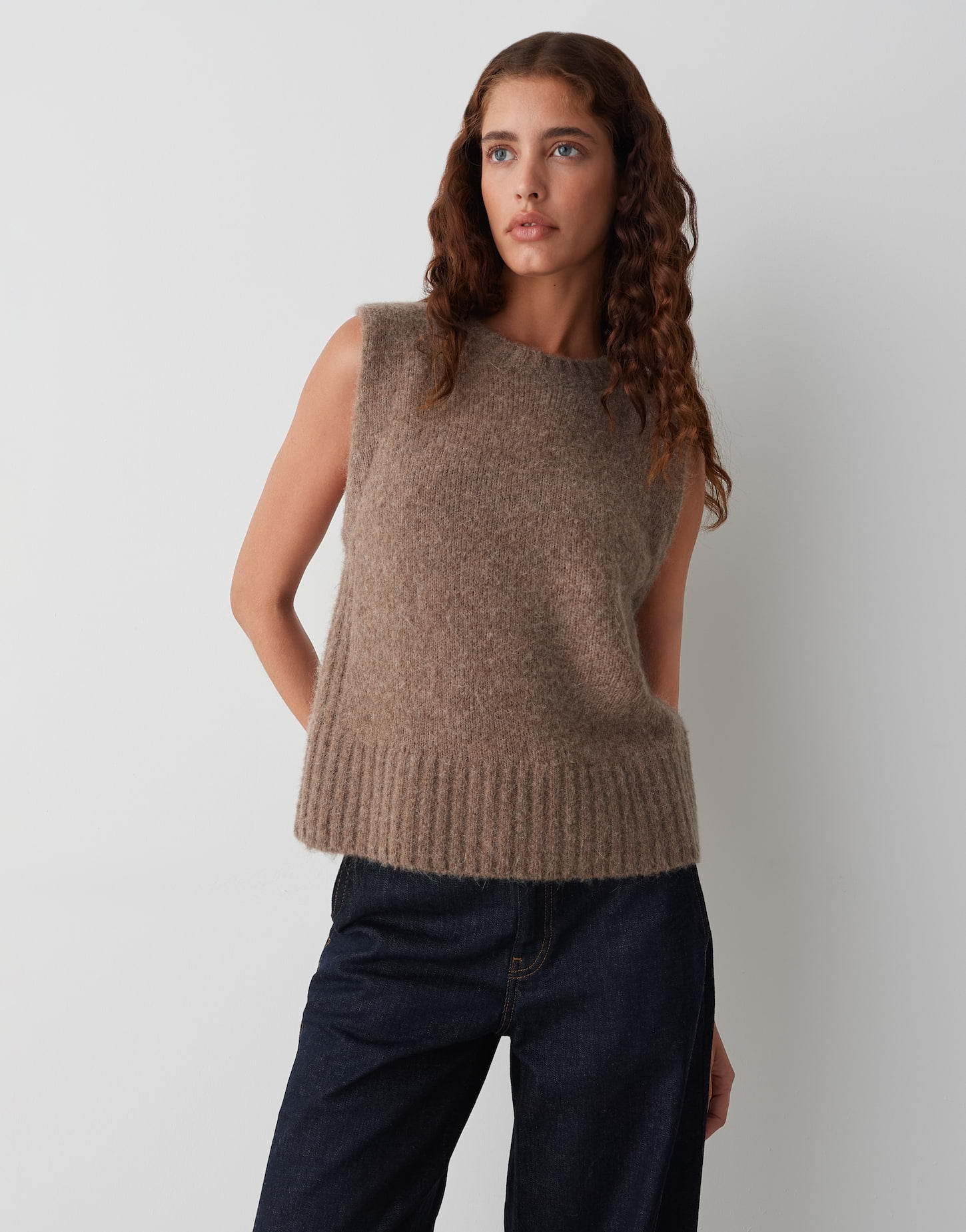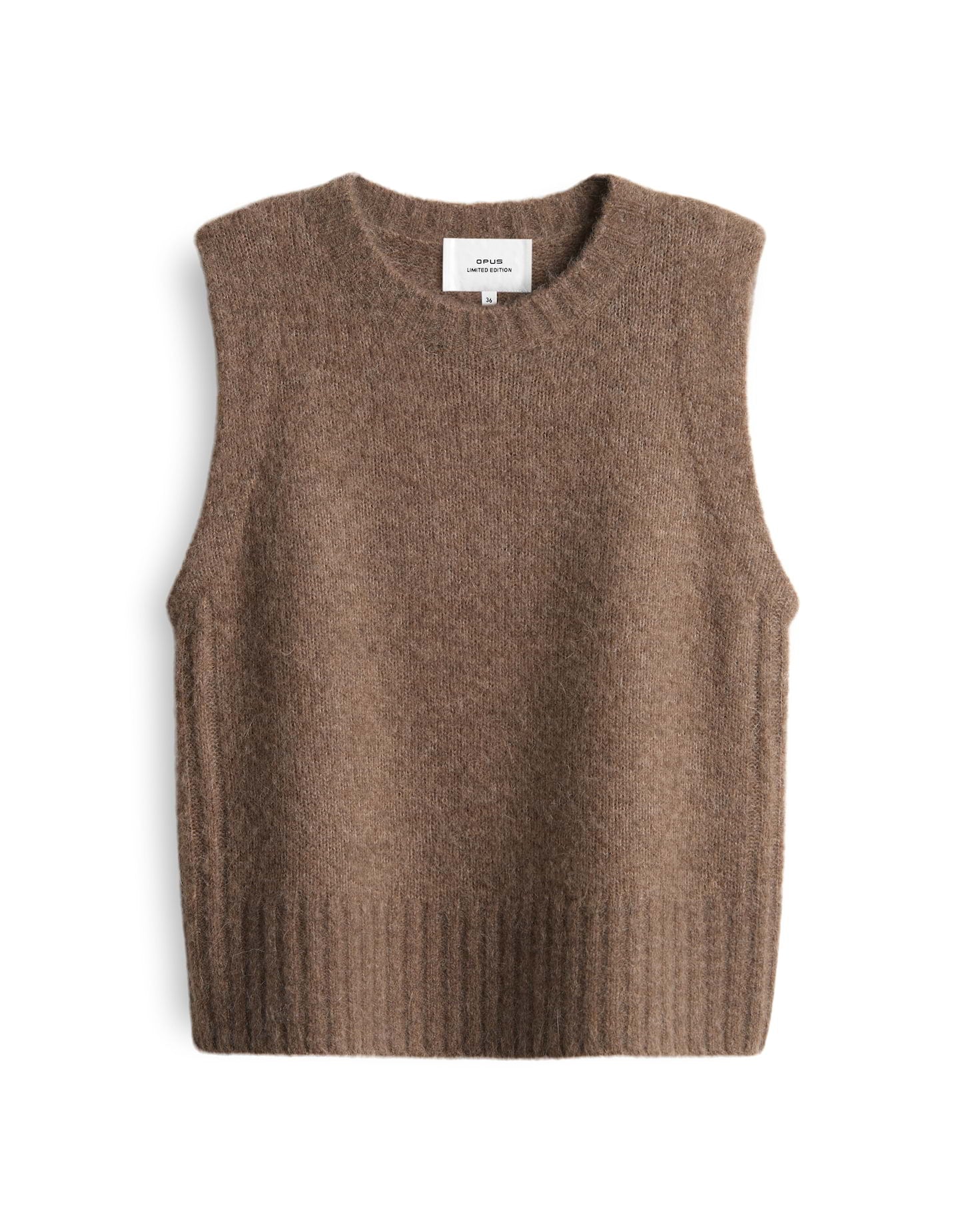 normale Passform, gerader Schnitt, ärmellos, Rundhalsausschnitt, Rückenlänge ca. 53 cm bei Größe 36, Model Größe 177 cm – trägt Größe 36, Feinstrick, weicher Griff, wärmend, Strickbündchen