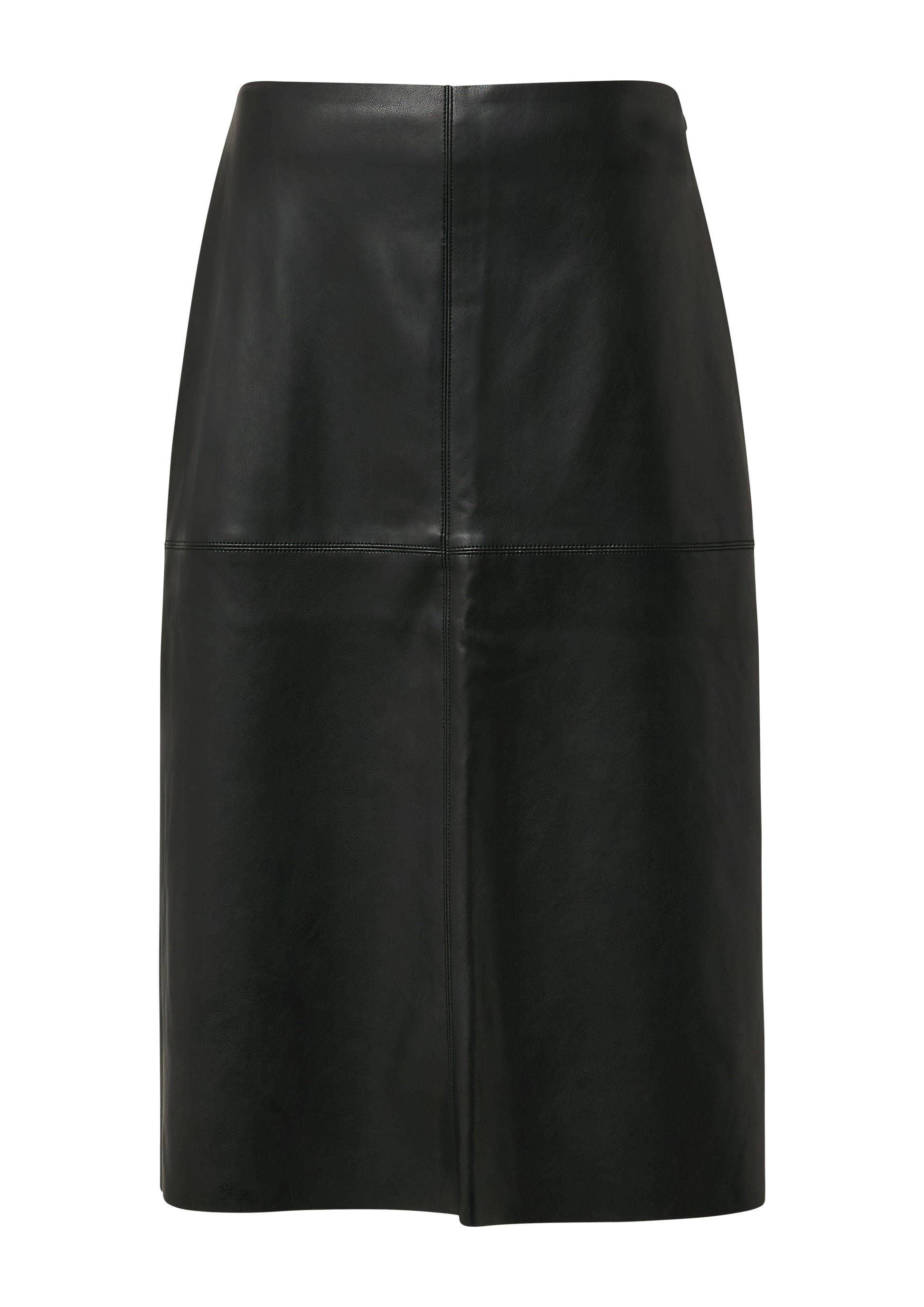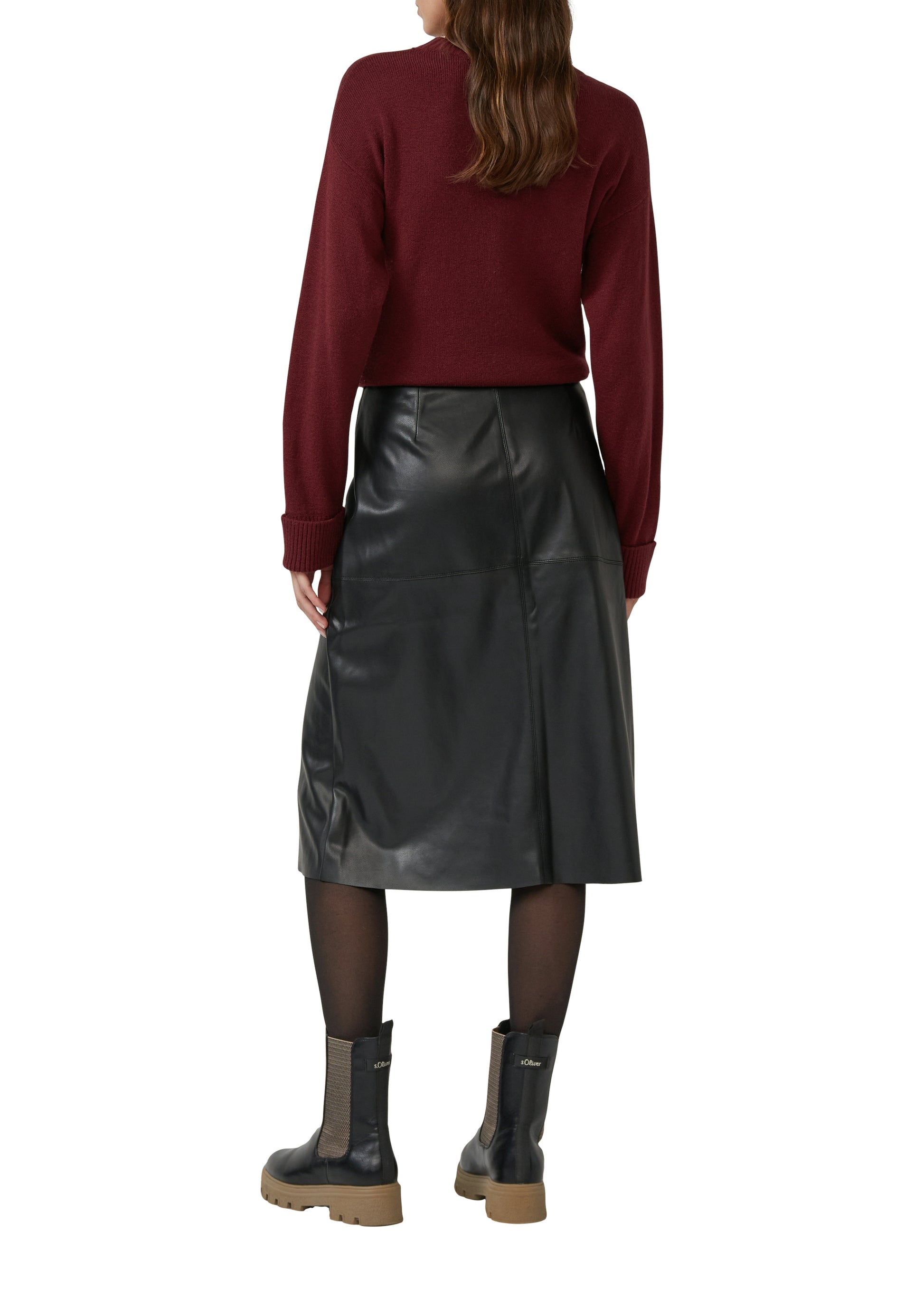 Dieser feminine Midi-Rock aus hochwertigem Kunstleder überzeugt durch seine elegante A-Linien-Silhouette. Mit mittlerer Bundhöhe und verdecktem Reißverschluss passt er perfekt zu deinem Alltags- und Business-Look.