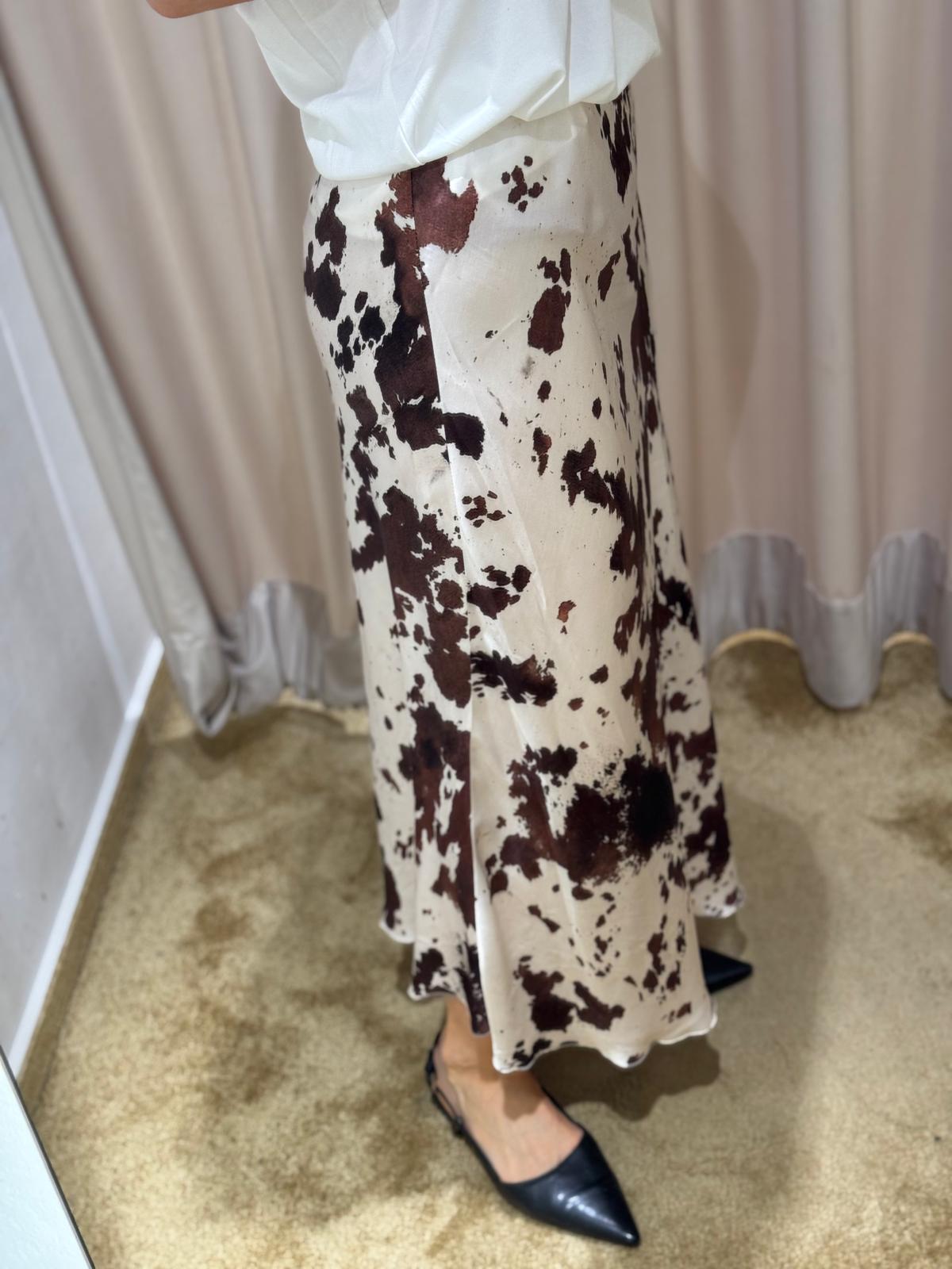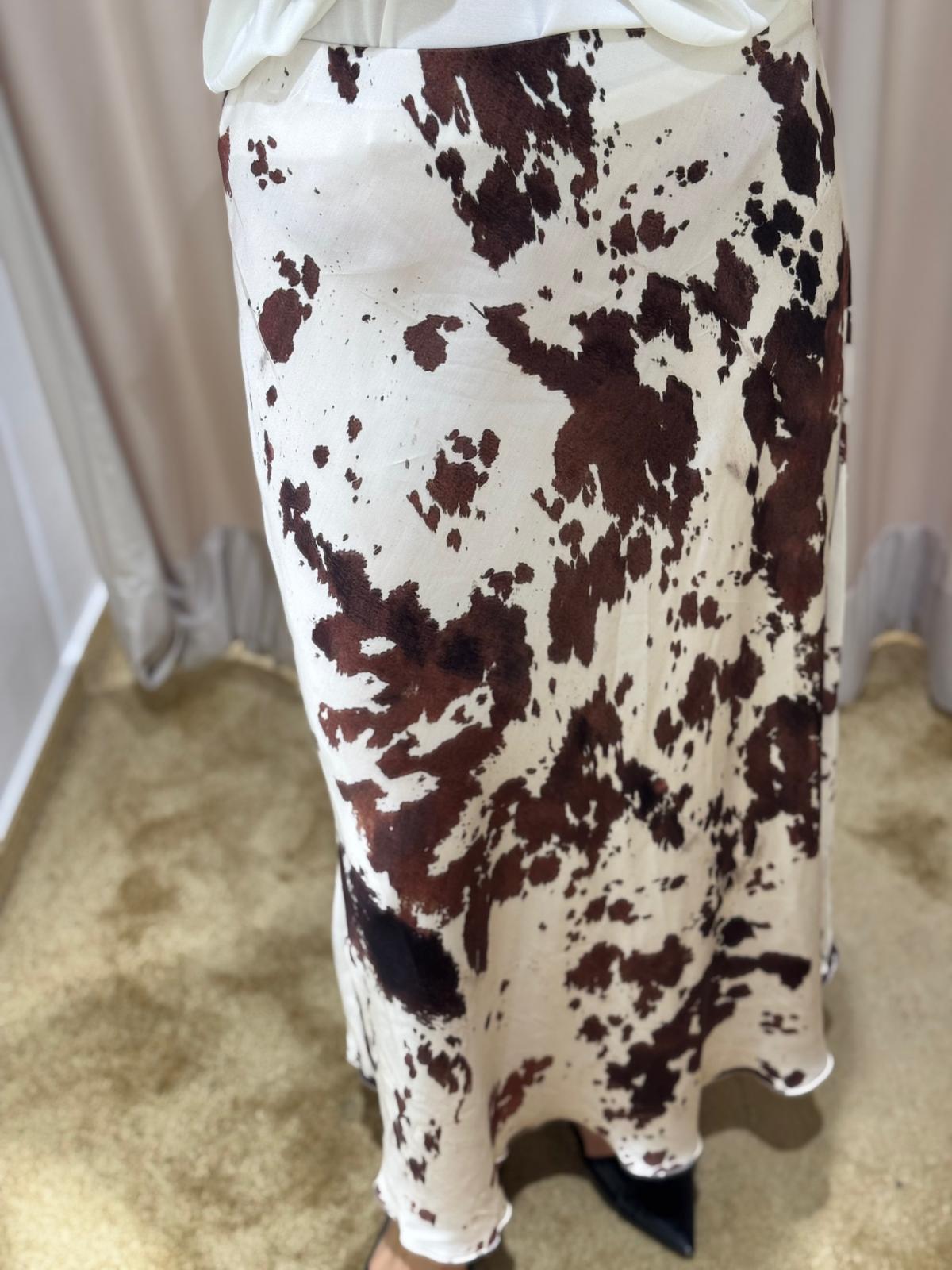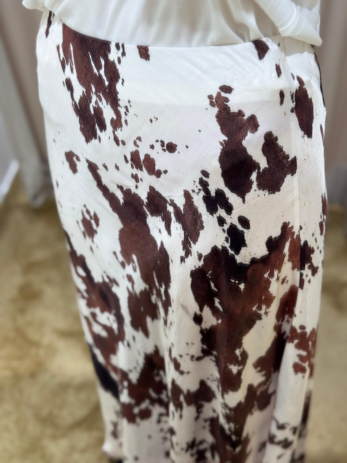 Bereit für einen wilden Sommer? Unser langer Rock im frechen Kuhmuster bringt frischen Wind in deine Garderobe! Das angesagte Kuhmuster ist nicht nur ein echter Eyecatcher, sondern schmiegt sich mit seinem fließenden Schnitt auch traumhaft an deine Silhouette. One Size - passt sich dir an, nicht umgekehrt!