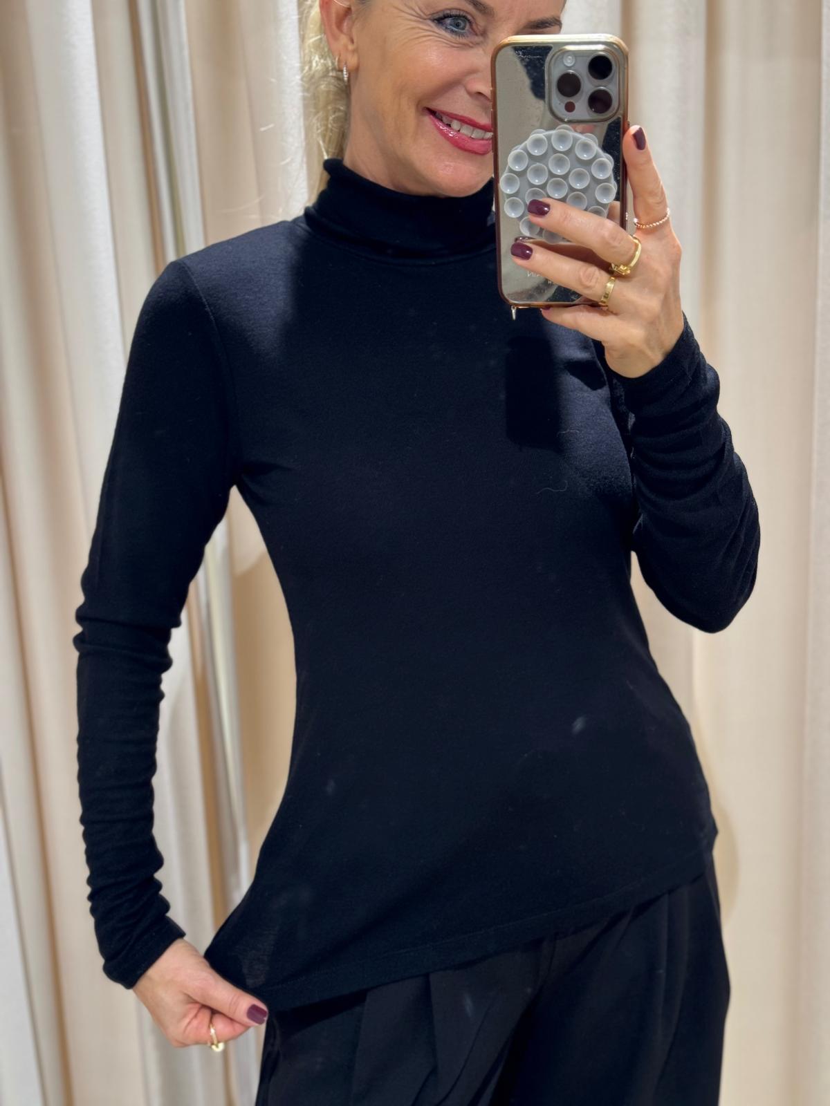 Schlicht, edel und unverzichtbar – dieses schwarze Rollkragen-Shirt sitzt weich und bequem auf der Haut. Mit seiner schmalen Passform ist es der ideale Begleiter für kühle Tage und lässt sich vielseitig stylen – vom lässigen Alltagslook bis zum eleganten Auftritt.