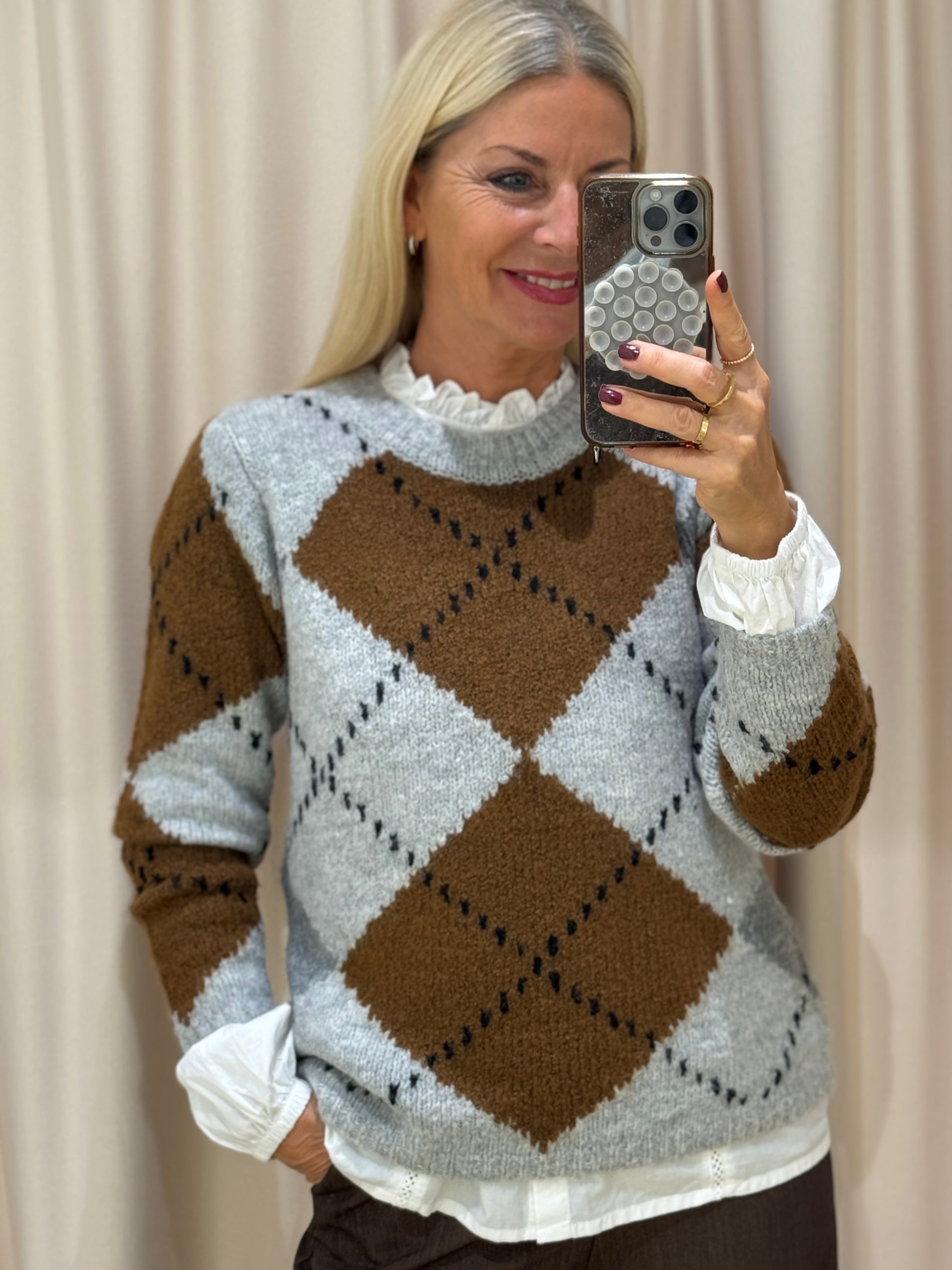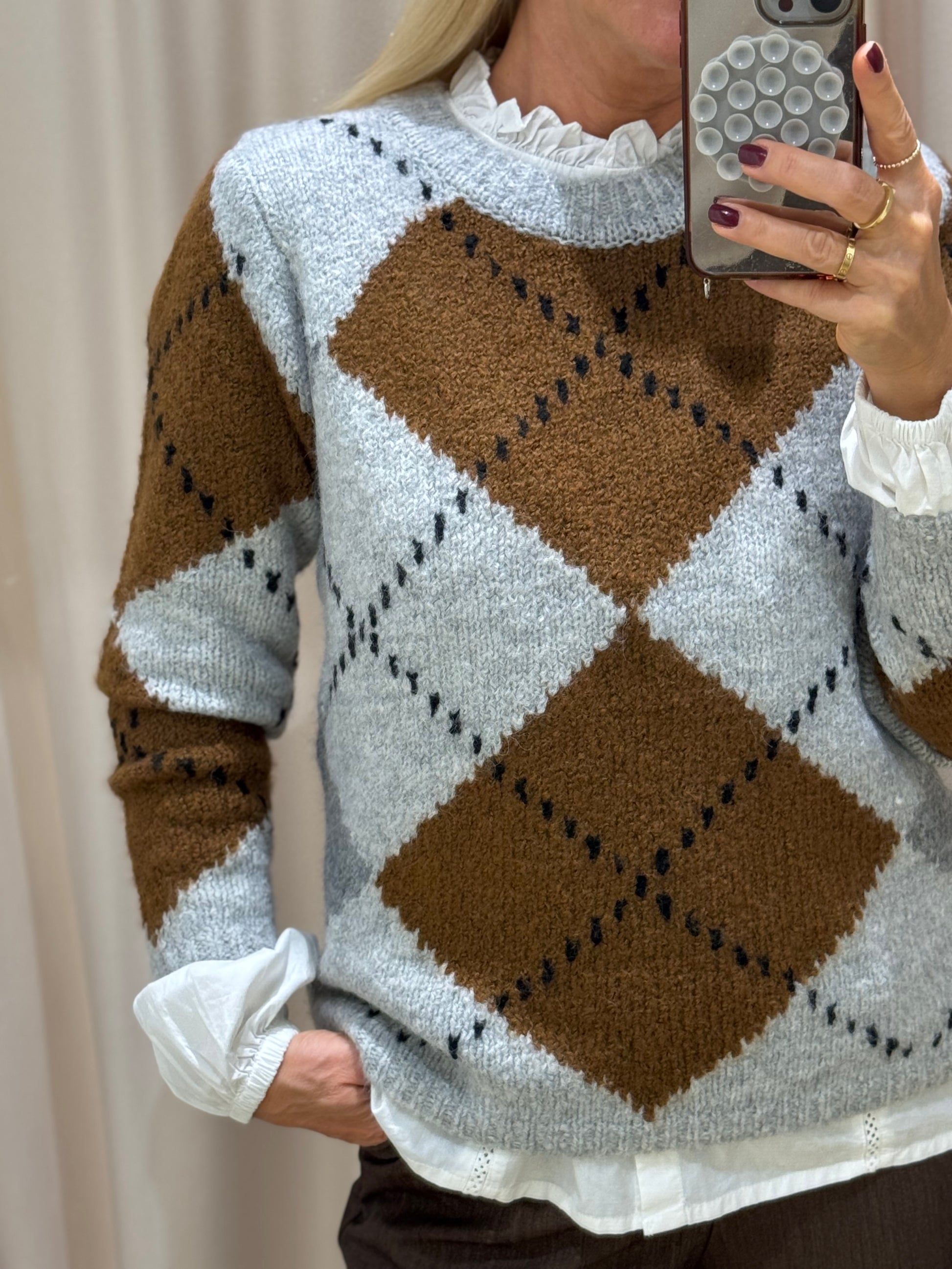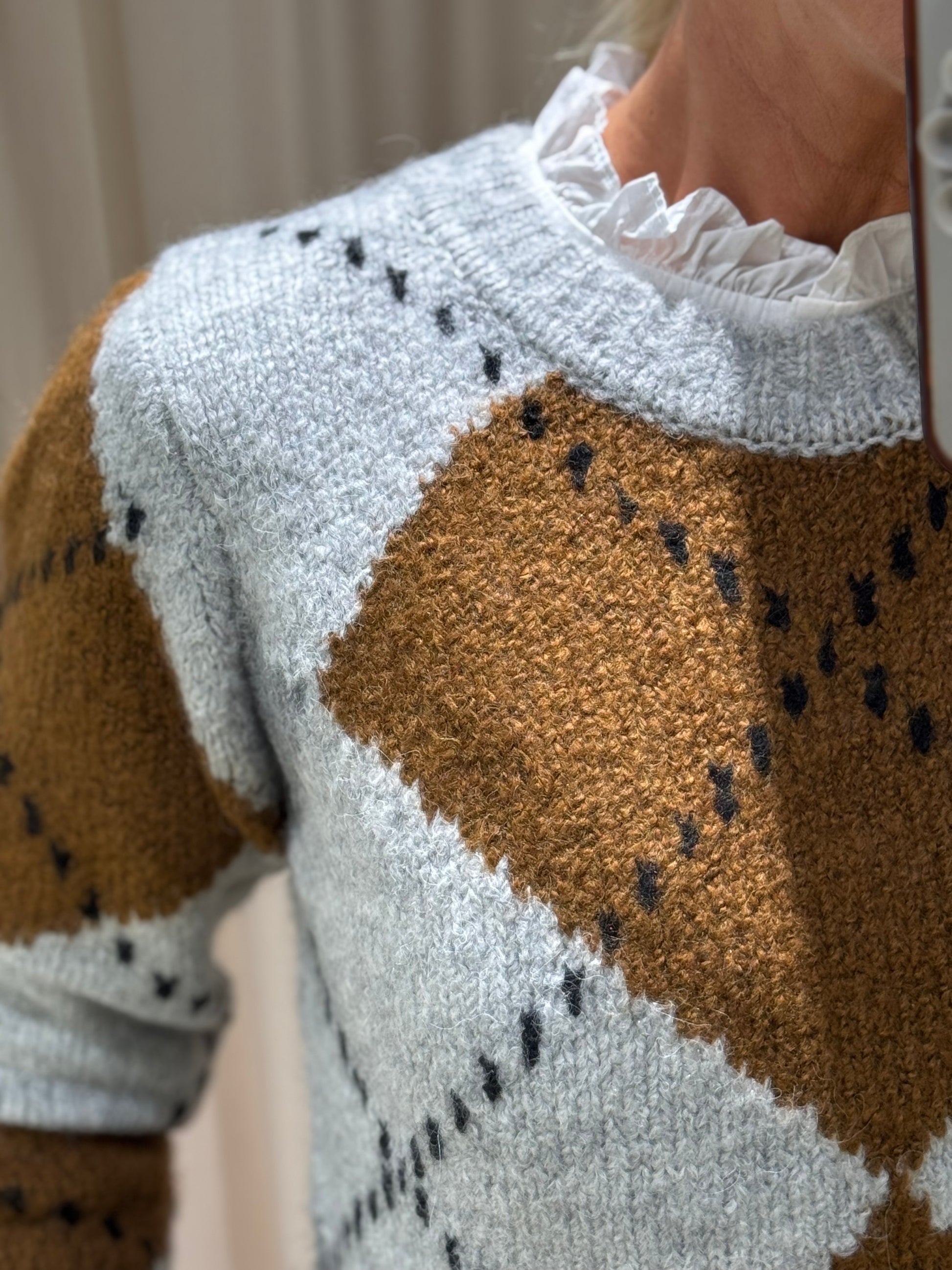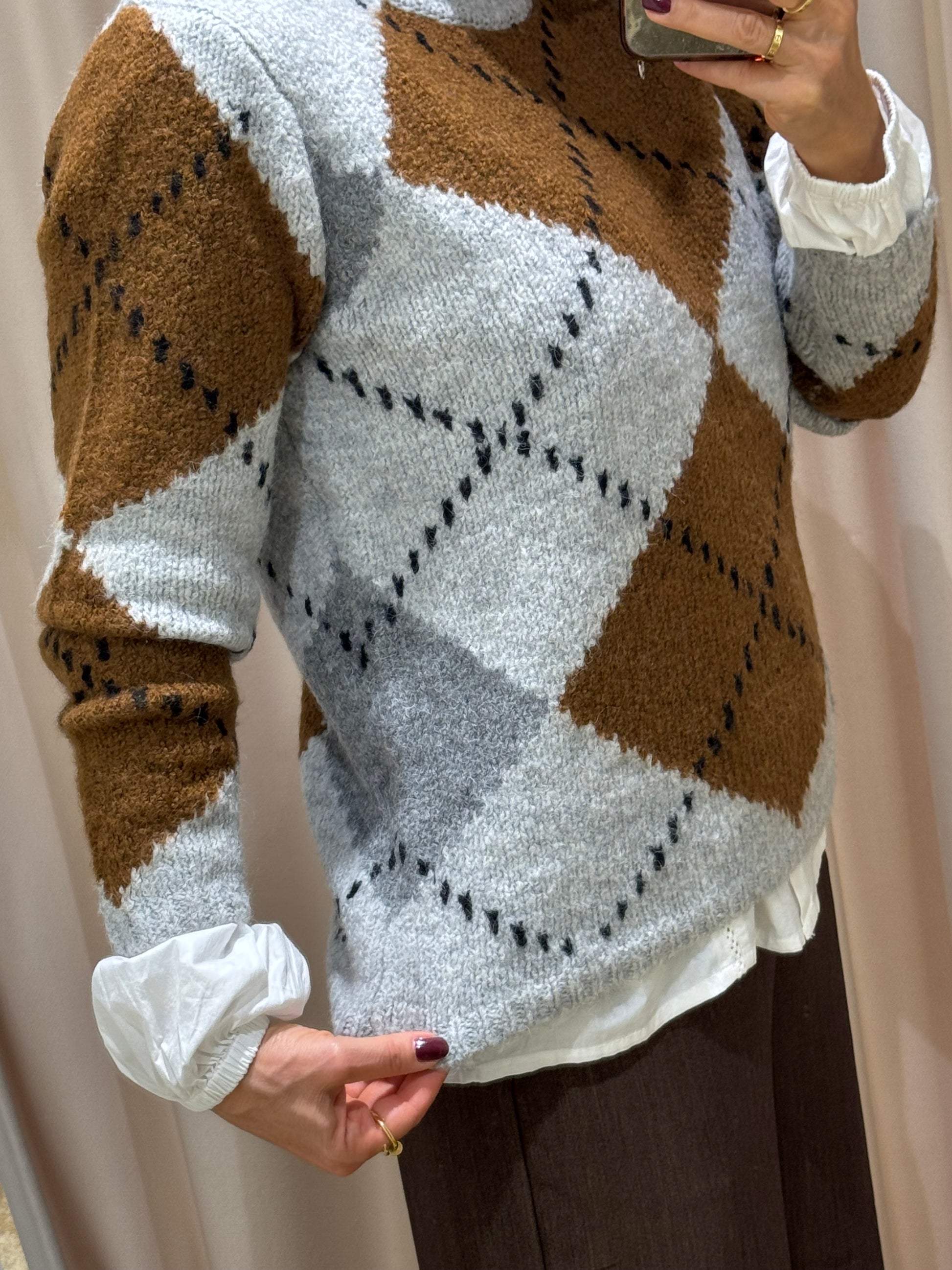 Der SC-ACACIE 1 Pullover ist aus 57% Acryl, 21% recyceltem Polyester, 11% Wolle, 9% Nylon und 2% Elastan gefertigt. Der Pullover hat einen kuscheligen Rundhalsausschnitt und ein klassisches Argyle-Muster und bietet eine entspannte Passform. Er lässt sich elegant mit maßgeschneiderten Hosen für einen raffinierten Look oder mit Jeans für einen lässigen, alltäglichen Stil kombinieren.