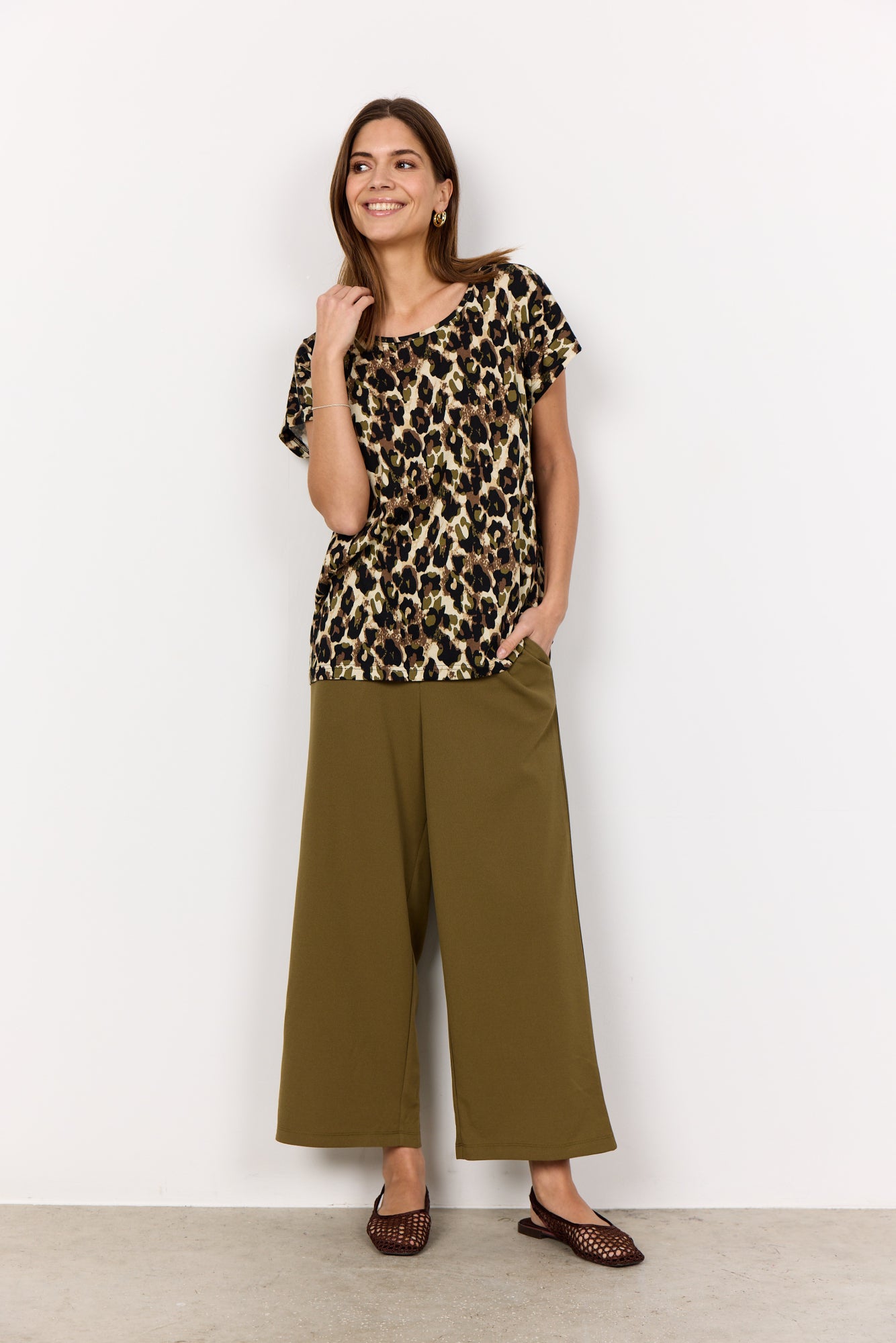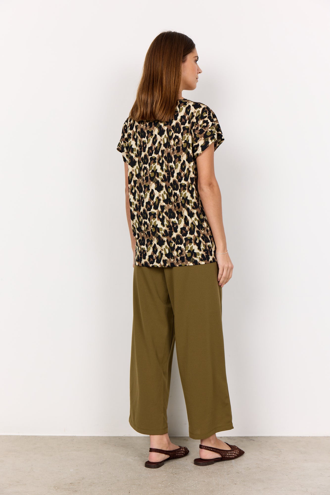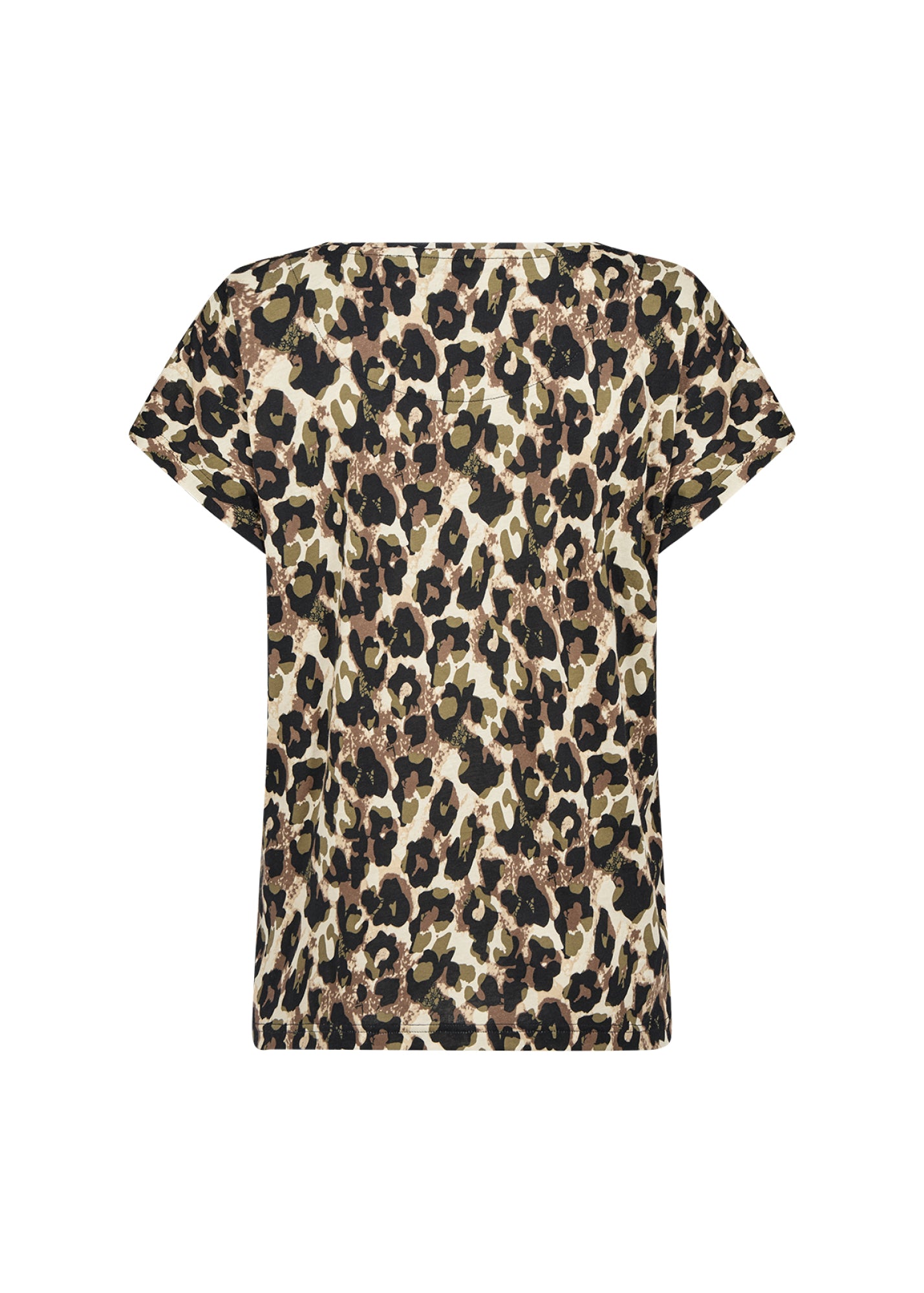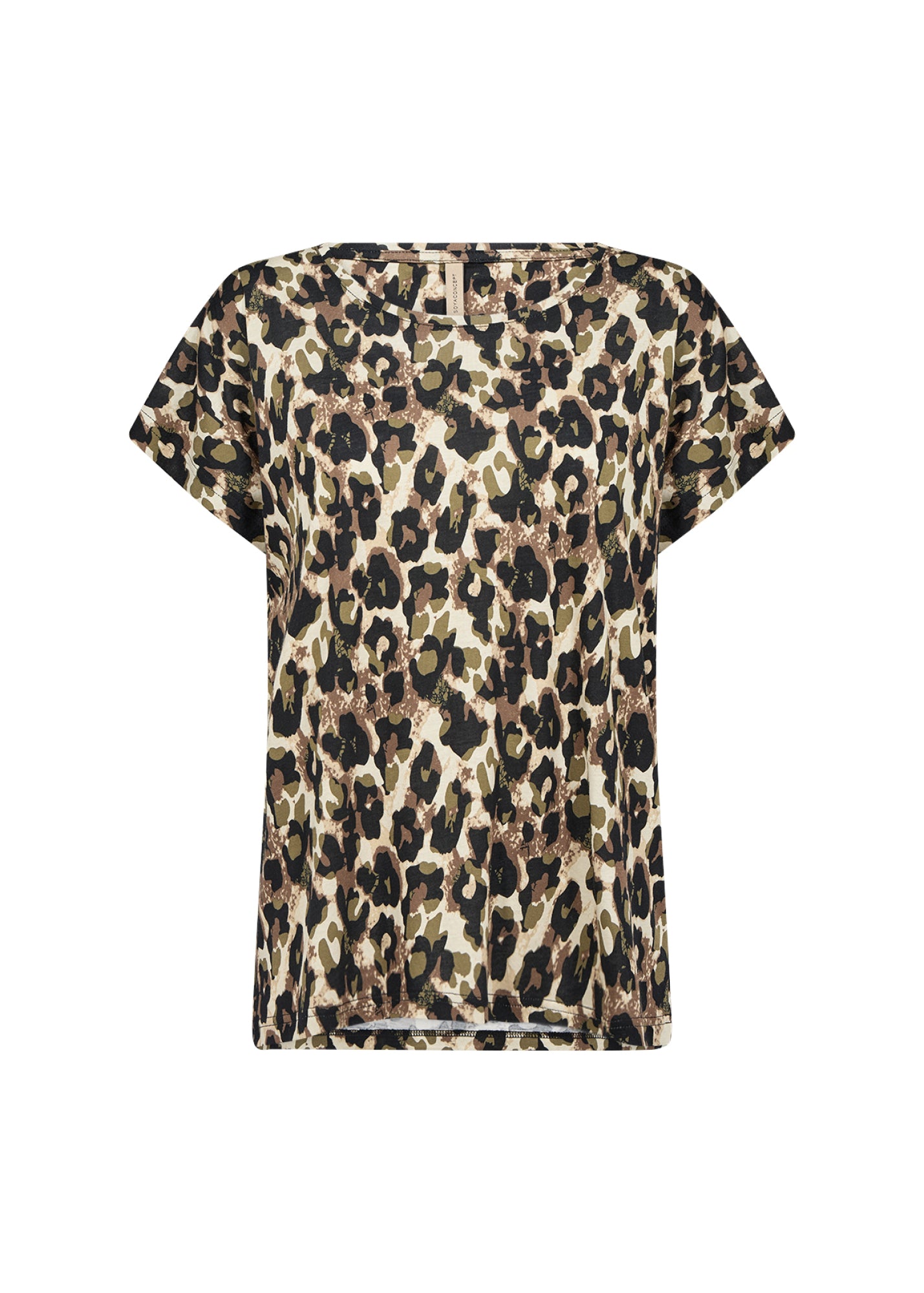 SC-FELICITY AOP 515 ist ein T-Shirt aus 50% Bio-Baumwolle und 50% Viskose. Es hat einen Rundhalsausschnitt, kurze Ärmel und einen auffälligen Leopardenprint. Kombiniere es mit Jeans oder einem Rock für einen entspannten und stilvollen Look.