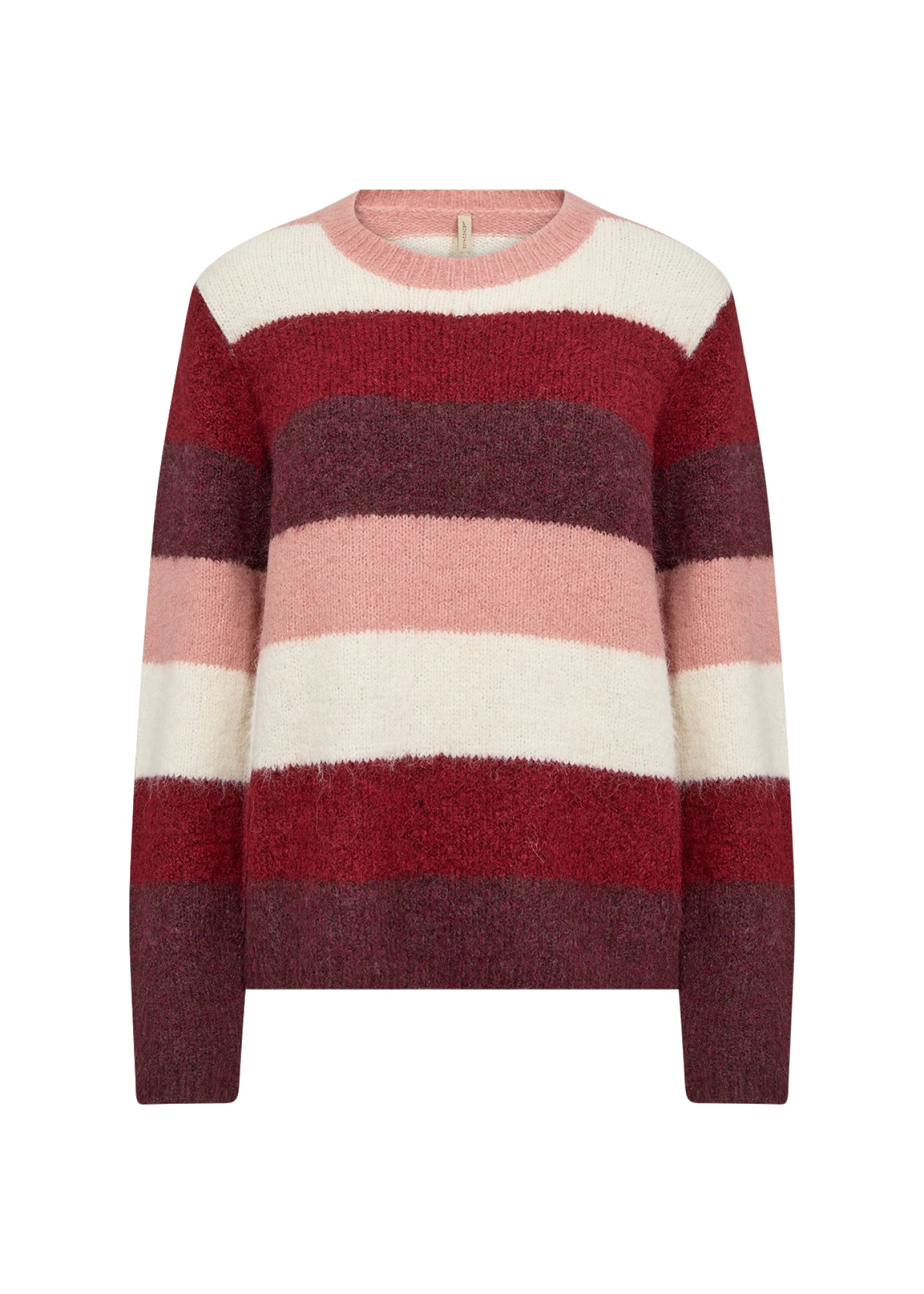 Der SC-ILENE 3 Pullover besteht aus 59% recyceltem Polyester, 21% Nylon, 11% Polyester, 8% Wolle und 1% Elasthan. Der Pullover hat einen Rundhalsausschnitt und breite, horizontale Streifen in wechselnden Farbtönen. Kombiniere ihn mit Jeans für einen entspannten Look oder trage ihn über einem Hemd mit Kragen für zusätzliche Textur.