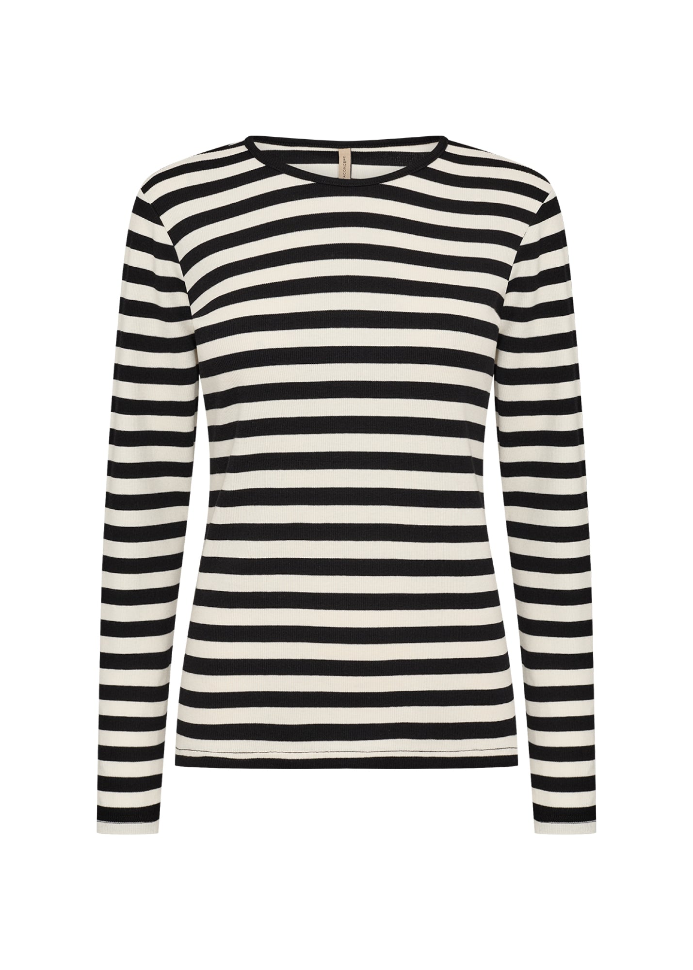 SC-Irdi 1 ist ein lässiges Langarm-T-Shirt aus einer angenehmen Mischung aus Bio-Baumwolle und Elastan. Das T-Shirt hat einen Rundhalsausschnitt, lange Ärmel, eine normale Passform und einen Streifenprint. Kombinieren Sie es mit einem langen Rock und einem Blazer für einen modischen Alltagslook.