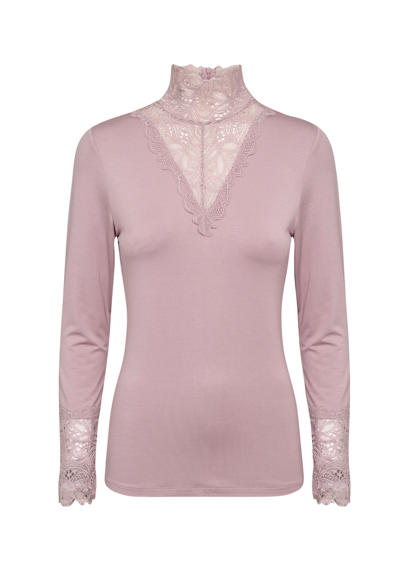 SC-Marica 20 ist ein feminines Langarm-T-Shirt in schöner Lyocell- und Elasthan-Qualität. Das langärmlige T-Shirt hat einen Spitzenkragen und Manschetten und einen V-Ausschnitt. Kombiniere es mit einem hübschen Rock oder unter einem Blazer.
