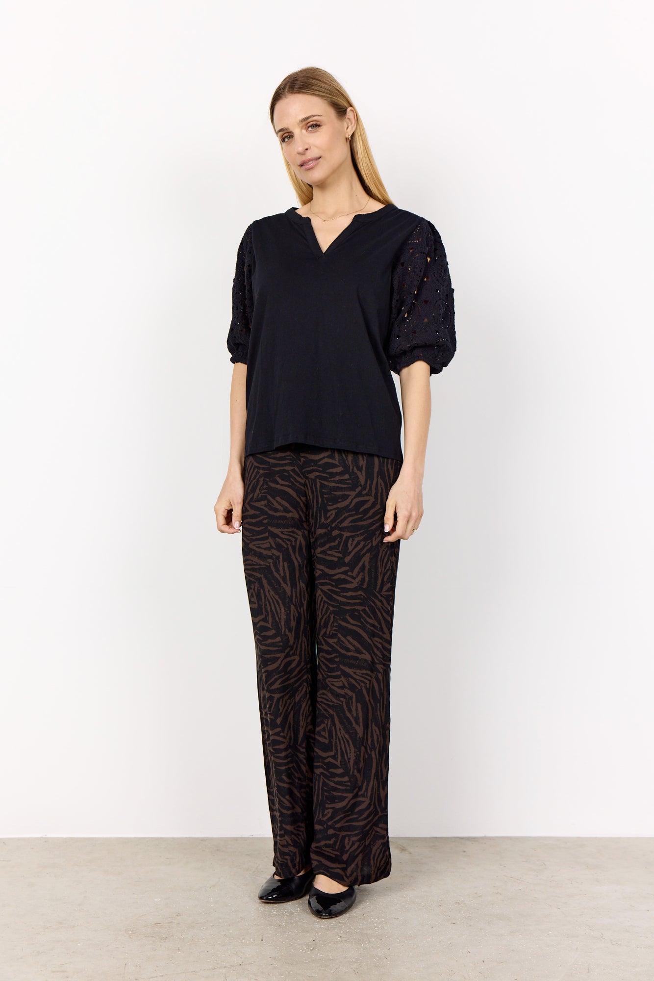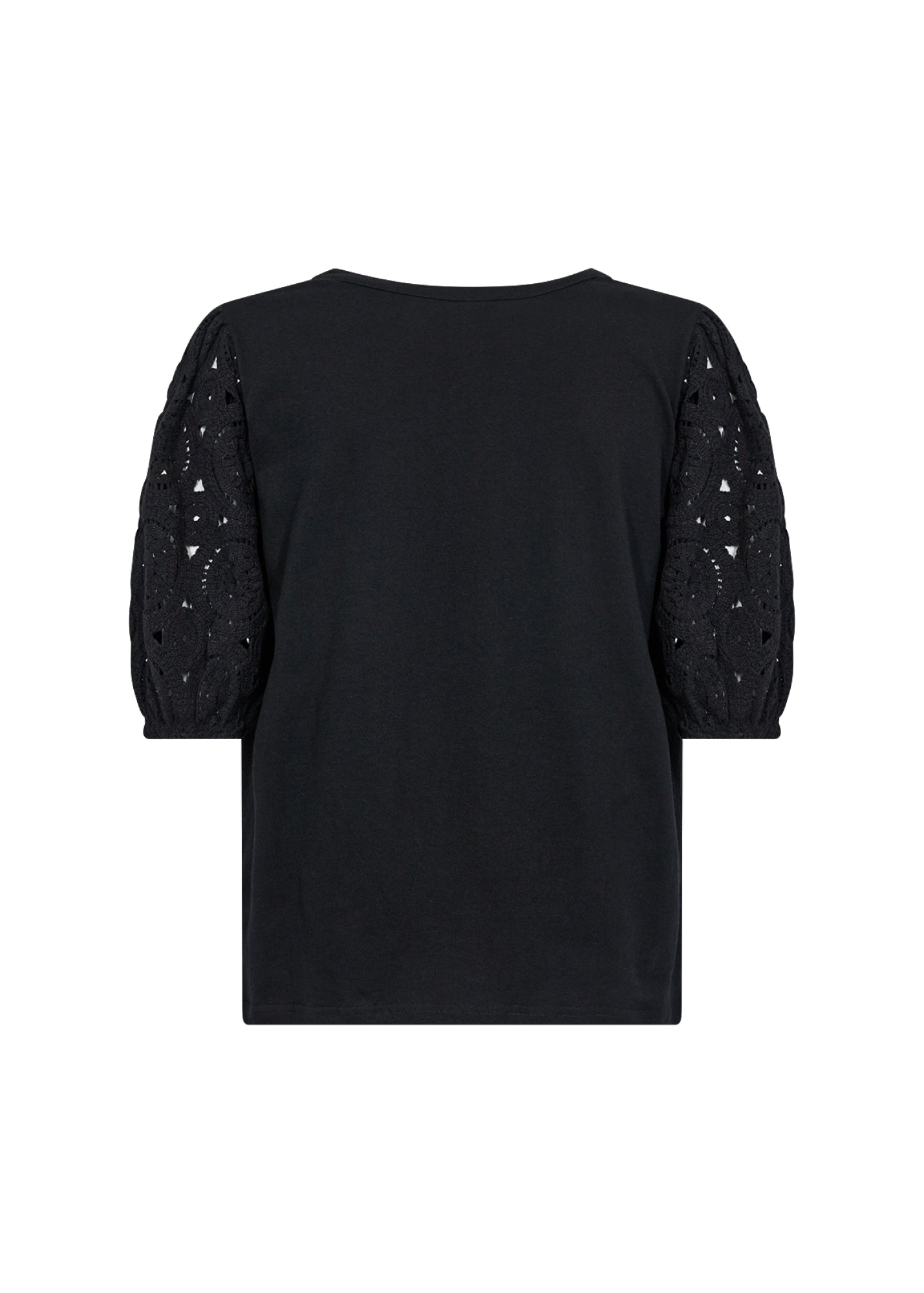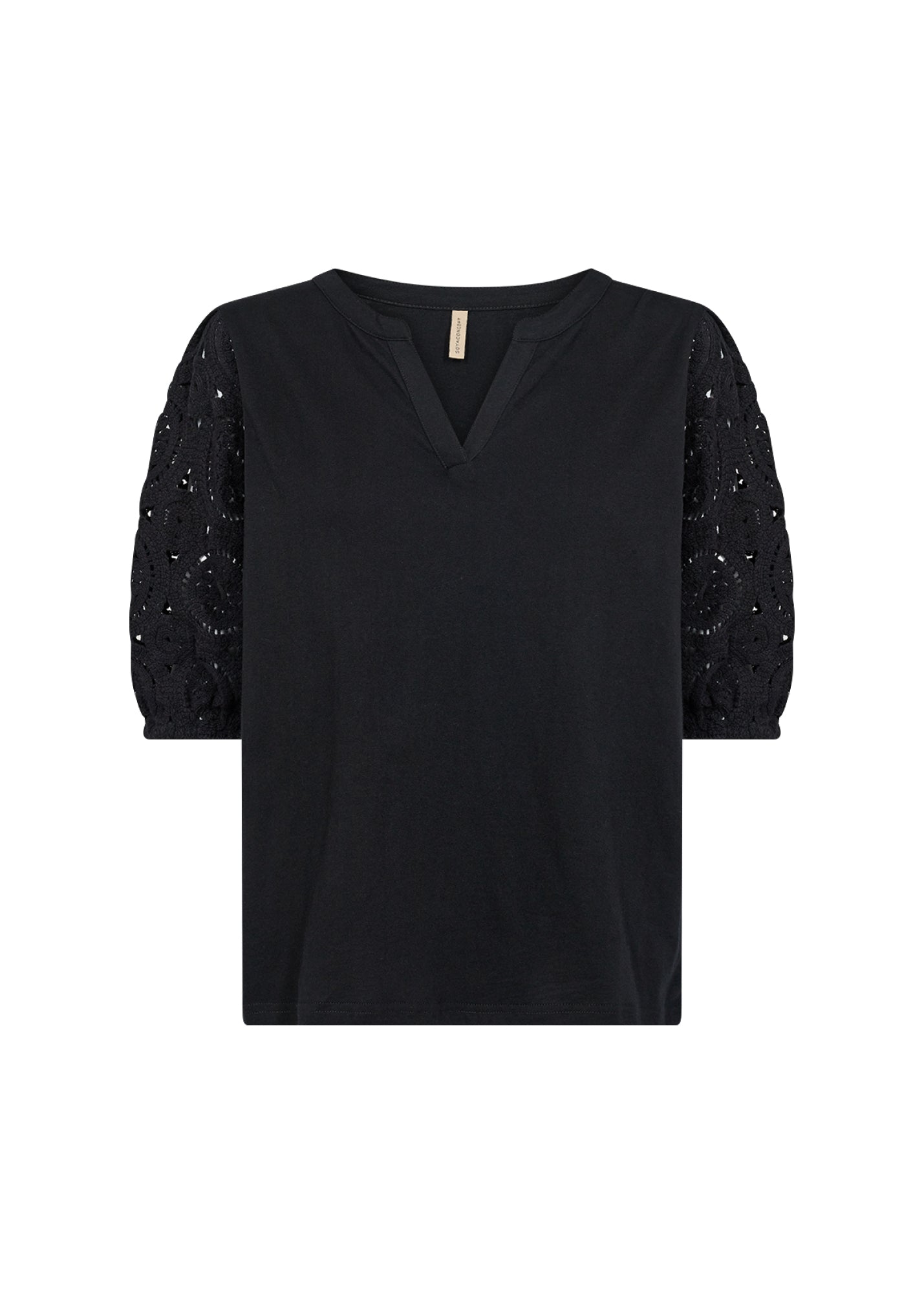 Das SC-SHENA 2 T-Shirt ist aus 100 % Bio-Baumwolle gefertigt. Es hat zarte Spitzendetails an den Ärmeln und einen dezenten V-Ausschnitt. Kombiniere es mit Jeans oder Röcken für einen entspannten Look.