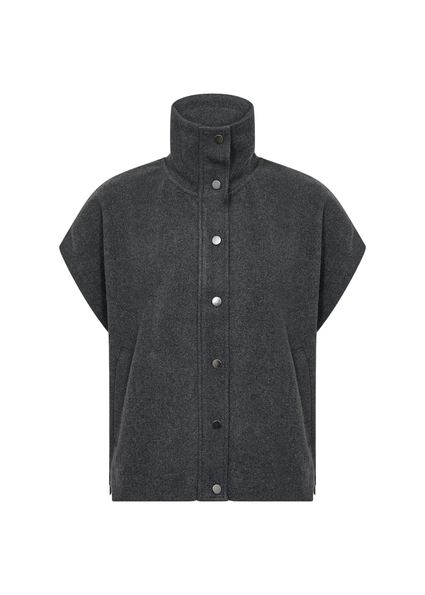 Die Weste von SC-VAGNA 1 ist aus 90% recyceltem Polyester und 10% Wolle gefertigt. Der hohe Stehkragen mit Knopfleiste verleiht ihr einen strukturierten Look, während der gerade Saum knapp über die Hüfte fällt. Kombiniere sie mit einer maßgeschneiderten Hose für einen raffinierten Auftritt oder tragen Sie sie über einem Rollkragenpullover für zusätzliche Wärme und Stil.