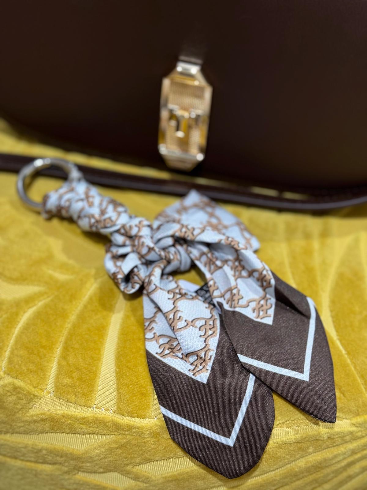 Das ist der kleine Keyring-Scarf – ein stylisches Extra, das perfekt zur Tasche passt.