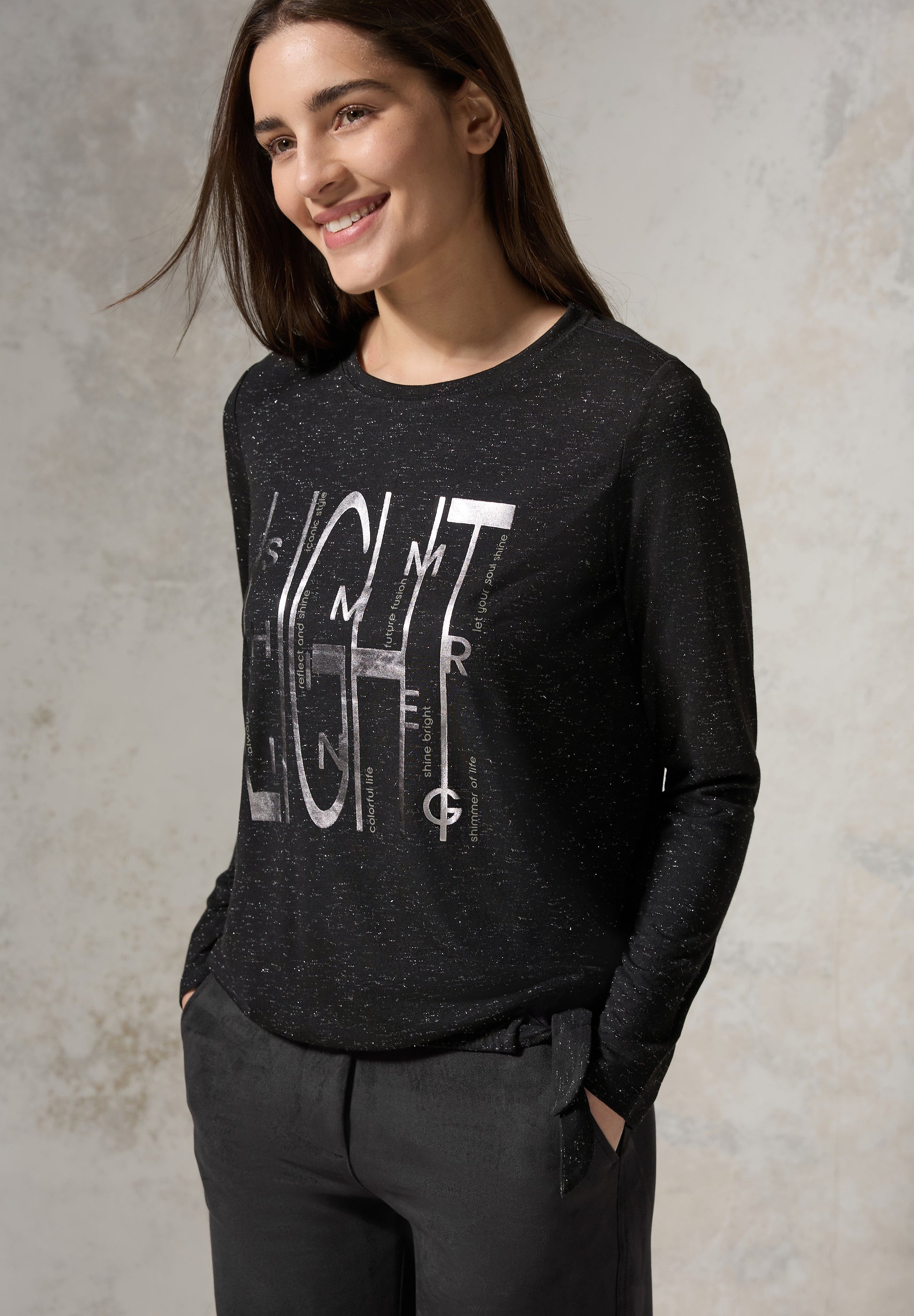 Dieses Shirt von CECIL für Damen beeindruckt mit einem schimmernden Artwork und einem raffinierten Knoten am Saum. Der Rundhalsausschnitt und die langen Ärmel bieten eine gemütliche Passform. Das weiche Material macht es zum perfekten Begleiter für modische Alltagslooks. Damenshirt Rundhalsausschnitt Langarm Knoten am Saum Schimmerndes Artwork Material: 54% Viskose, 45% Polyester, 1% Metallpolyester