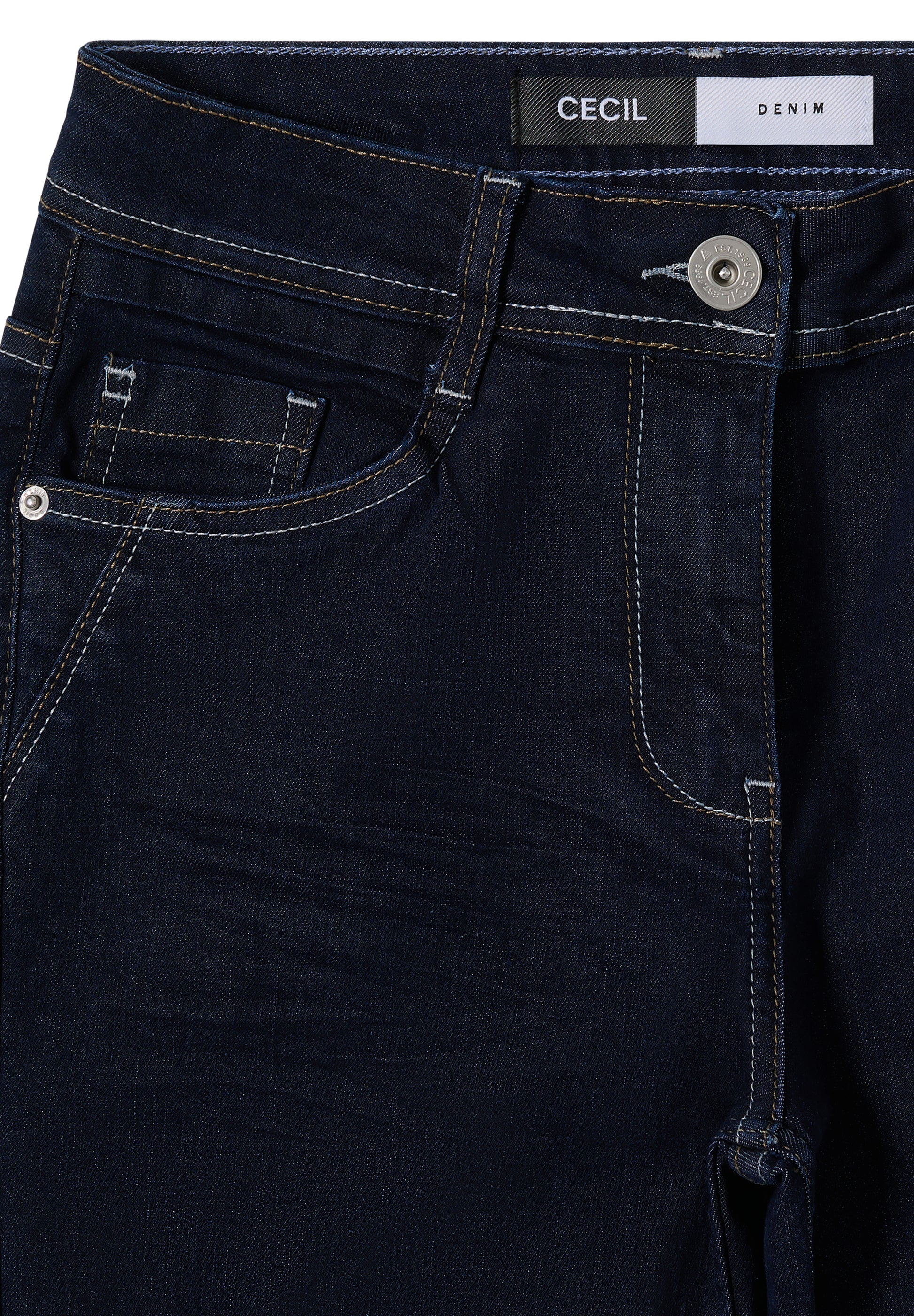 Die Jeans im Style Toronto von CECIL für Damen punktet mit Slim Fit, High Waist und geraden Straight Legs. Der Rinsed Look verleiht der Denim eine cleane Optik, während der Baumwollmix mit Stretchanteil für angenehme Bewegungsfreiheit sorgt. Der klassische 5-Pocket-Style rundet das Design ab. Jeanshose im Slim Fit High Waist und Straight Legs Rinsed Look 5-Pocket-Style Baumwollmix mit Stretchanteil Material: 69% Baumwolle, 29% Polyester, 2% Elasthan