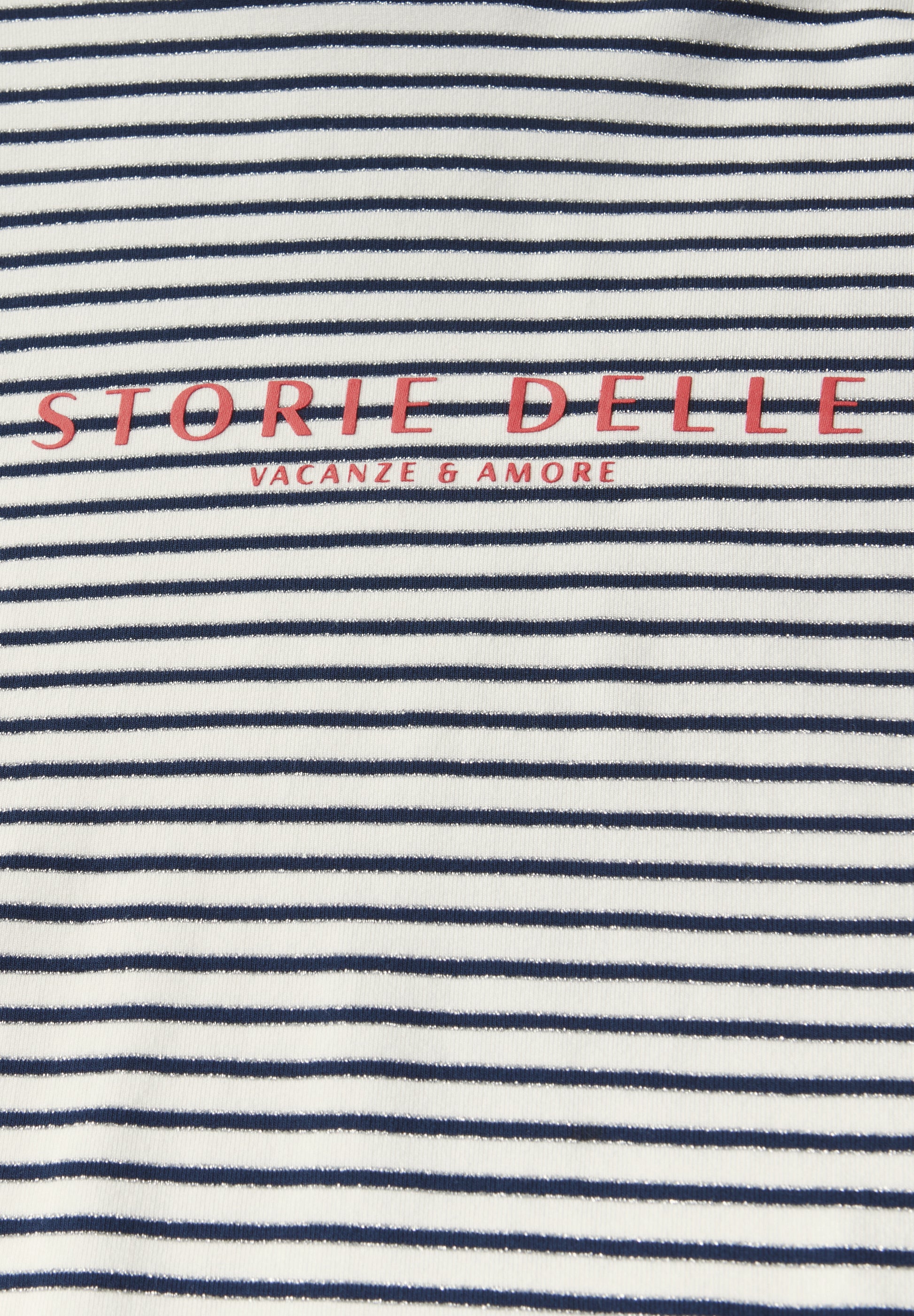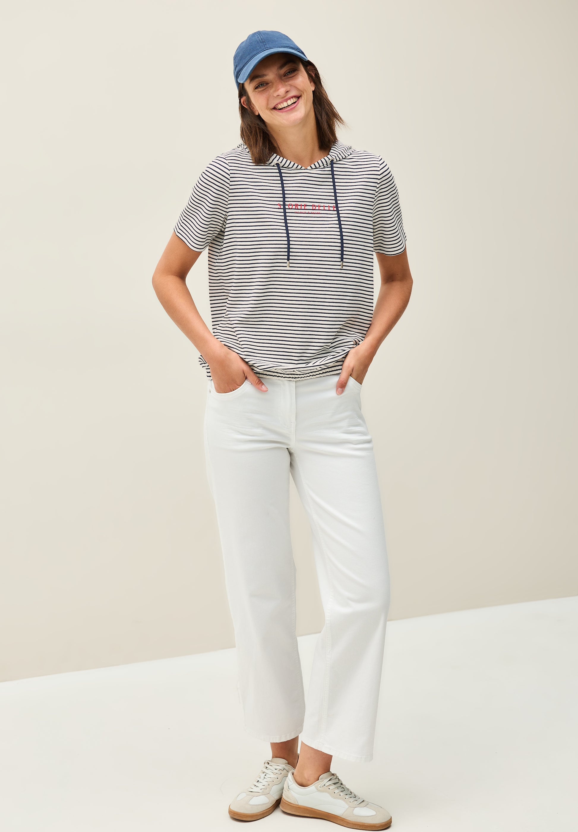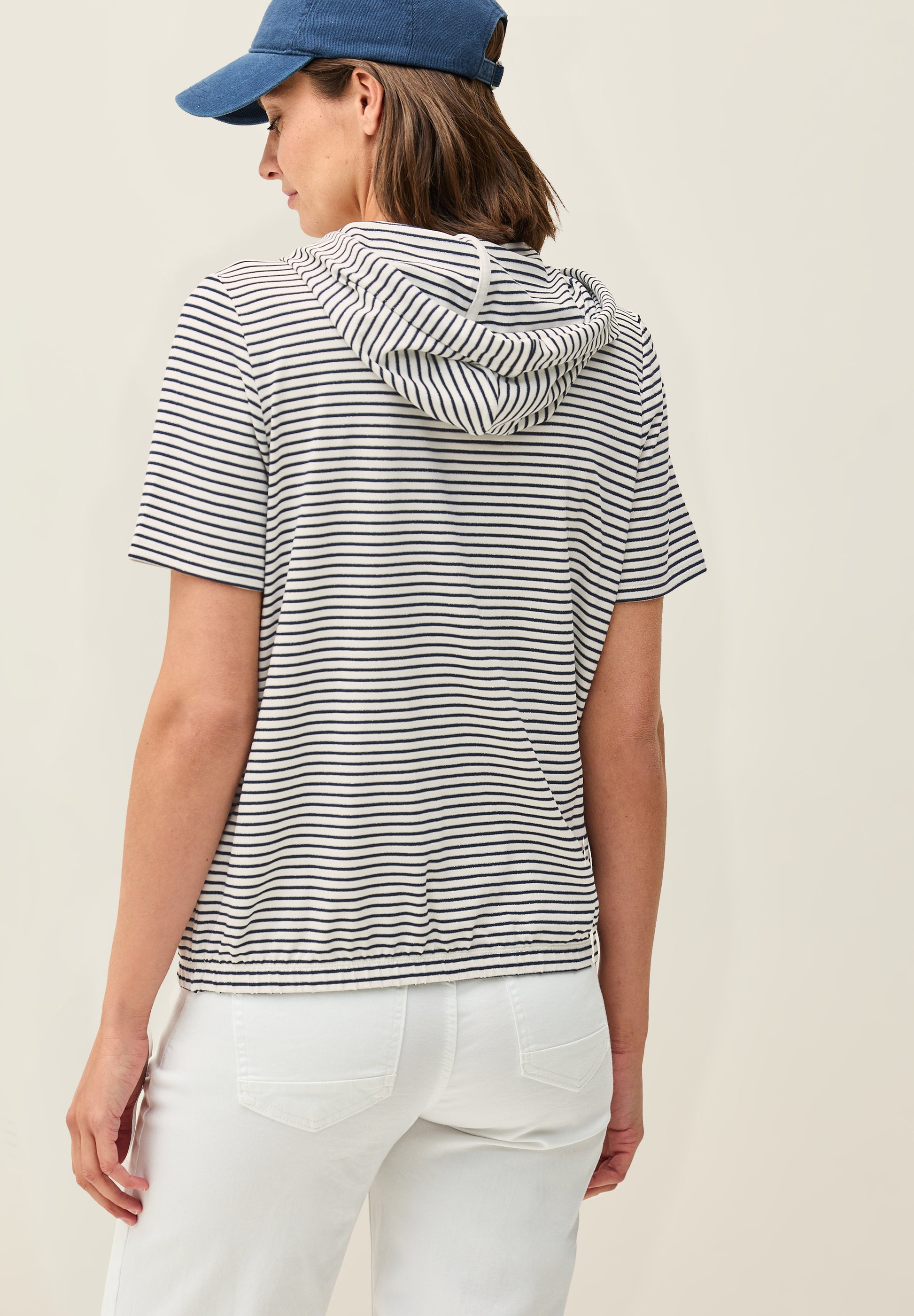 Das Kapuzenshirt von CECIL für Damen kombiniert sportliche Streifen mit einem femininen Wording-Print und Glitzerdetails. Mit kurzen Ärmeln, elastischem Saum und Kapuze mit Tunnelzug ist es ein stylischer Alltagsbegleiter. Ideal für entspannte Casual-Looks. Kapuzenshirt Kurzarm Elastischer Saum Wording Detail Kapuze mit Tunnelzug Material: 85% Viskose, 5% Elasthan, 5% Polyester, 5% Metalfaser
