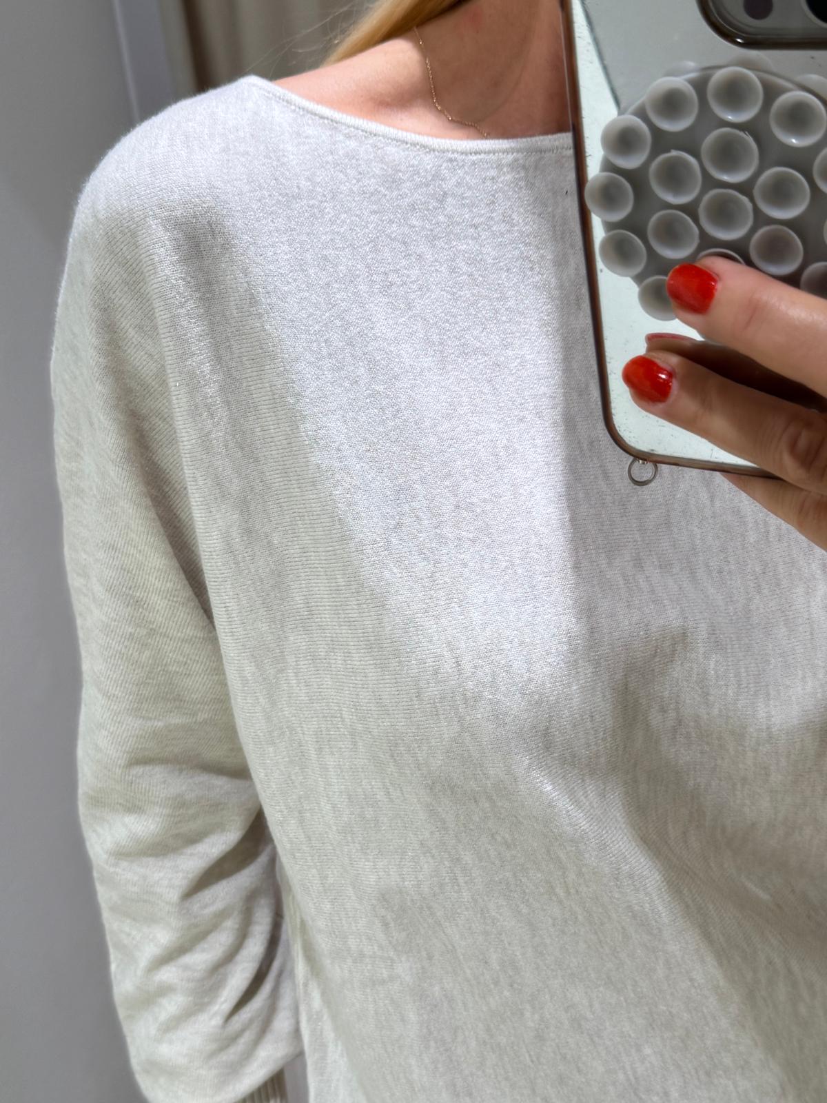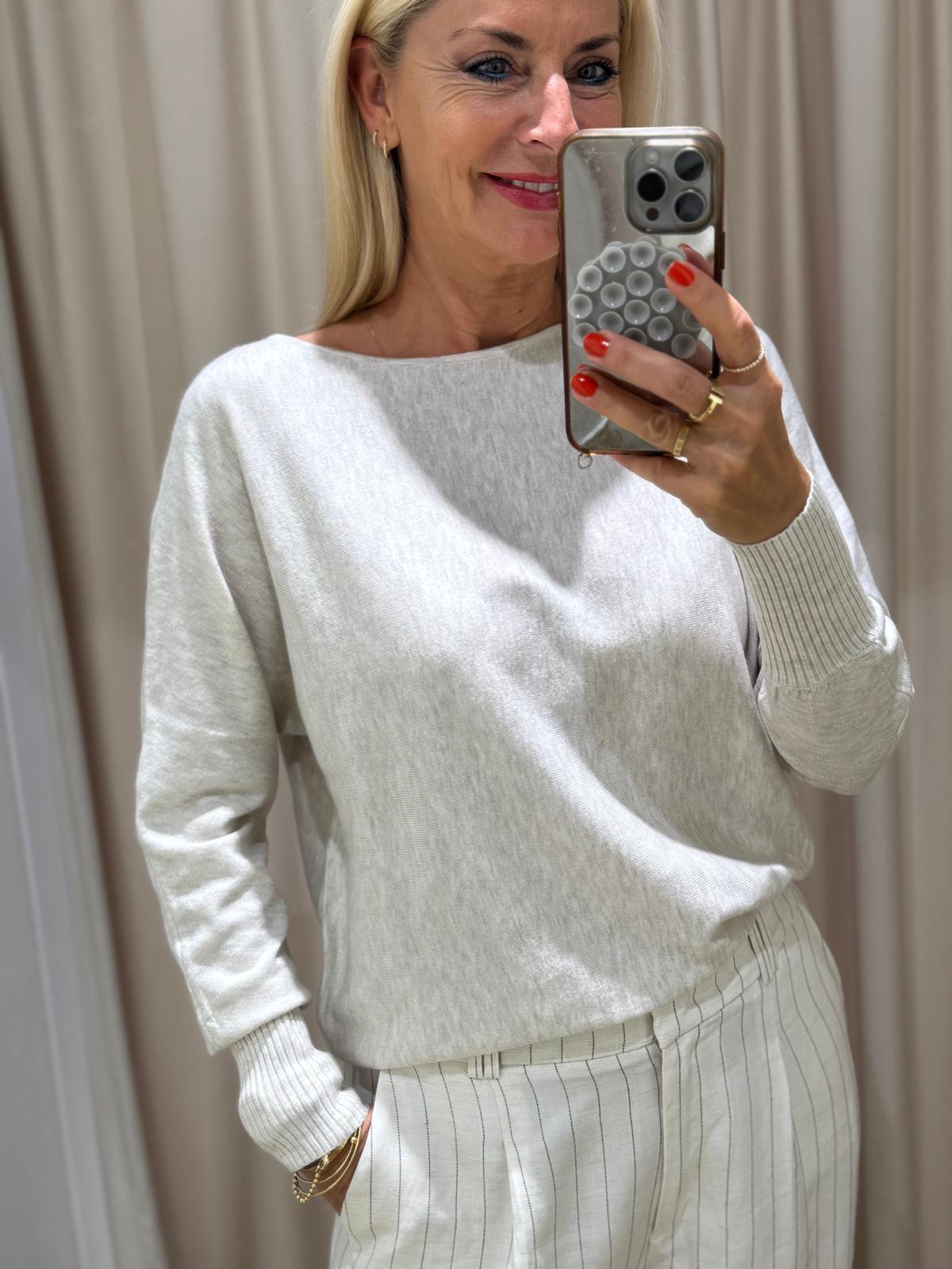 Ein echter Allrounder: Unser leichter Feinstrick-Pullover in zartem Melange-Ton überzeugt mit seiner lockeren Passform und den breiten Rippbündchen an den Ärmeln. Super angenehm zu tragen, vielseitig kombinierbar und perfekt für einen entspannten, stilvollen Look.