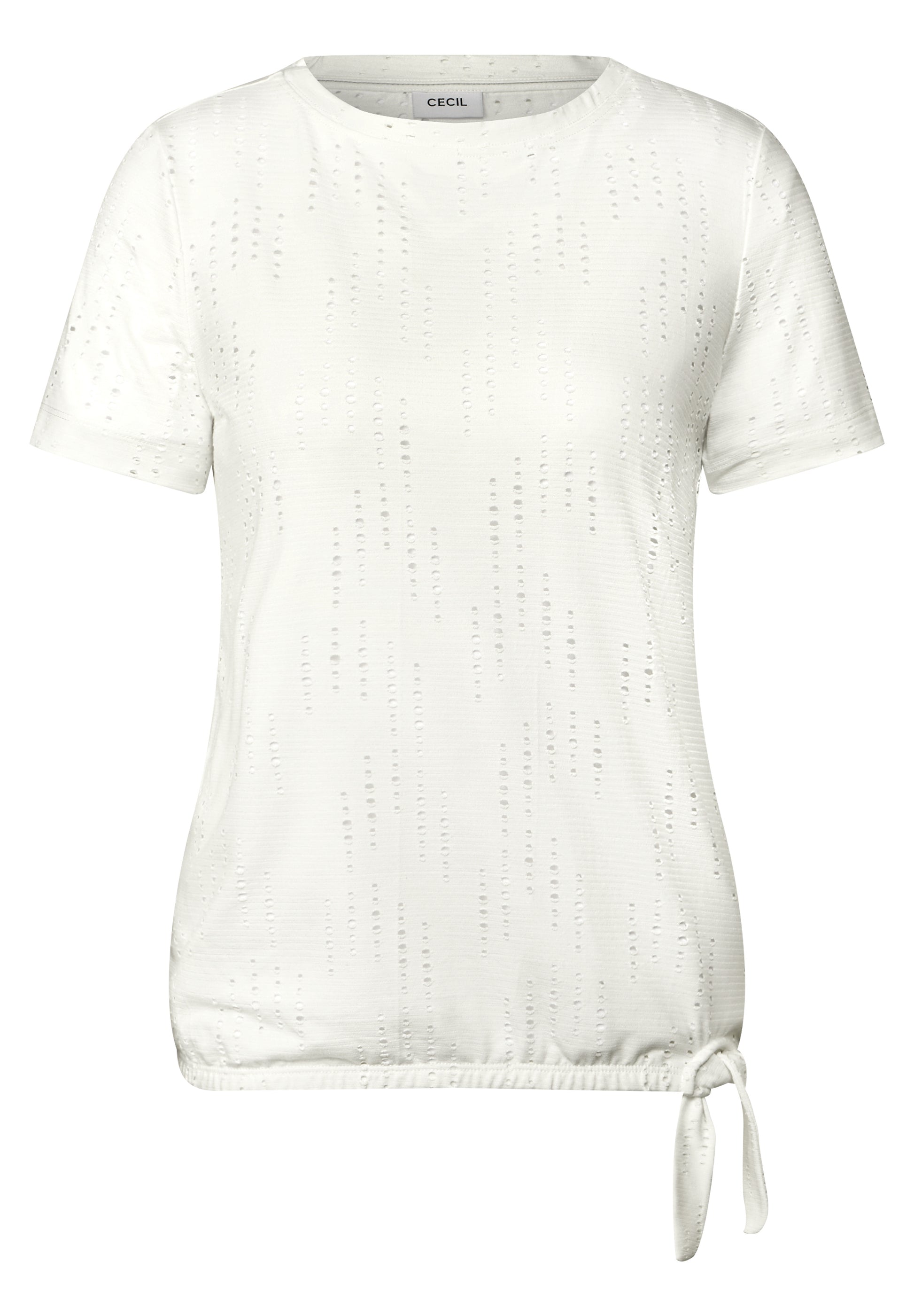 Dieses T-Shirt von CECIL für Damen begeistert mit seinem Lochmuster und einem dekorativen Knotendetail am Saum. Der U-Boot-Ausschnitt und der angenehme Tragekomfort machen das Shirt zum modischen und gemütlichen Alltagsbegleiter. T-Shirt U-Boot-Ausschnitt Kurzarm Knotendetail am Saum Angenehmer Tragekomfort Material: 62% Polyester, 33% Viskose, 5% Elasthan