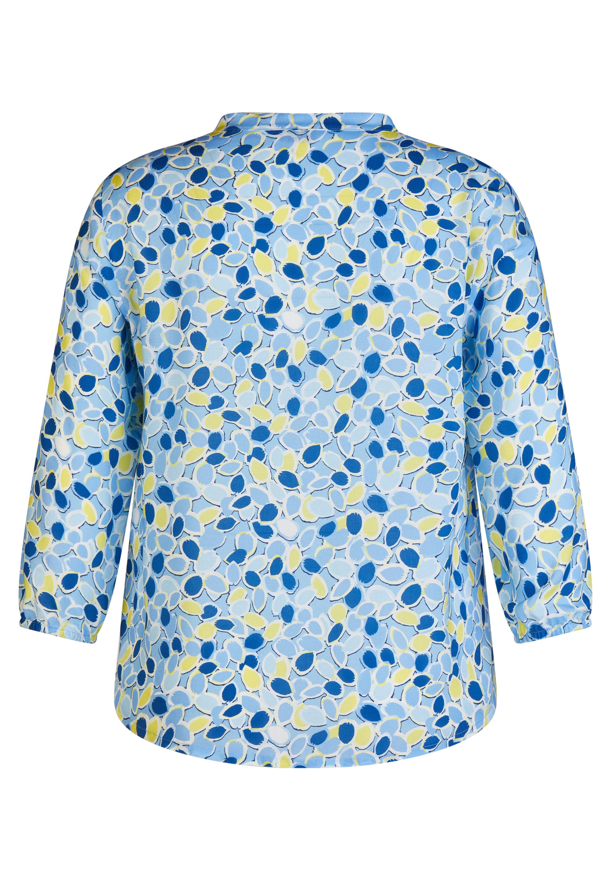 Die luftige Qualität sorgt für ein angenehmes Tragegefühl, während der kleine Stehkragen mit Knopfleiste einen modernen Akzent setzt.Verspieltes Allover-Design.Luftiges, angenehmes Material.3/4-Ärmel mit elastischem Bund.Stehkragen mit kurzer Knopfleiste.Ideal für Freizeit, Büro oder Urlaub.