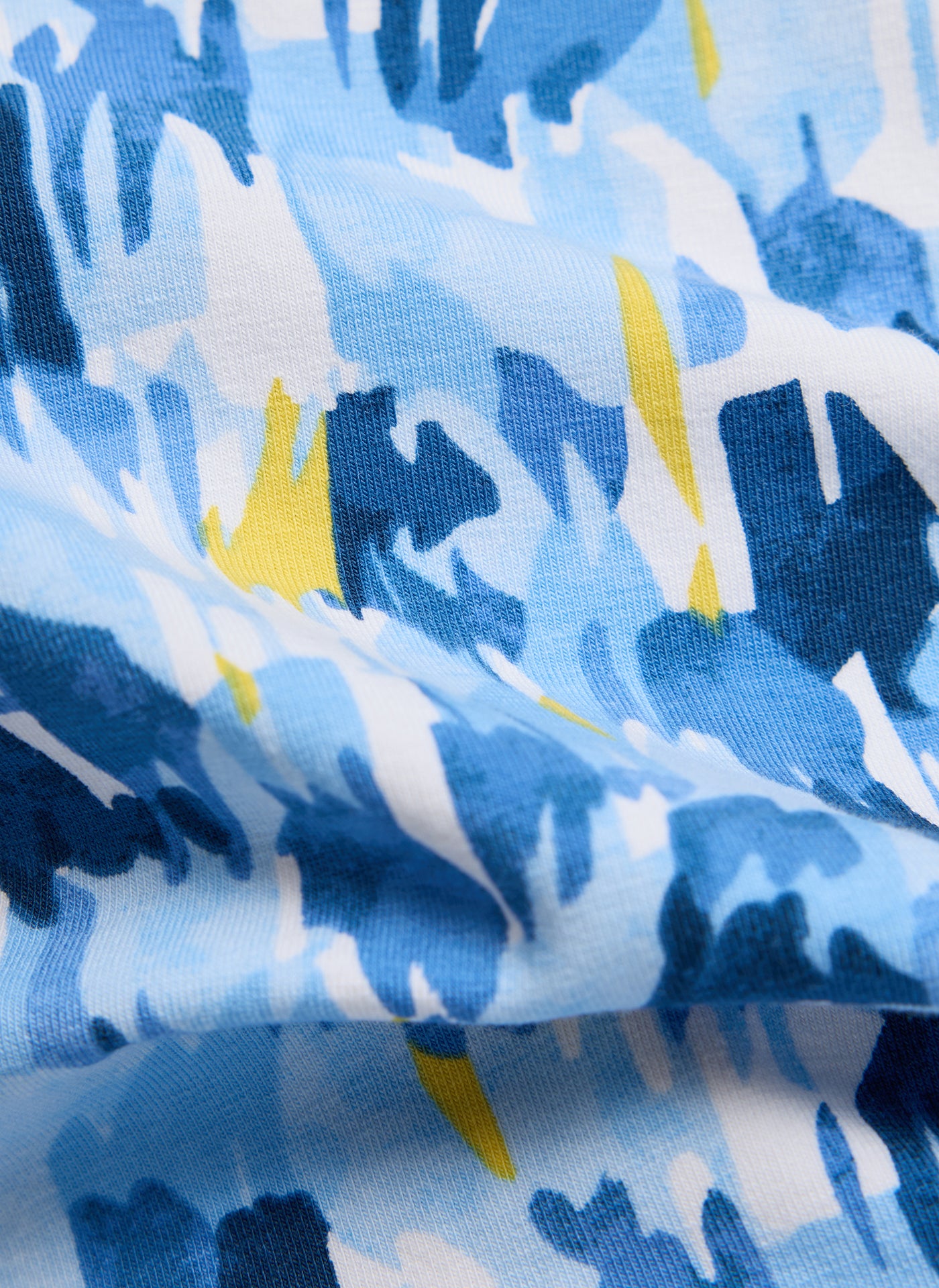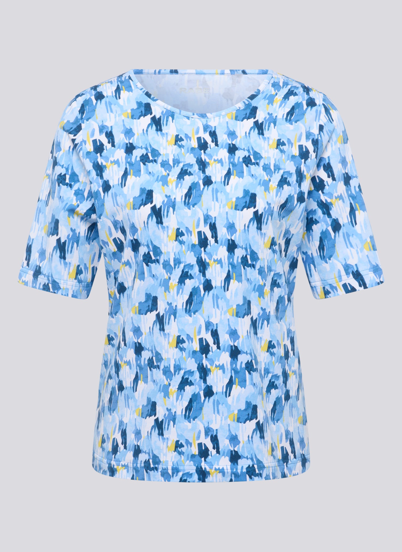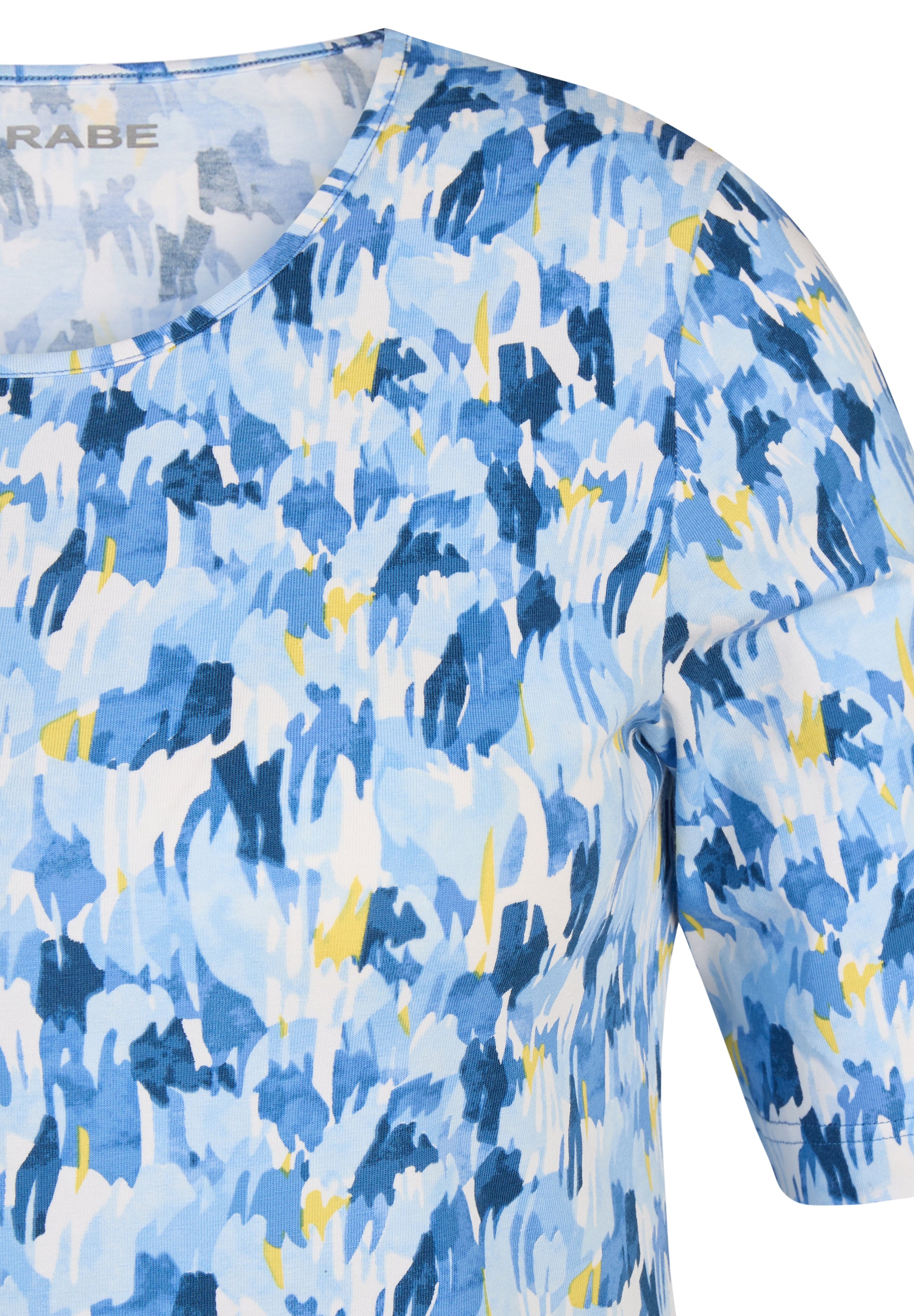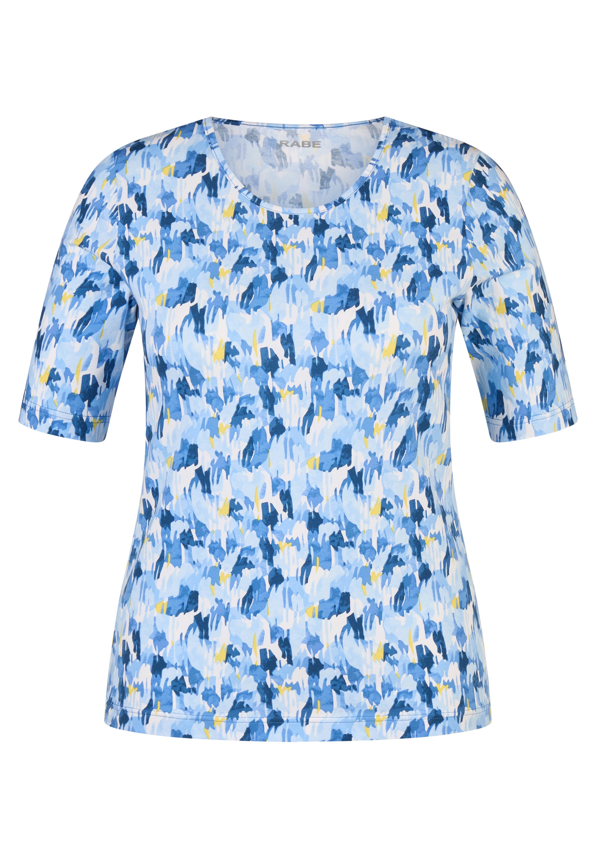 Dieses Shirt überzeugt mit einem lebendigen Allover-Print in abstrakter Pinselstrich-Optik. Die harmonisch abgestimmten Farben und der bequeme Schnitt machen es zu einem vielseitigen Begleiter für jeden Tag.Abstraktes Allover-Muster mit malerischem Charakter.Rundhalsausschnitt für klassischen Komfort.Halblange Ärmel _ ideal für Alltag und Übergangszeit.Weiche Jersey-Qualität mit angenehmer Elastizität.Leicht taillierter Schnitt für eine feminine Passform.