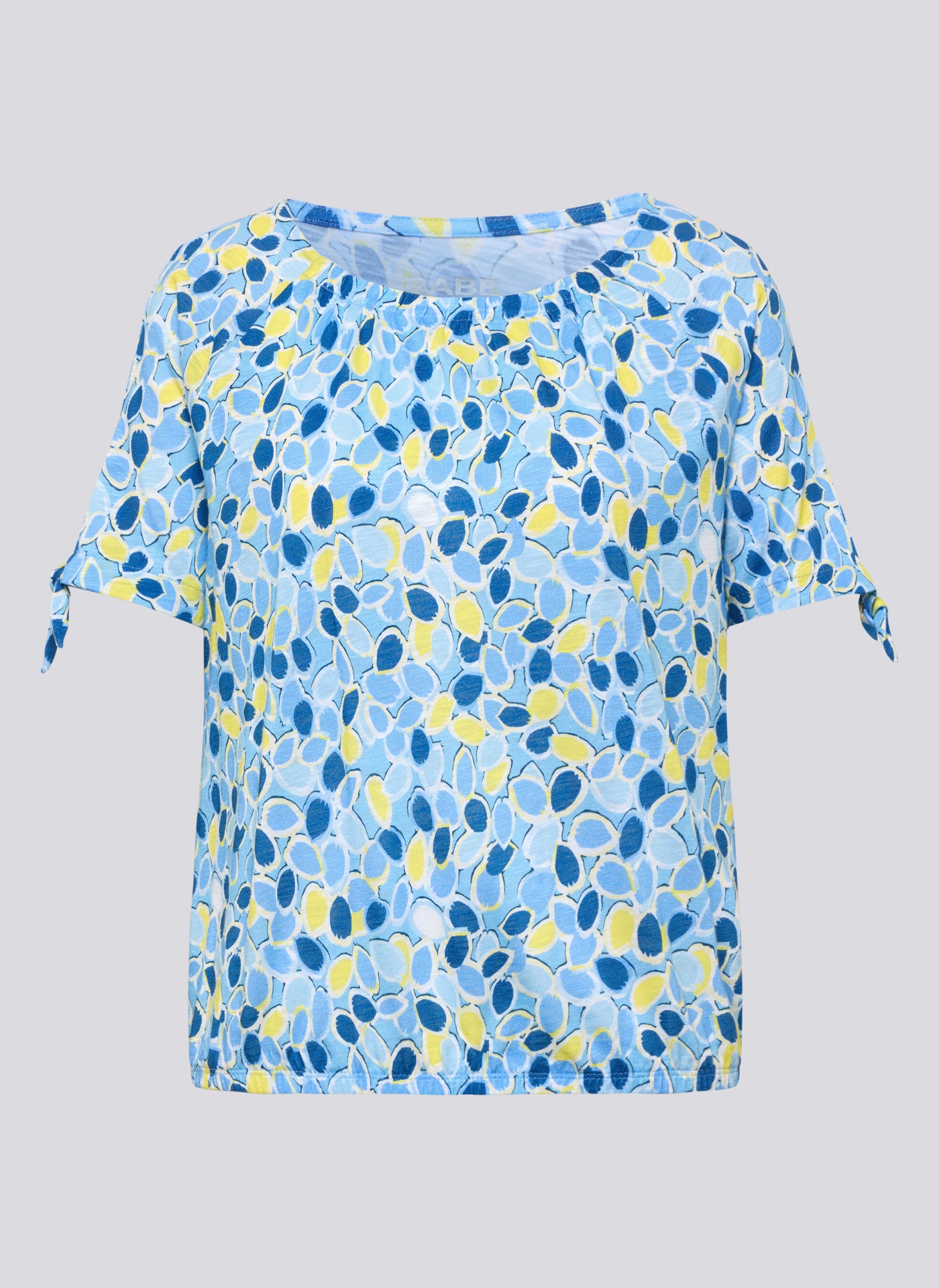 Dieses Shirt überzeugt mit einem frischen, abstrakten Print und liebevoll gestalteten Details. Der locker fallende Schnitt und die Bindebänder an den Ärmeln machen es zu einem charmanten Begleiter für warme Tage.Allover-Print in lebendiger Farbkomposition.Rundhalsausschnitt mit feiner Raffung für eine feminine Note.Kurze Ärmel mit dekorativen Bindebändern.Weiche, luftige Jersey-Qualität.Angenehm zu tragen und vielseitig kombinierbar.