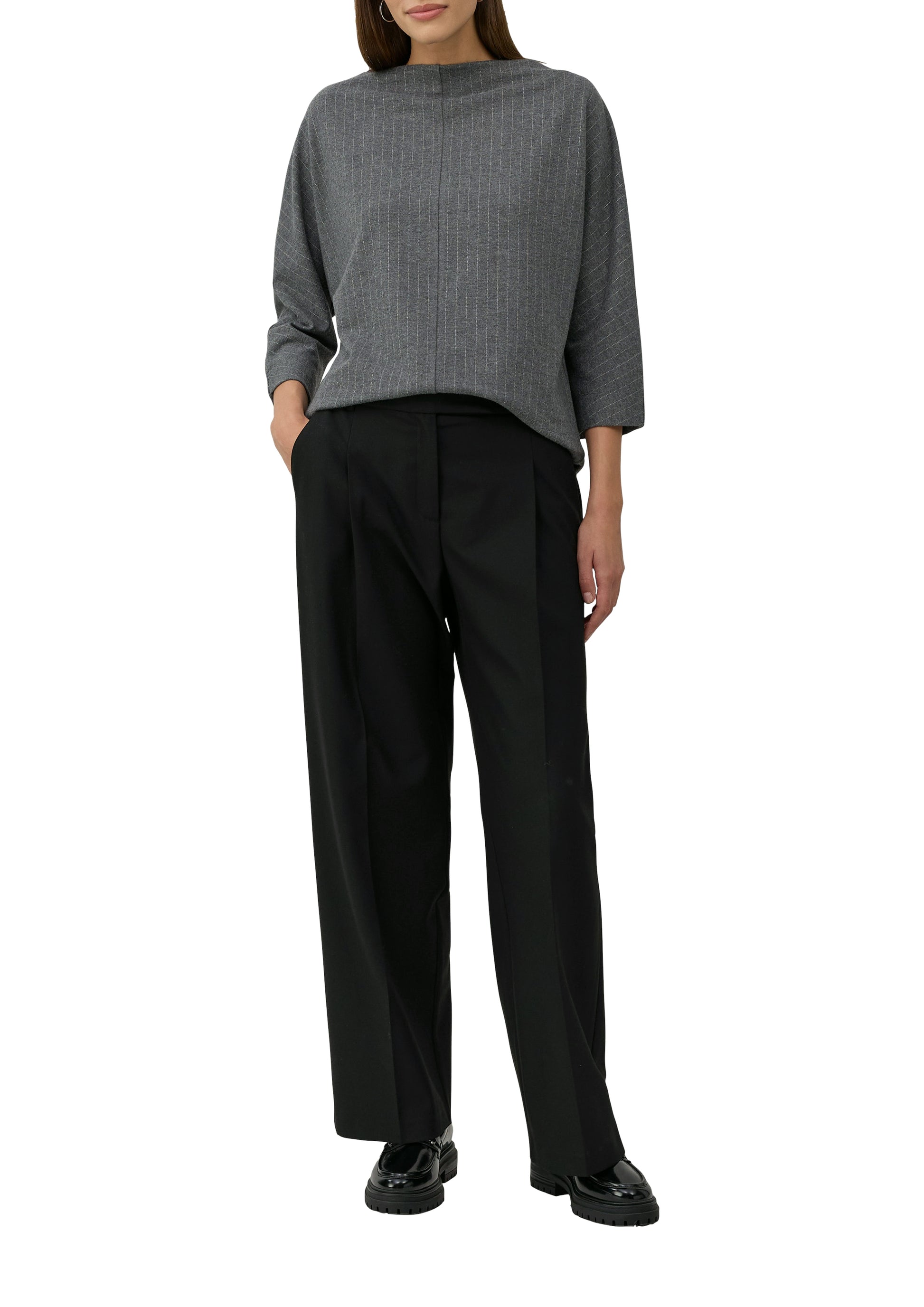 Eleganz trifft Komfort: Dieses Relaxed-Fit-Shirt mit Nadelstreifen und Fledermausärmeln ist dein stilvoller Begleiter für jeden Anlass. Der hochwertige Viskosemix-Jersey schmiegt sich angenehm an deine Haut, während der moderne Schnitt deine Silhouette gekonnt in Szene setzt. Ob im Büro oder beim Dinner – du strahlst selbstbewusste Lässigkeit aus.
